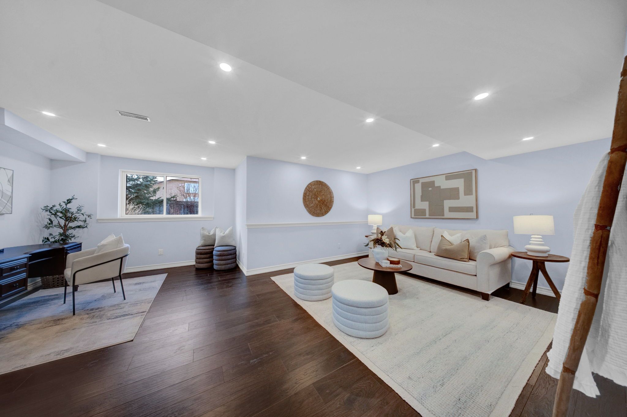 • Renovated basement offers versatile living space with potential kitchenette.