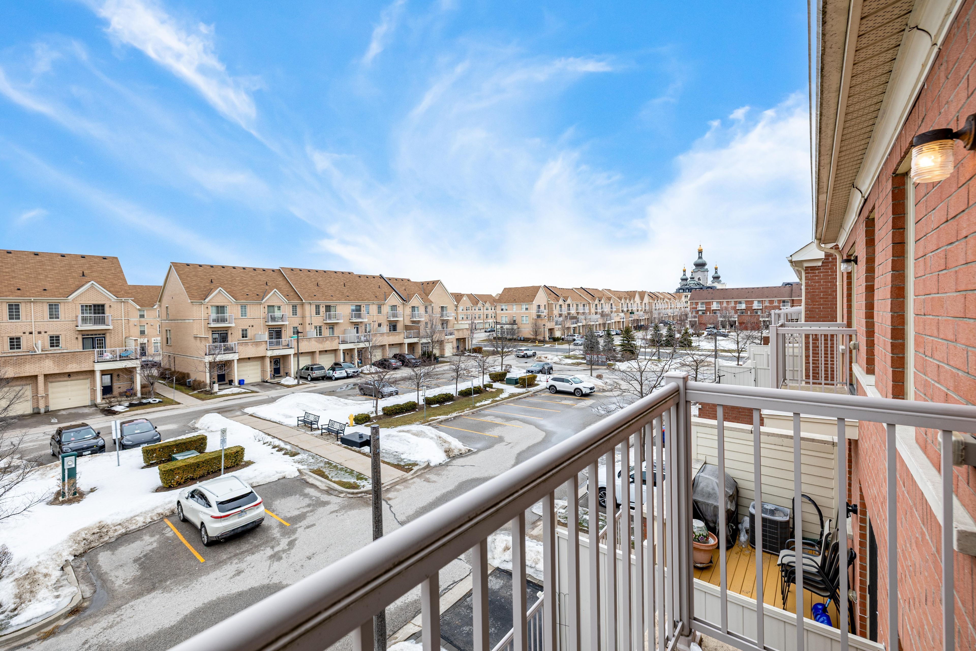 Welcome to this spacious and well-maintained townhouse in the highly desirable cathedraltown community in markham. Featuring 4 generous bedrooms, including a main-floor bedroom with a full bathroom, this layout is ideal for guests, extended family, or a private home office. Enjoy 9-foot ceilings on both the main and second floors, along with approximately 1,952 sq. Ft. Of above-grade living space, with an unfinished basement offering excellent potential for future recreation or additional living space. The home has been freshly painted, with new pot lights on the main floor adding warmth and comfort. The home has been well maintained and features several thoughtful upgrades by the owner. Outdoor spaces include a large second-floor balcony and an additional third-floor balcony, perfect for relaxing or entertaining. The front yard features upgraded interlock. Visitor parking is conveniently located within the community. Conveniently located close to parks, shoppings, community amenities, major highways, and well-regarded schools. A spacious and functional home in one of markham's charming and growing communities.