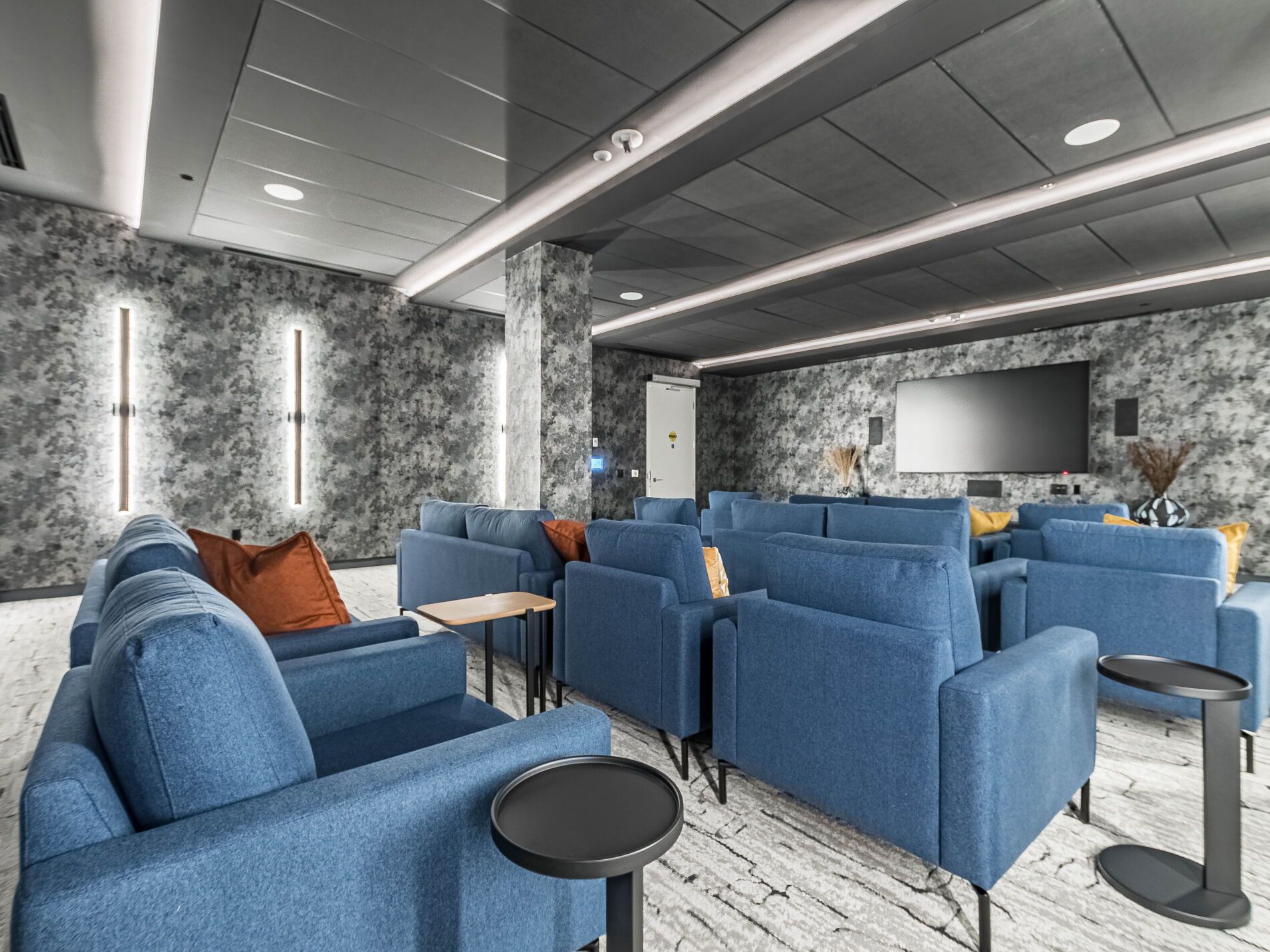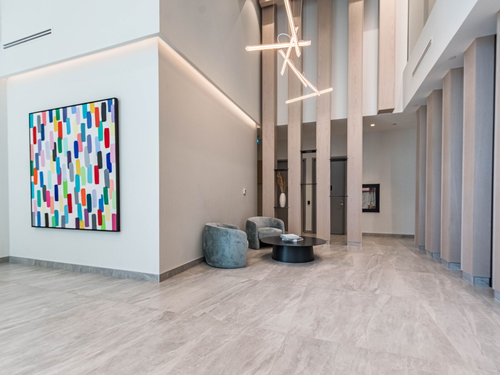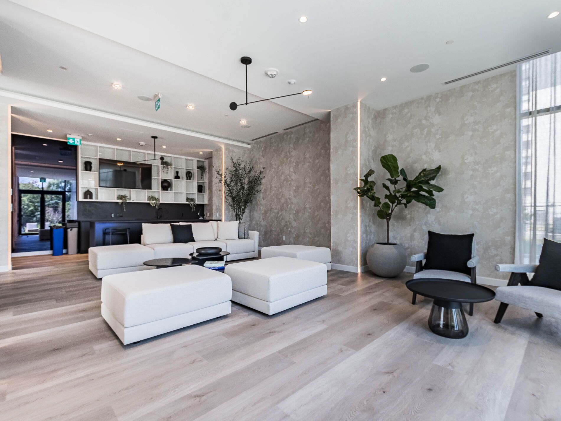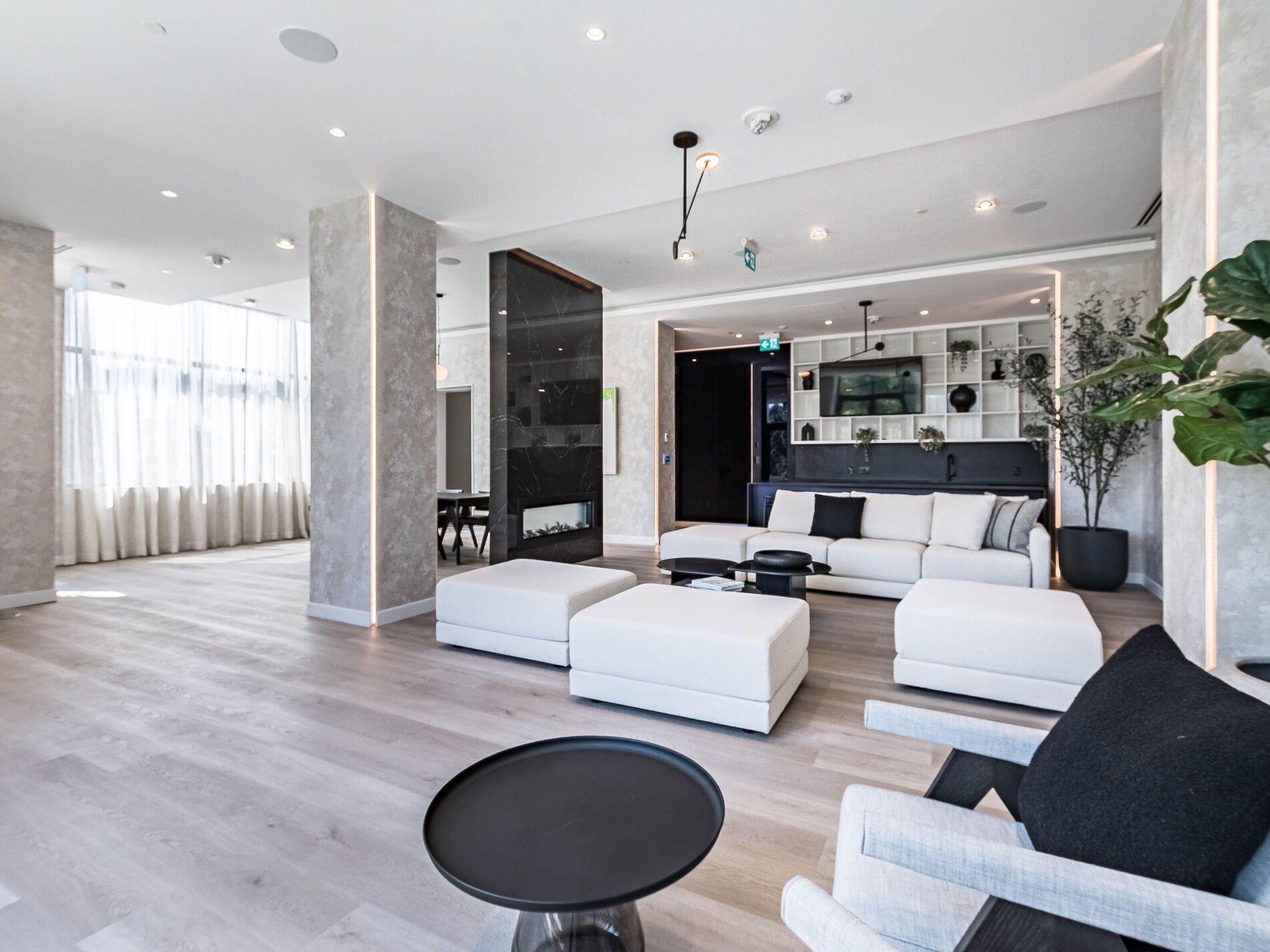 • Premium amenities including gym, social lounge, and rooftop terrace.