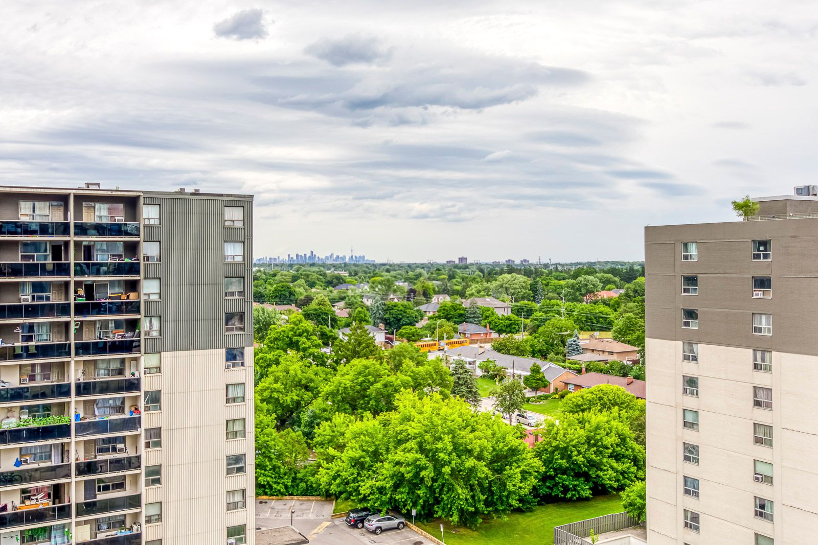 • Balcony views of greenspace and the Toronto Skyline.
