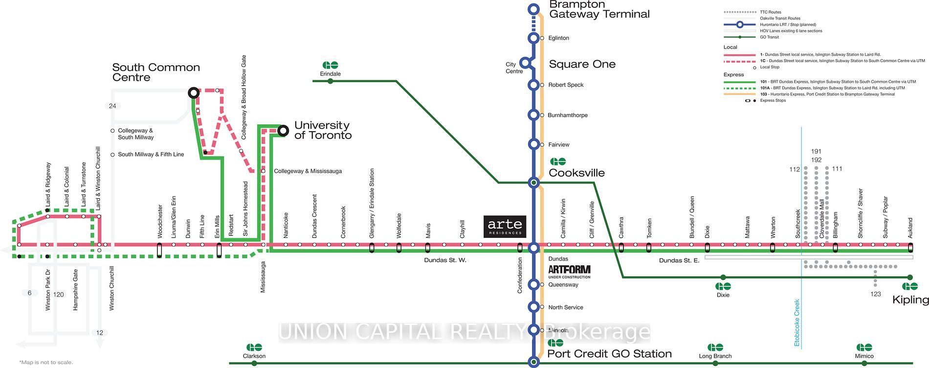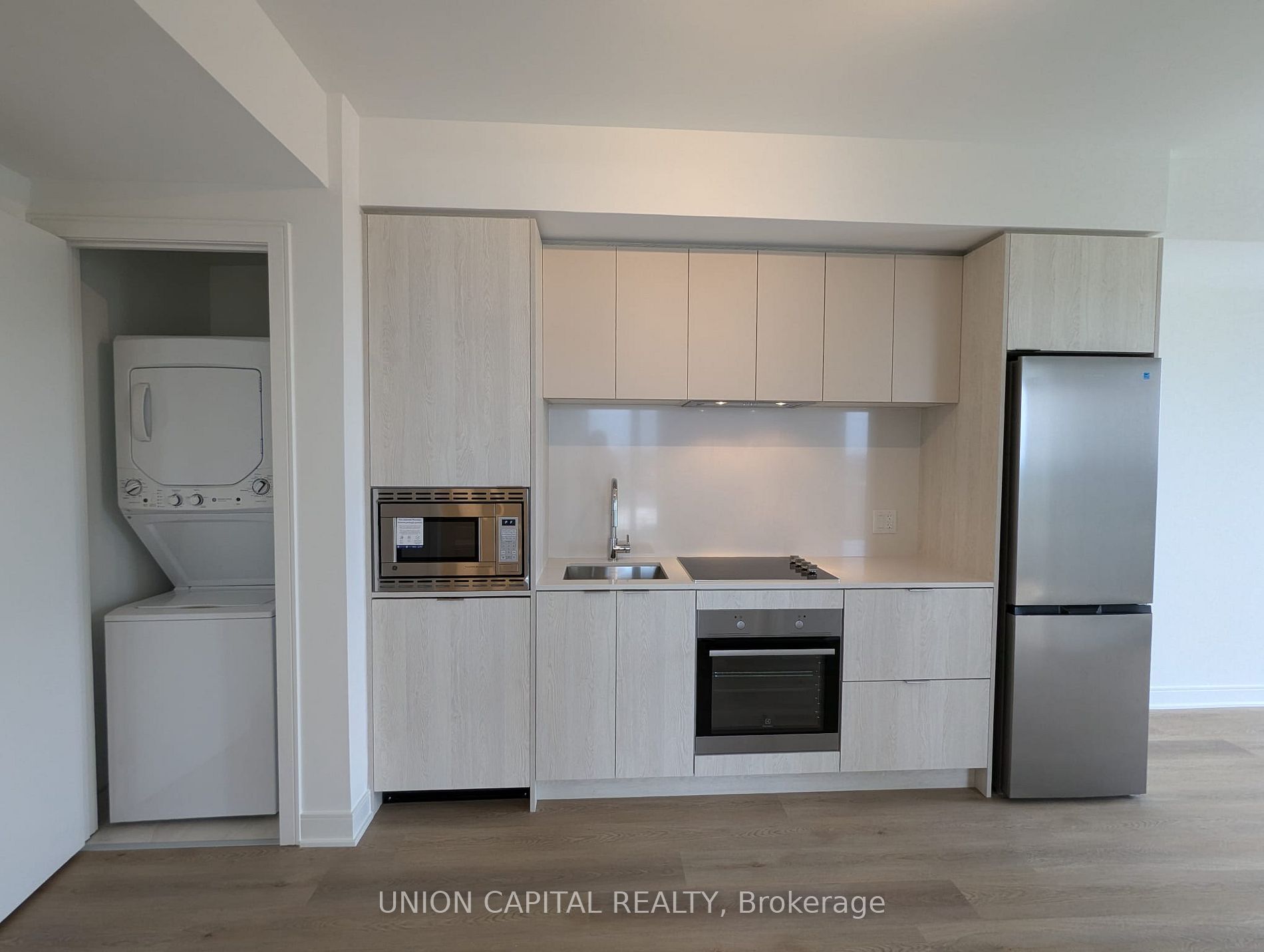 Bright and well-appointed 1 bedroom + den, 1 bath corner suite offering a functional open concept layout with walk-out to a spacious balcony. Modern kitchen with stainless steel appliances, versatile den ideal for a home office, and convenient in-suite laundry. Floor-to-ceiling windows and southeast exposure provide abundant natural light throughout. Building amenities include 24/7 concierge, gym, party room, and outdoor terrace with bbqs. Ideally located close to schools, parks, transit, and hospitals. Walking distance to fresco, food basics, shoppers drug mart, dollarama, restaurants, gas station, and more. Minutes to square one, qew, and hwy 403. Steps to the new cooksville lrt station in the heart of mississauga.