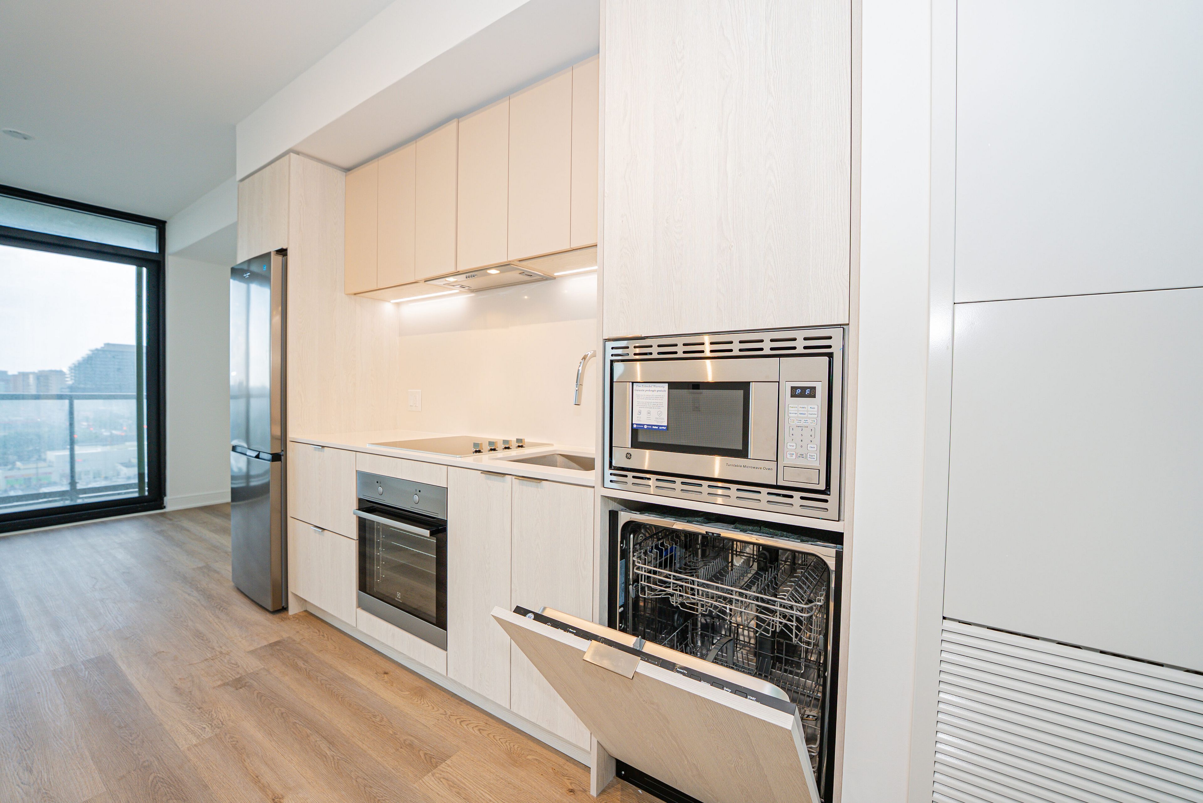 Corner 2-bedroom + den unit with river views at artform condos! Modern 682 sq. Ft. Suite + 133 sq. Ft. Balcony. Features 2 spacious bedrooms, 2 baths (incl. Ensuite), open-concept layout, 9-ft ceilings, floor-to-ceiling windows, built-in appliances, quartz counters, new light fixtures & window coverings. Includes 1 parking & locker. Enjoy unobstructed views, steps to future lrt/brt, mins to square one, sheridan, utm & major highways. Amenities: concierge, gym, party room, terrace, bbqs & more!