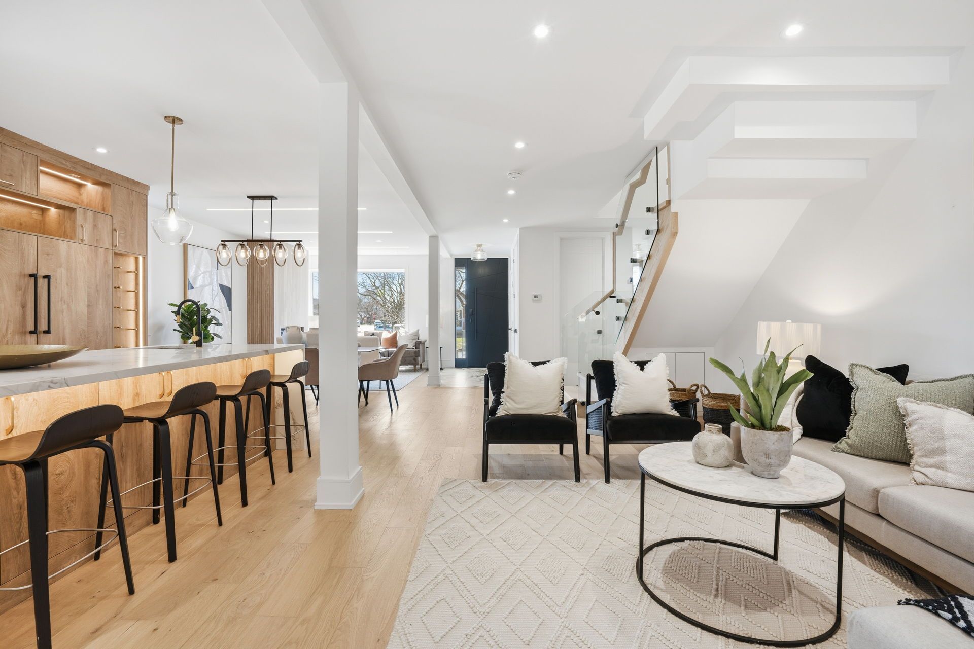 This newly completed top-up blends stunning contemporary design with modern family functionality. Upon entry, the sun-drenched great room makes a striking first impression with high ceilings & oversized windows. Framed by a gorgeous fluted fireplace, you're soon drawn into the heart of the home - the kitchen. Draped in stunning gold accents mixed w/ warm woods, the space is anchored by a magnificent oversized quartz island. Other features include premium appliances, a panelled double fridge/ freezer, wine display, dual sinks, and abundant storage. The kitchen area opens to both the living/dining room and the family room. Whether you're planning to host christmas dinner by the fireplace, entertain 25 energetic 6-year-olds for a birthday party, or cook dinner and watch a movie, this space is the dream. The large main floor office has seamless access to the garage, side yard, and backyard deck. Drenched in sunshine, it provides an ideal wfh space or study area. Upstairs, the primary suite offers a true sense of retreat, privately set behind elegant, tall doors. Highlights include a generously sized bedroom, a walk-in closet w/ thoughtful custom organizers, and a 5 pc en-suite. The icing on the cake? A walkout to a private deck overlooking the garden for those times when you just need a few moments away from the happy chaos of the main floor! The 2nd, 3rd & 4th bedrooms all have en-suite bathroom access and are generously sized. An upstairs laundry area offers the ultimate in convenience. The basement of the home offers a legal 2-bedroom apartment (including a separate entrance), complete with a laundry room, new kitchen appliances, and a beautifully appointed bathroom. At over 1,000 sq ft, this is the perfect opportunity for rental income or the ideal home for grandparents downsizing and looking to stay close to family. This is the perfect family home located in a wonderful and welcoming community.