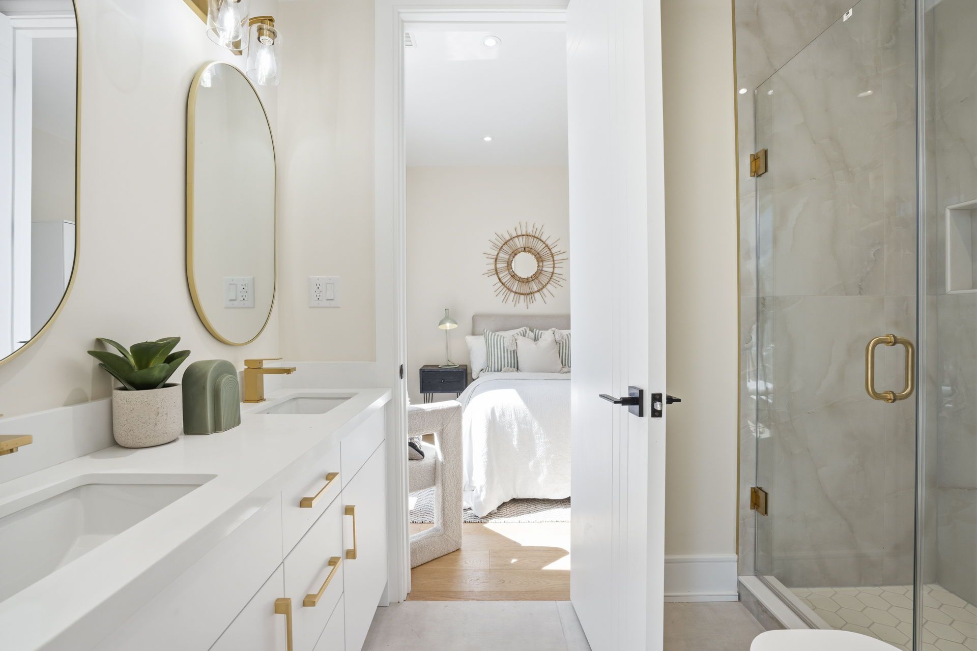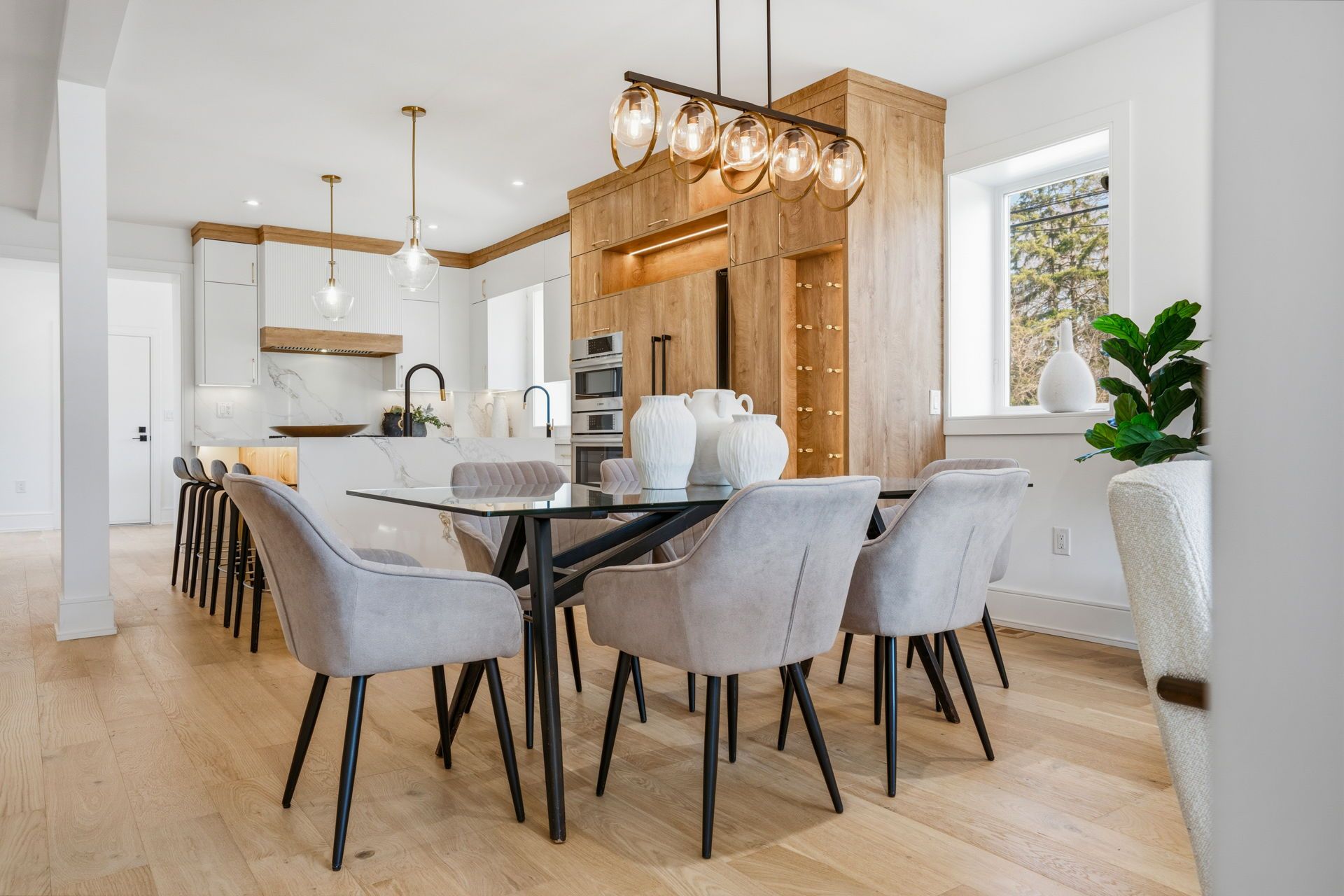 • Modern kitchen featuring quartz island, premium appliances, and abundant storage.