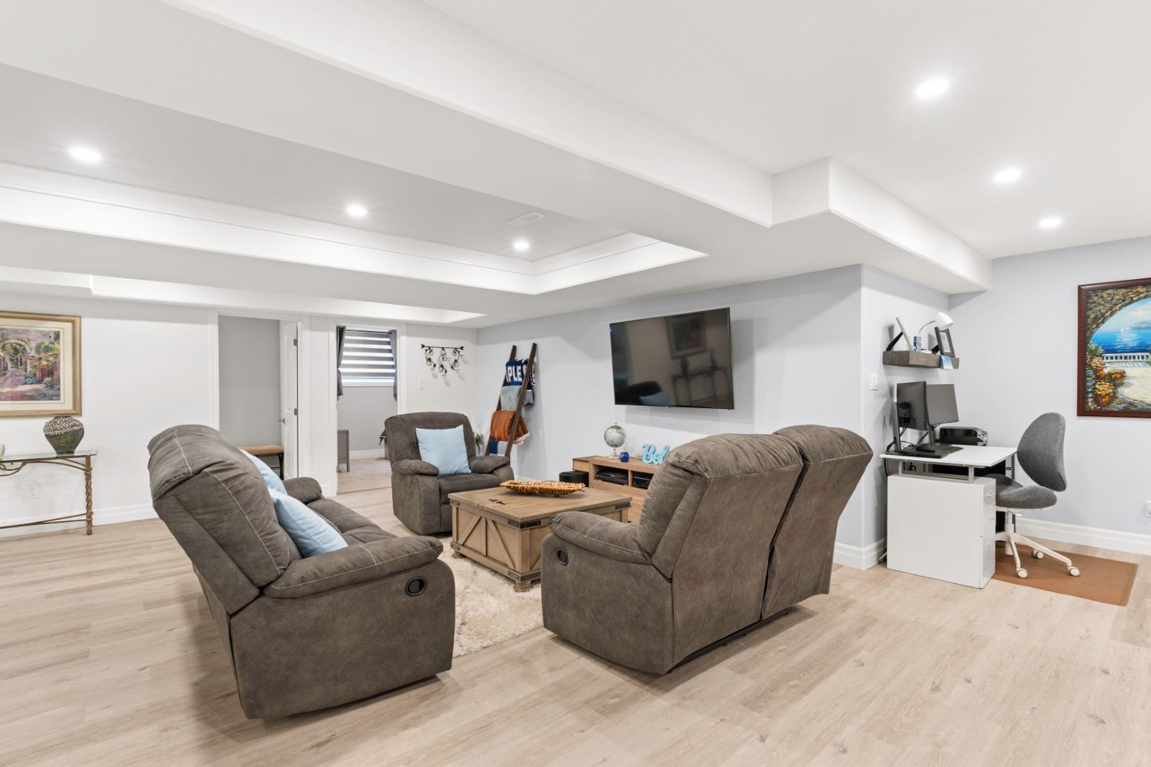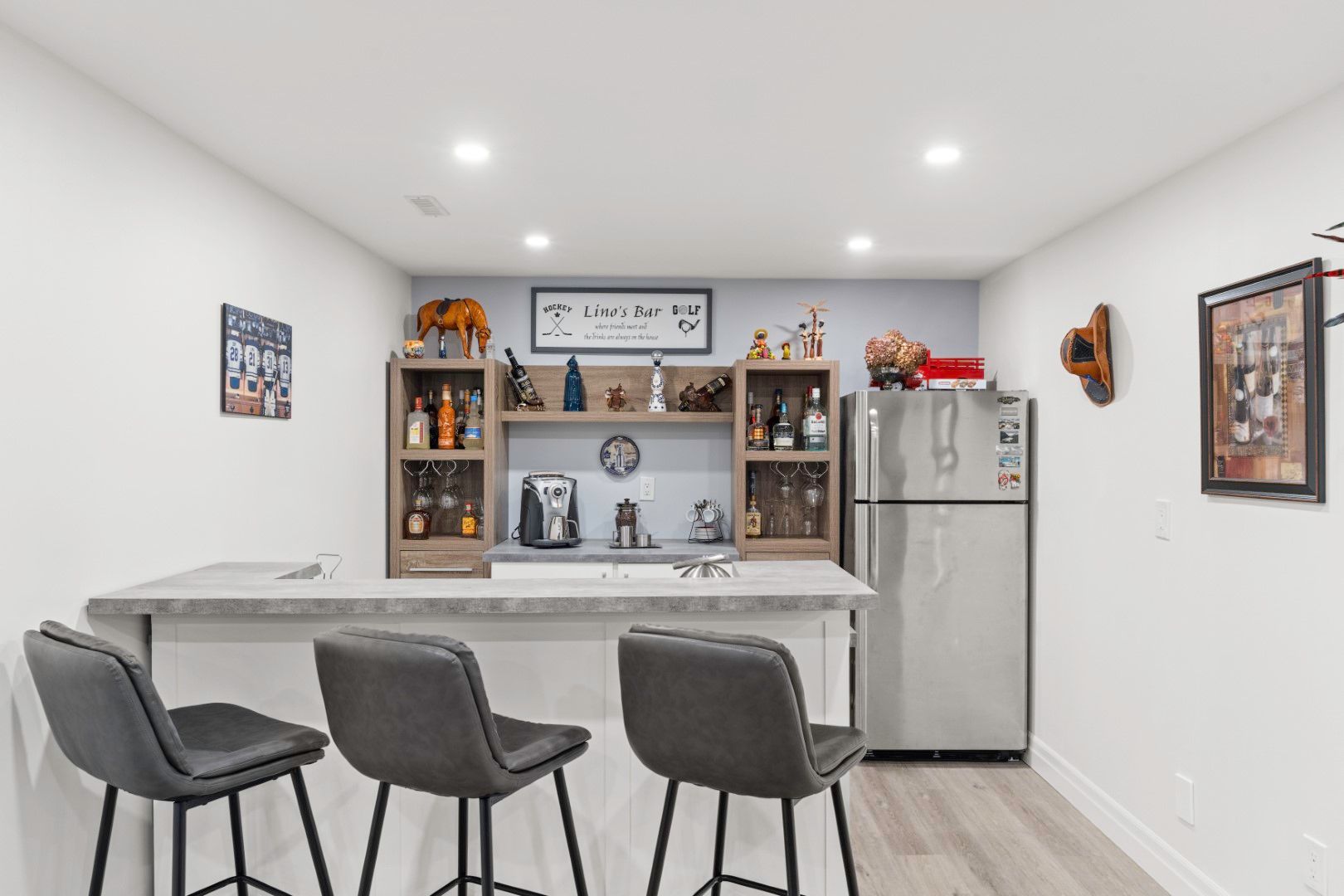 • Finished basement perfect for entertaining with a large rec room and bar.