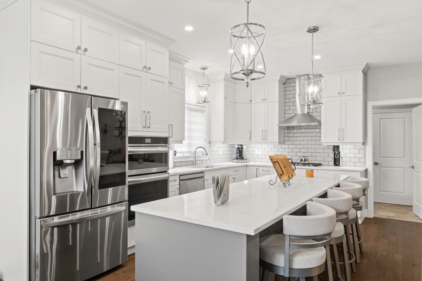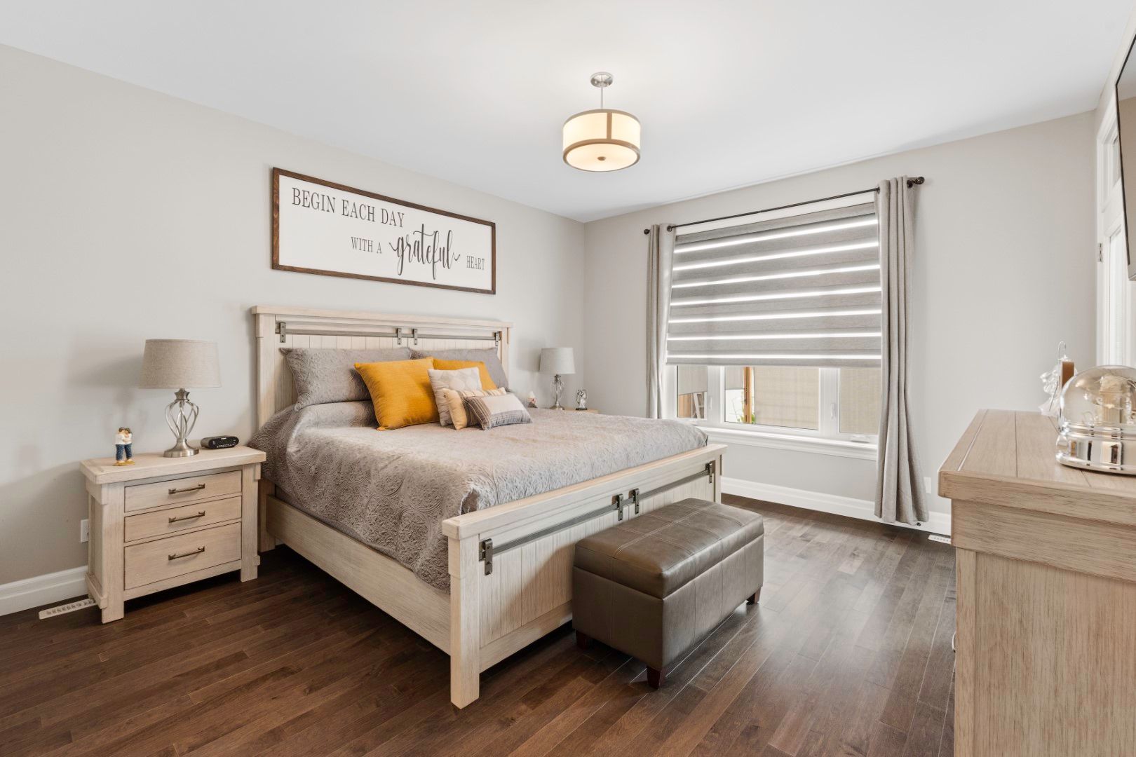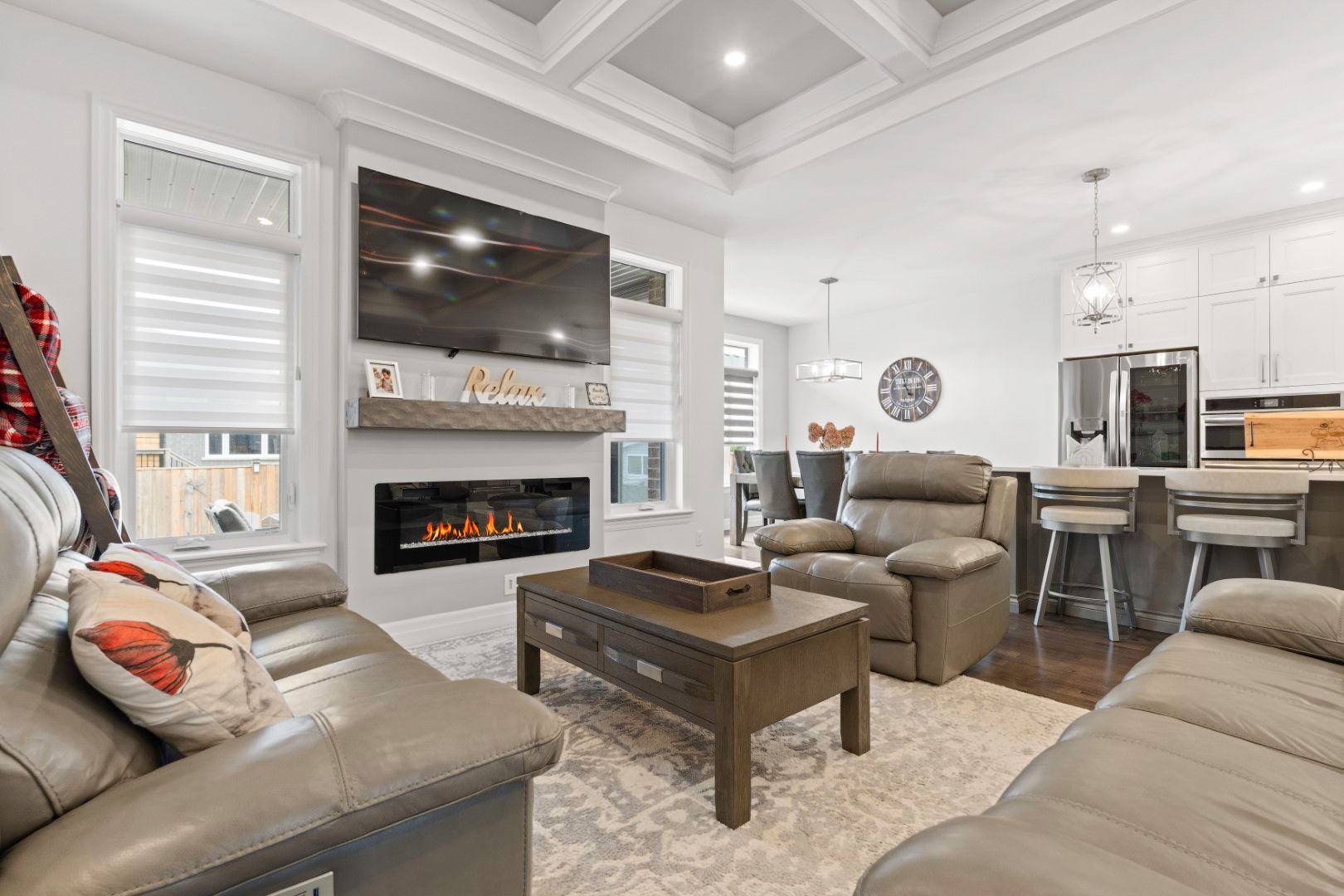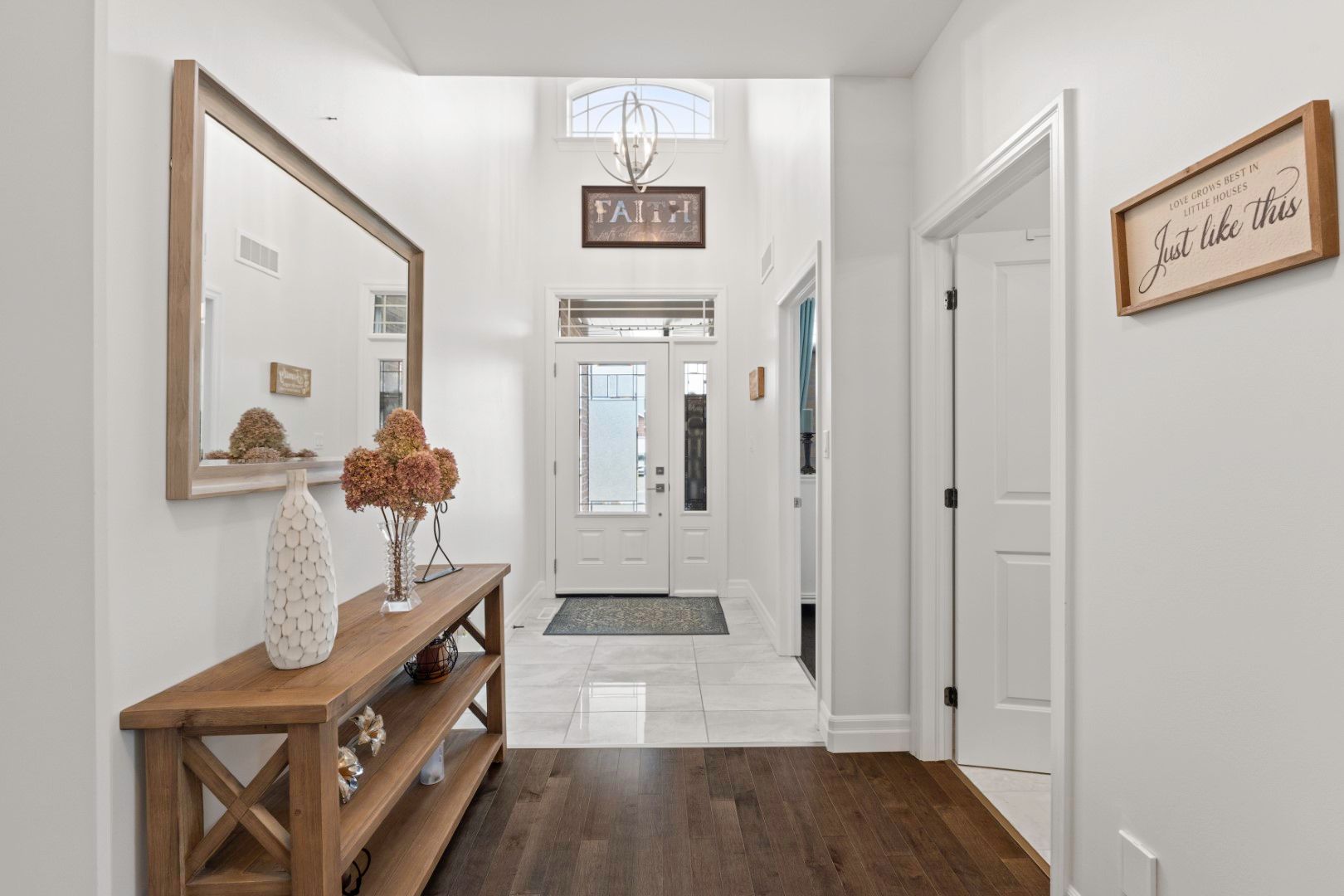 Immaculate staikos built three-year-old brick bungalow in caniff mills, belleville. This four-bedroom, three-bathroom home features a high-quality kitchen with built in wall ovens, cooktop, pantry and built in wine cooler, cambria quartz counters, mirage hardwood flooring, custom powered blinds, phantom screen doors - front and back - for that perfect cross breeze, detailed coffered ceiling in the great room and built in electric fireplace with mantel. The primary bedroom includes a walk-in closet and a 4-piece ensuite with tiled glass shower, double sink vanity with cambria quartz counters. Full finished basement with large rec room, bar for entertaining, full bathroom with heated floors, 2 bedrooms, office area and lots of storage space. Relax in the maintenance-free interlock backyard, complete with hot tub with privacy screens, gas bbq hookup, a composite deck, pergola, bistro area perfect for morning coffee and shed/workshop with hydro. Attached double car garage and triple wide driveway with interlock makes for lots of parking space. Conveniently located near all amenities, this home also provides easy access to the 401, subdivision playground park and the riverside trail. Harmony school district. School bus pickup available.