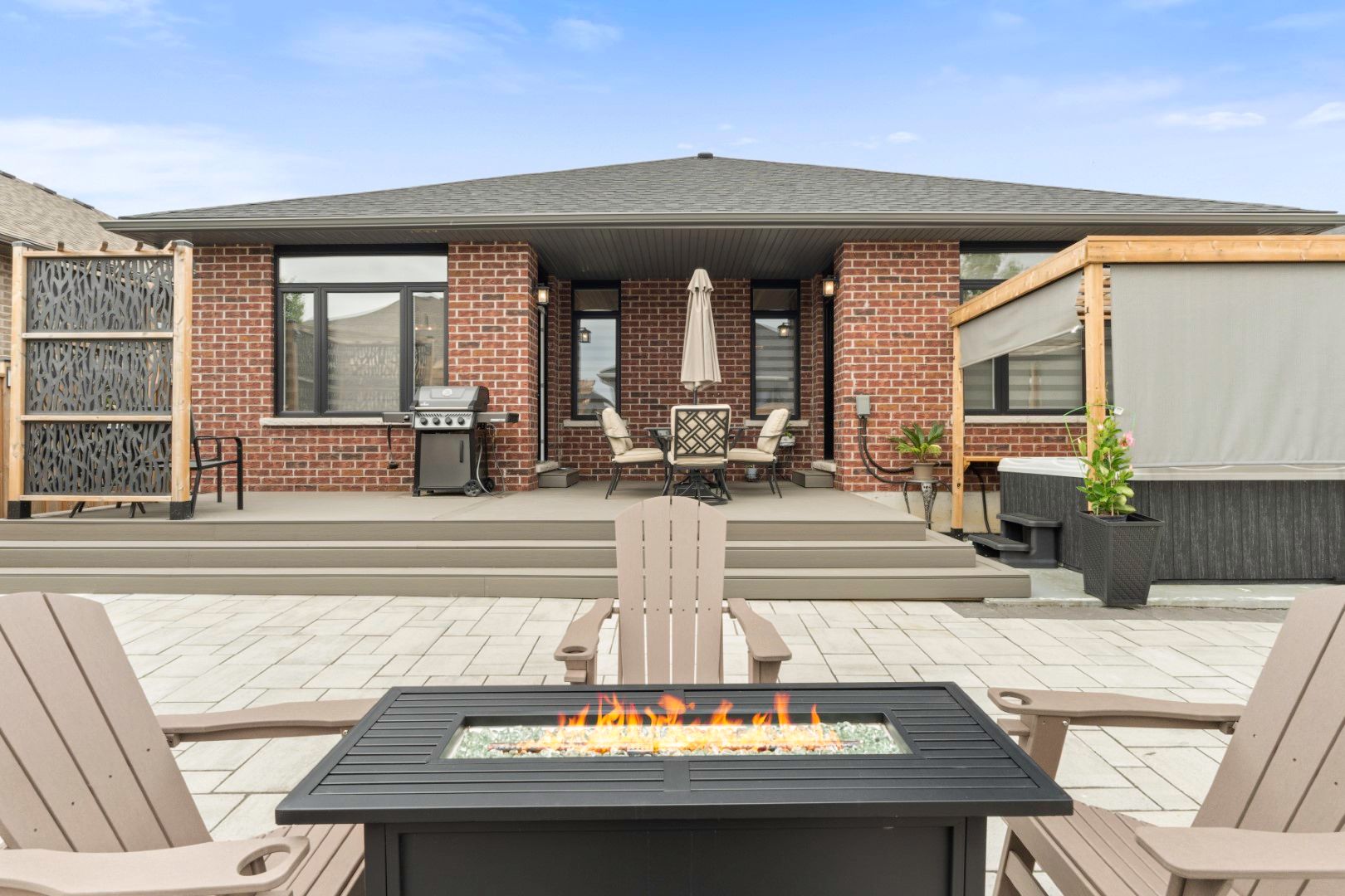 • Backyard oasis with hot tub, composite deck, and professional landscaping.