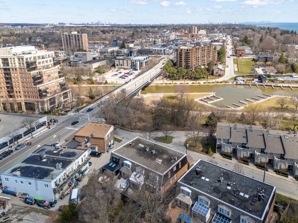 Prime south oakville lakeside living. Nestled in an exclusive enclave of townhomes known as the moorings, this elegant executive freehold end-unit offers refined multi-level living just steps from lake ontario. Boasting approximately 1,920 sq. Ft. Above grade, this beautifully appointed home features two spacious bedrooms, each with its own private ensuite complete with heated floors. The primary retreat impresses with a generous walk-through closet and a luxurious 5-piece ensuite, while the second bedroom offers a walk-in closet and 4-piece ensuite. Laundry located on the second level. The stunning living room showcases soaring 12'7" ceilings, a cozy gas fireplace, and picturesque views of sixteen mile creek and the marina. Designed for both comfort and entertaining, the open-concept kitchen and family room feature a custom designer kitchen with granite countertops, stainless steel appliances, and a walk-out to a private deck. Step outside to your own serene retreat-this private deck backs onto lush greenery, creating a peaceful oasis alive with a variety of birds and local wildlife, offering a truly tranquil setting to relax, unwind, and enjoy nature. Additional highlights include hardwood flooring and crown moulding throughout the main level, a finished basement with a second gas fireplace, charming upper foyer storage, and a rare two-car garage with inside entry. Newer roof and windows. Enjoy an unparalleled lifestyle just moments from tannery park, the vibrant downtown core, boutique shopping, fine dining, the oakville public library, and the oakville centre for the performing arts. Convenient access to the go station and major highways ensures effortless commuting. Seasonal lane clearing fee: (nov-mar) $229 (2025).