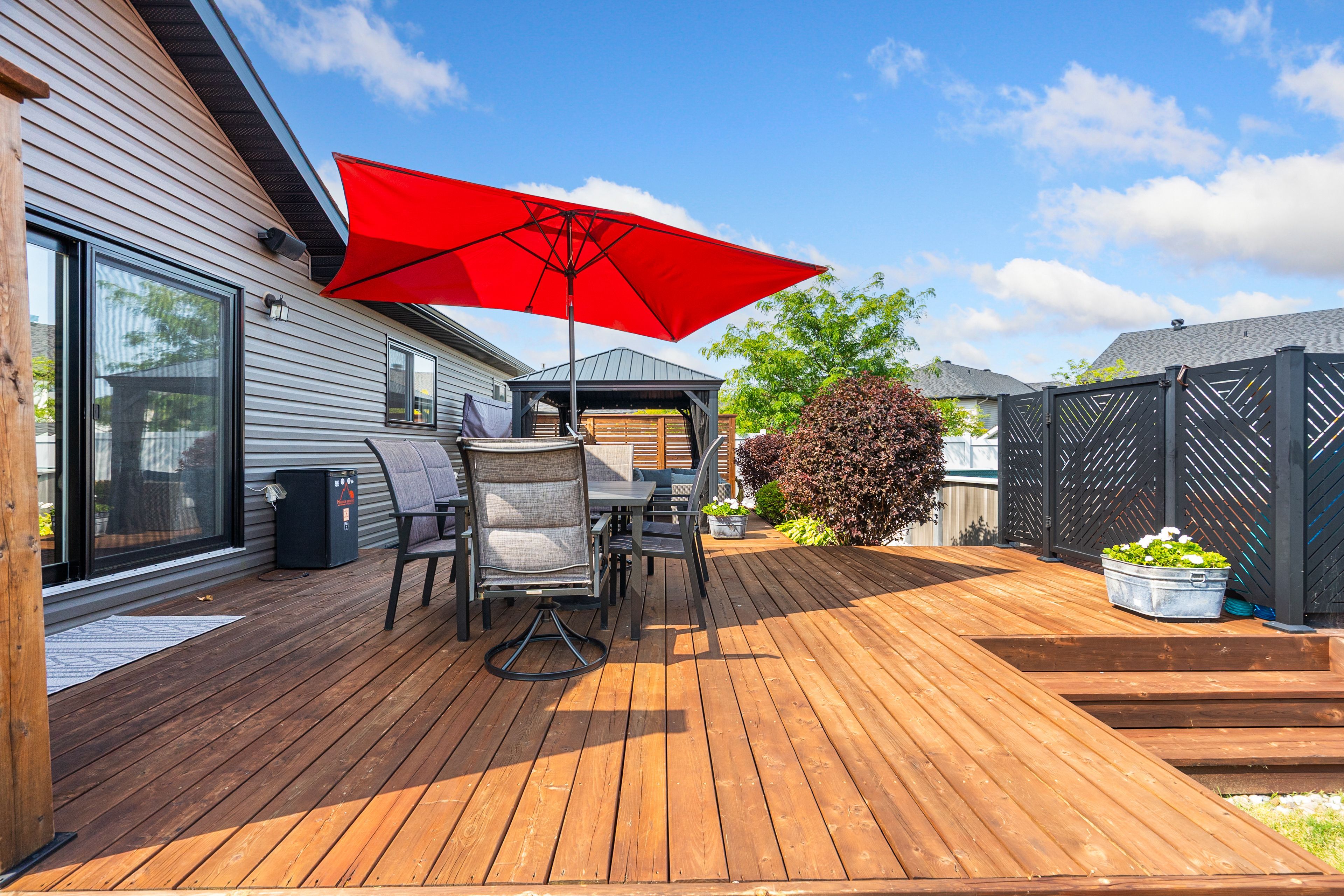 Experience luxury living in mill run, almonte with this exceptional 4-bedroom, 3-bath bungalow, perfectly nestled on an expansive pie-shaped lot. Constructed in 2019, the mcintosh welcomes you with a striking front entrance and tiled foyer featuring ample closet storage and a stylish sliding barn door. A spacious front office, bathed in natural light, provides the perfect workspace or reading nook. Step into the heart of the home in a stunning deslaurier-designed kitchen complete with granite countertops and premium stainless-steel appliances, seamlessly flowing into an open-concept dining and living room. Gather by the modern gas fireplace or enjoy effortless indoor-outdoor entertaining with 8 feet patio doors leading to multi-level decks and a backyard oasis. The main level boasts elegant hardwood barn-style flooring, laundry/mudroom with extra storage, two large kids bedrooms, and a crisp family bath. Also on the main floor is your private primary suite, a true retreat with generous proportions, a walk-in closet, and a spa-inspired ensuite. The finished basement extends the living space with a bright family room warmed by an additional fireplace, a fourth bedroom, full bath, and abundant storage solutions including an area for a gym. Parking is never an issue with an insulated and heated double garage plus a triple-wide, six-vehicle driveway. Enjoy a backyard designed for every lifestyle: a paved sports/basketball area, versatile decks for summer dining, a shaded patio, a salt-water heated above-ground pool, plus mature gardens and handy storage shed. This thoughtfully designed home blends everyday comfort with standout style. Located only minutes from almonte's vibrant core of shops & restaurants & amenities. This home provides the perfect balance of modern living and small-town charm. Don't miss your opportunity to make it yours. Schedule your private tour today.