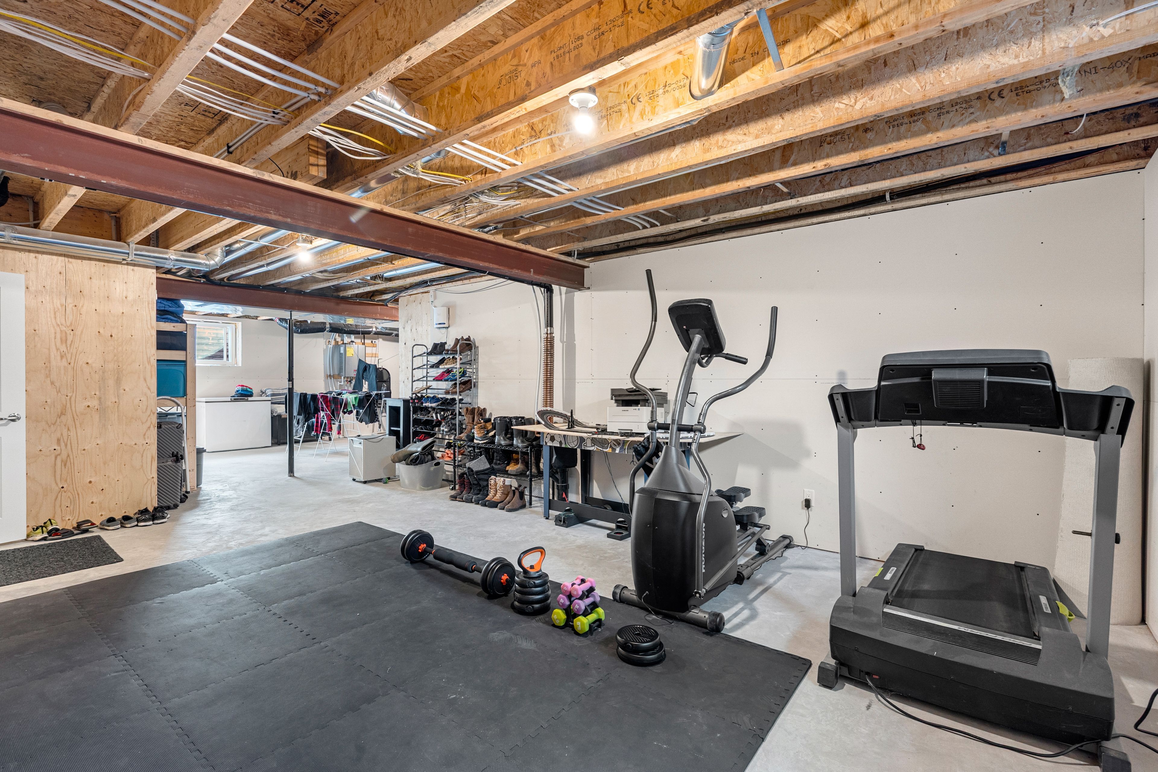 • Finished basement offers additional living space, a fourth bedroom, and gym area.