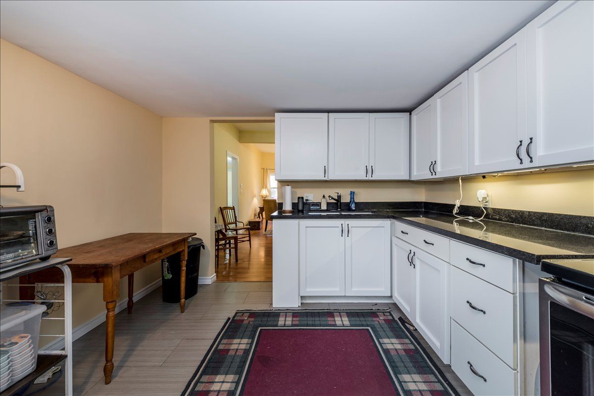 • Updated kitchen features sleek stone counters for a modern feel.