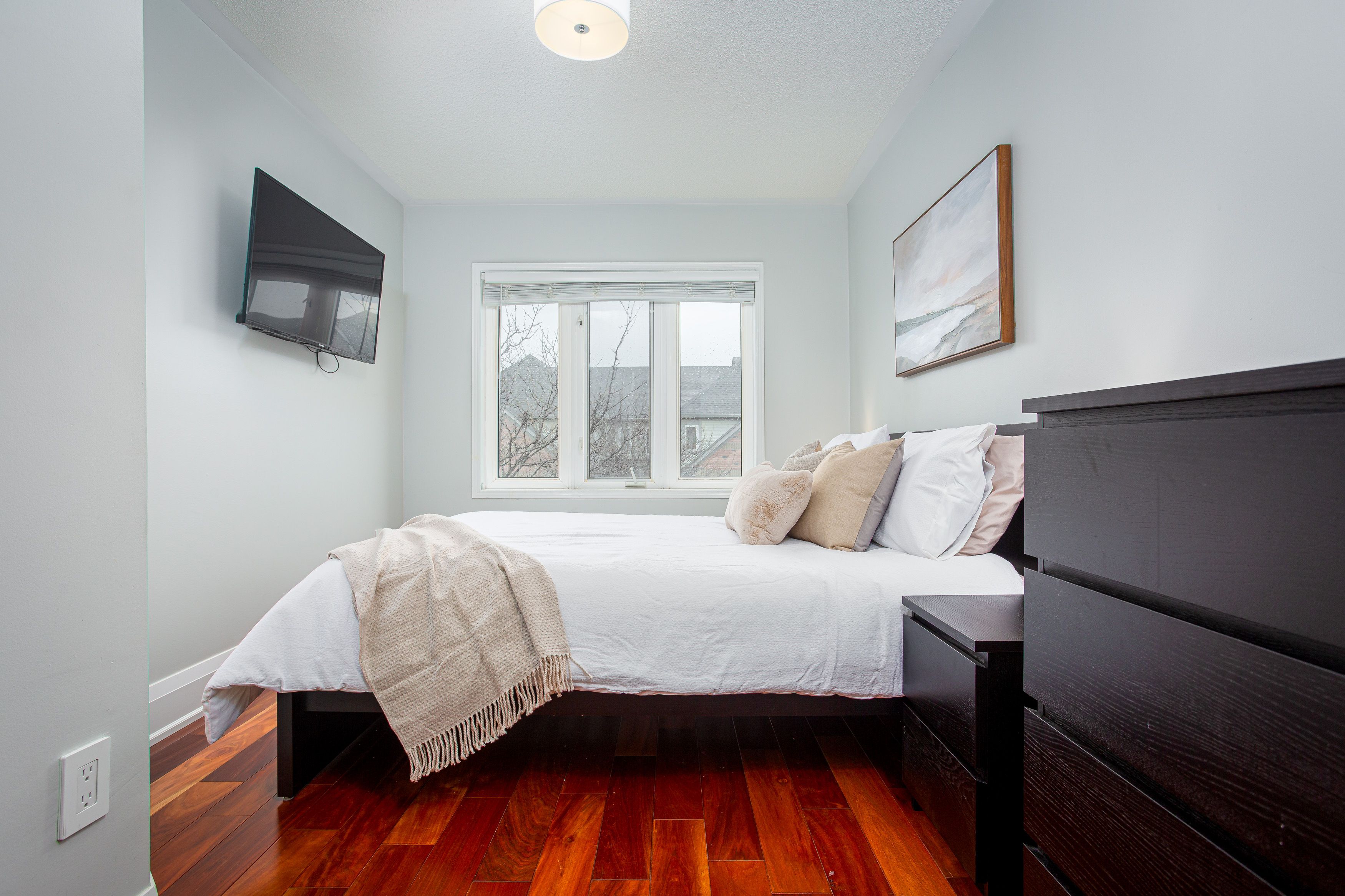 • Fully renovated townhome with premium finishes and solid wood flooring.