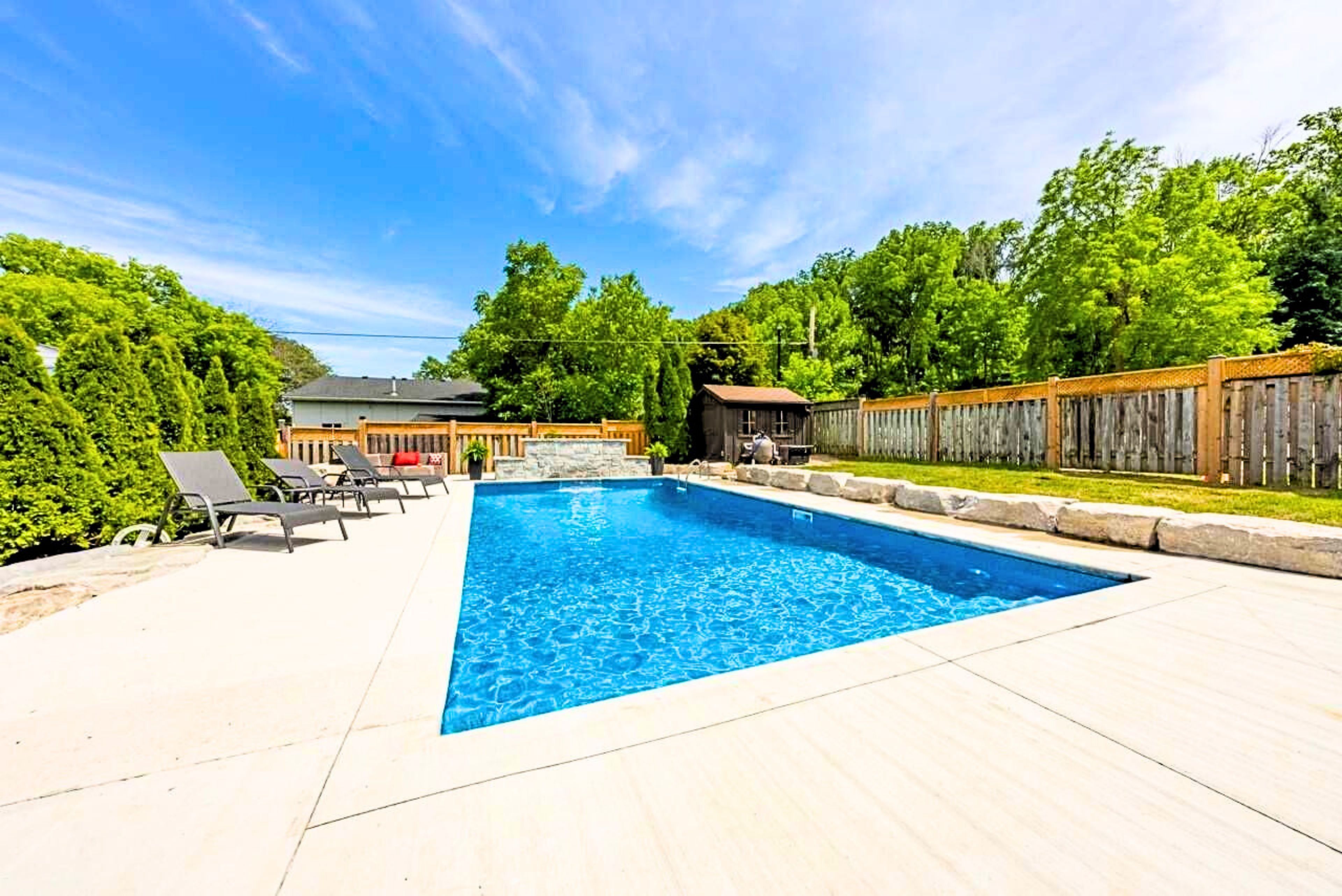 This custom-built, beautiful family home is tucked beneath the escarpment on a quiet street, offering privacy and breathtaking views. The backyard is a true oasis - deisnged for entertaining and everyday enjoyment - featuring an in-ground pool, hot tub, covered porch and a mini putting green that makes everyday feel like a getaway. Inside, the thoughtfully laid out interior offers spacious bedrooms, four bathrooms, and a fully finished basement with a separate entrance - ideal for extended family living or a potential in-law setup.