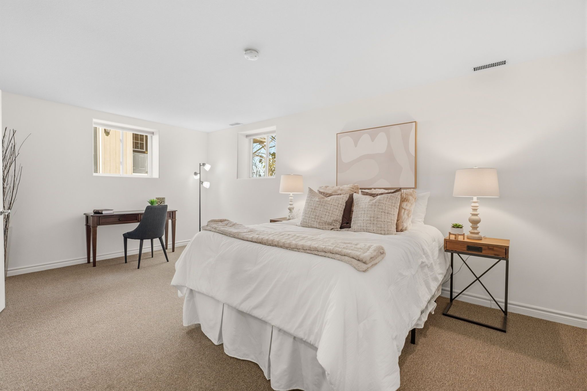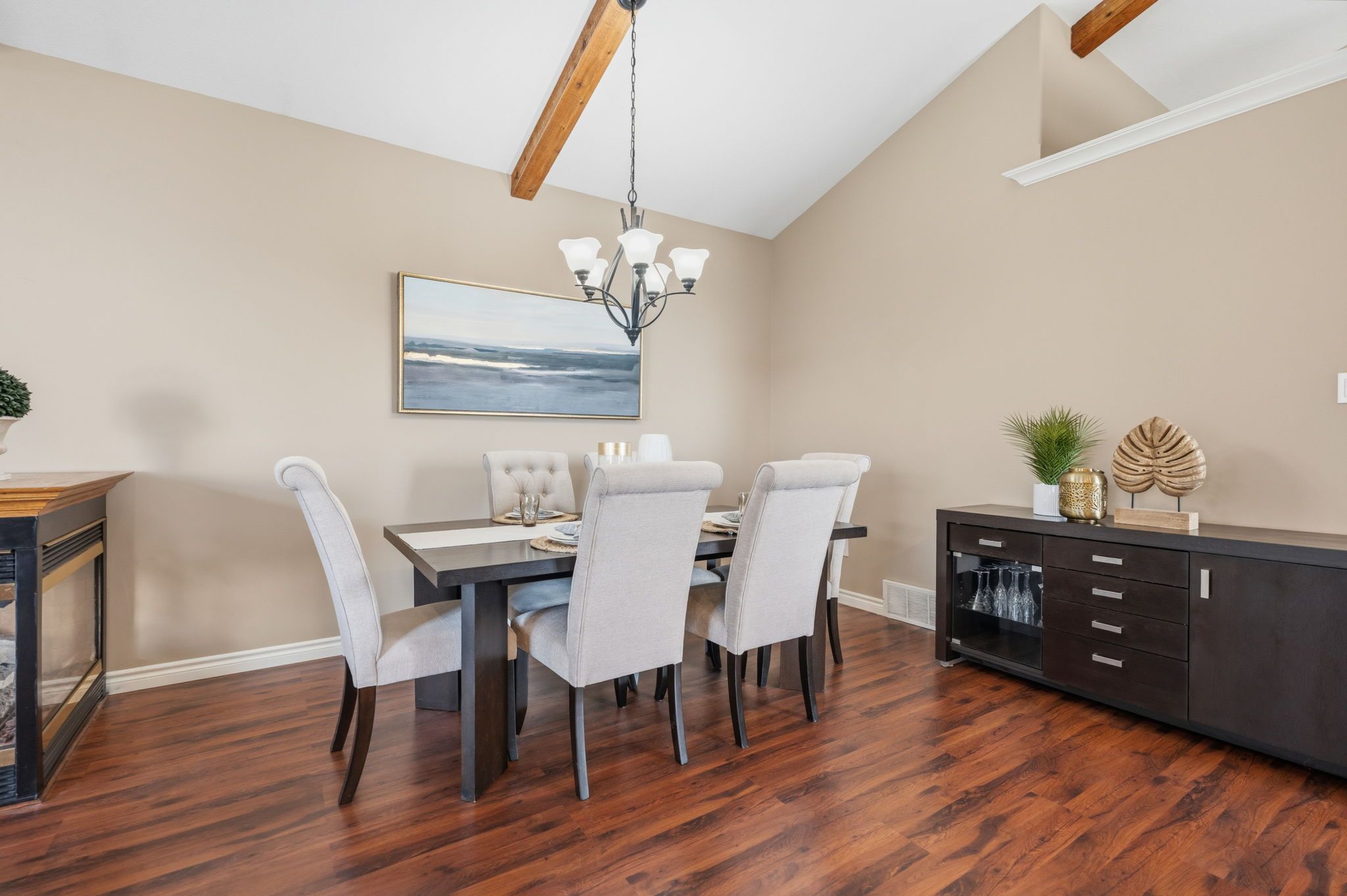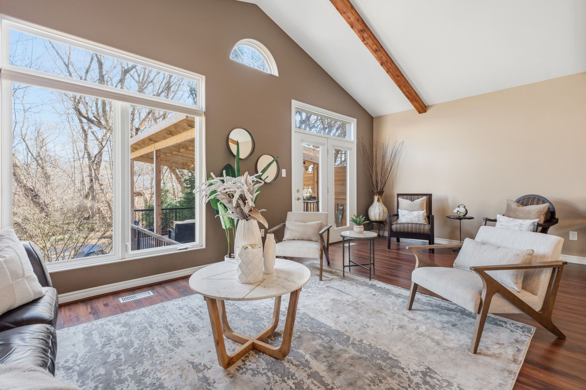 • Bright open-concept layout with vaulted ceilings and large windows.