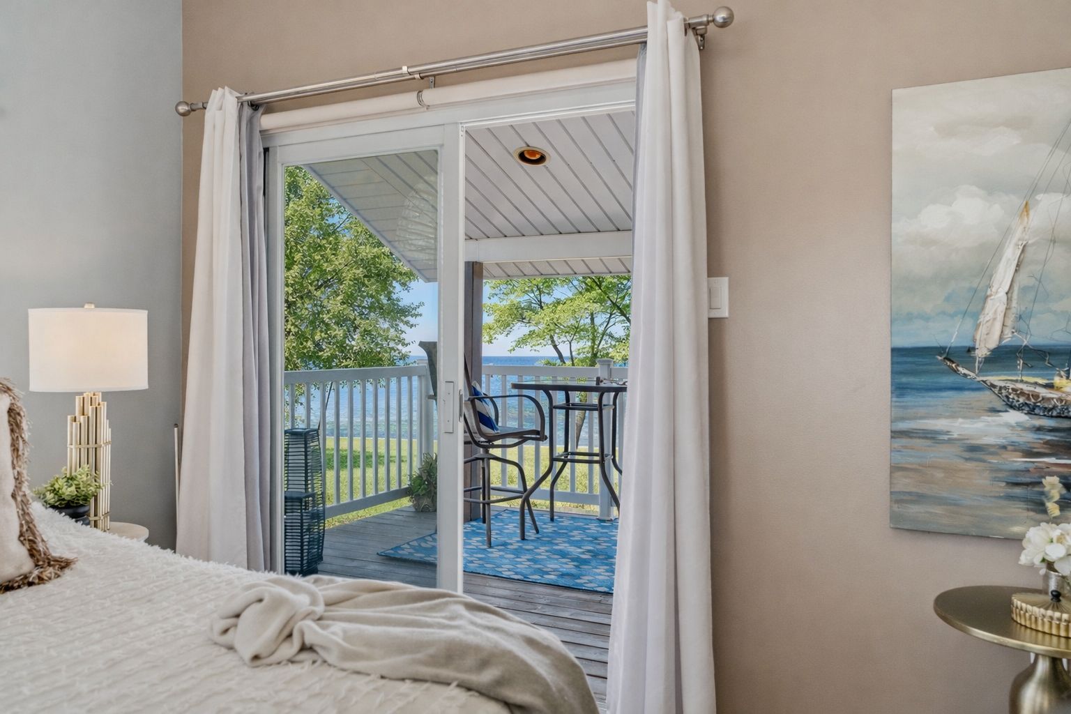 Welcome to 86 newport street in st. Catharines, a beautifully positioned home in the sought-after port weller east neighbourhood offering views of lake ontario. With stunning shoreline views, this location offers a true lakeside lifestyle where morning walks, fresh lake breezes, and sunsets become part of everyday life. Inside, the home features a bright open-concept layout designed for comfortable living and entertaining. Vaulted ceilings with exposed beams add architectural character while large windows bring in natural light and frame views of the surrounding greenspace and lake. The kitchen is thoughtfully designed with stainless steel appliances, gas range, warming drawer, coffee station, and a large island that becomes the gathering place for family and friends. The adjoining living and dining areas centre around a striking three-sided fireplace and connect seamlessly to the outdoor living space. Step outside to the standout feature of the home: a custom three-tier trex deck designed to maximize outdoor living and lake views. The upper deck features a three-season louvered roof system allowing control of sunlight and shade while enjoying the breeze off the water. Multiple deck levels provide space for dining, lounging, and entertaining. Upstairs, the primary bedroom offers a peaceful retreat with a reading nook, california shutters, laundry closet, and a spa-inspired four-piece ensuite with skylight and deep soaker tub. A private balcony off the suite provides another vantage point to enjoy open lake views and sunsets over lake ontario.. The second bedroom includes its own ensuite, offering comfort and privacy for guests or family. Located in st. Catharines' desirable port weller east community, the home is close to jones beach, waterfront trails, the st. Catharines marina, the welland canal parkway, and niagara-on-the-lake wineries, with convenient qew access to toronto and the u. S. Border.