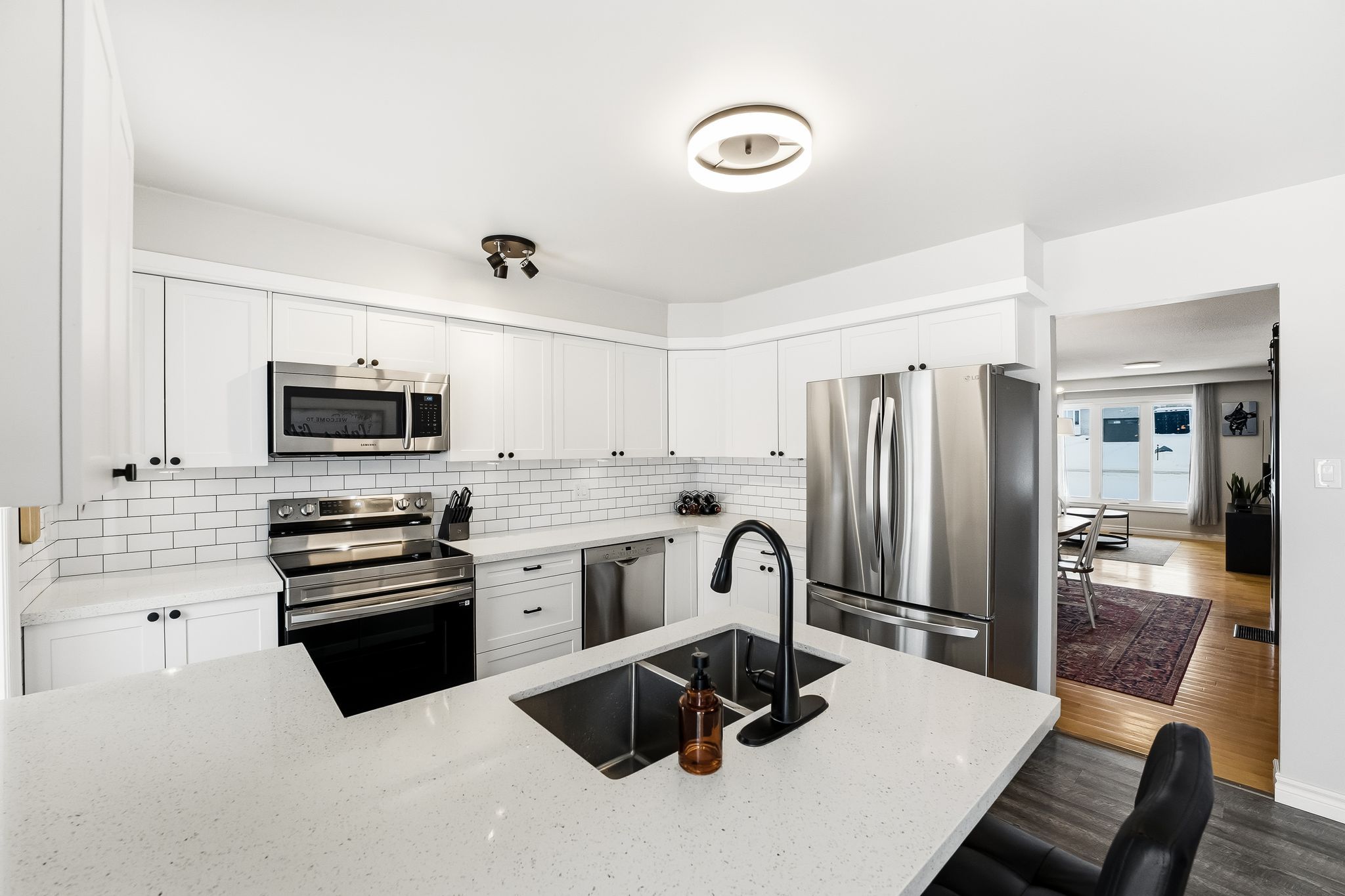 • Spacious eat-in kitchen with quartz countertops and access to the expansive deck.