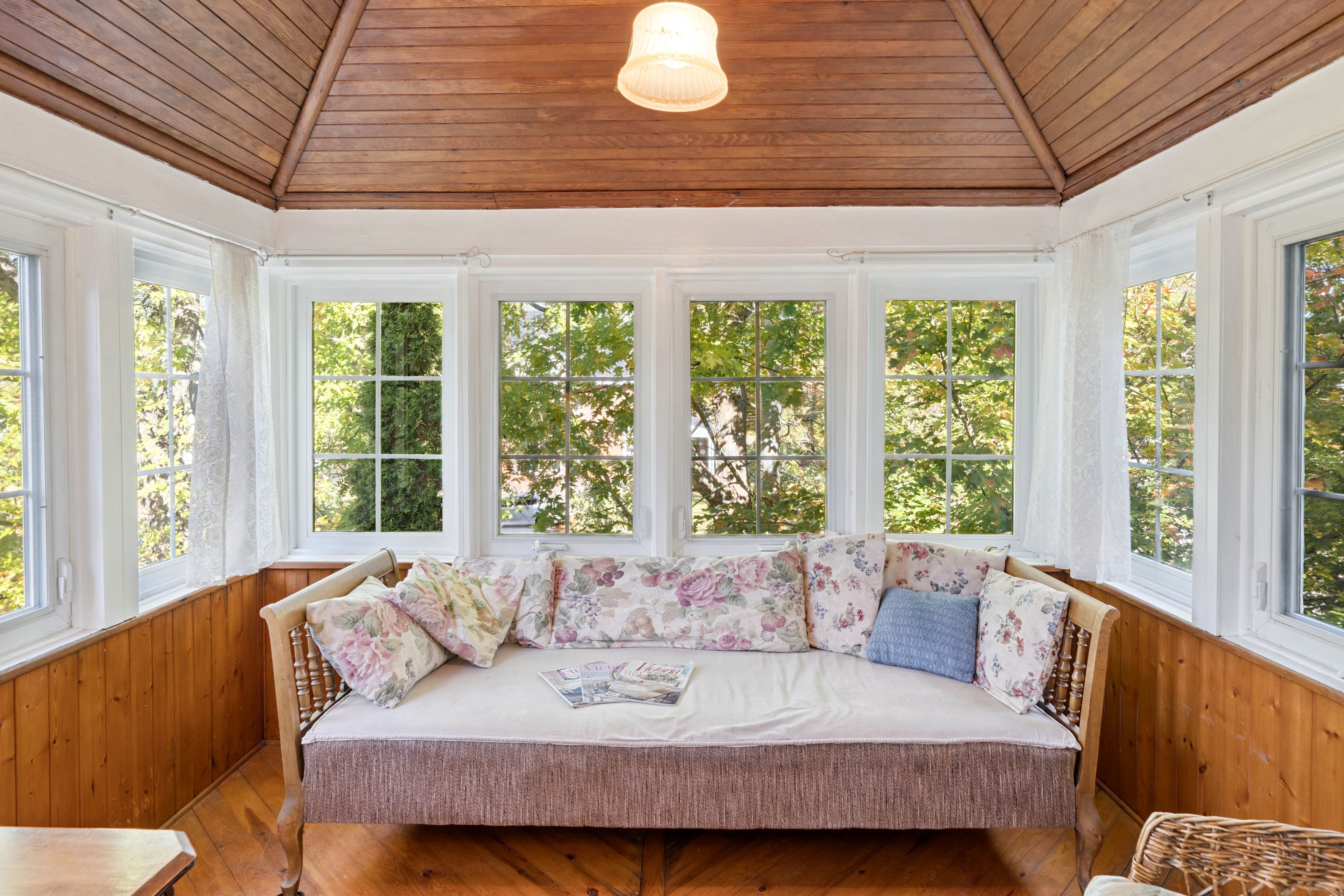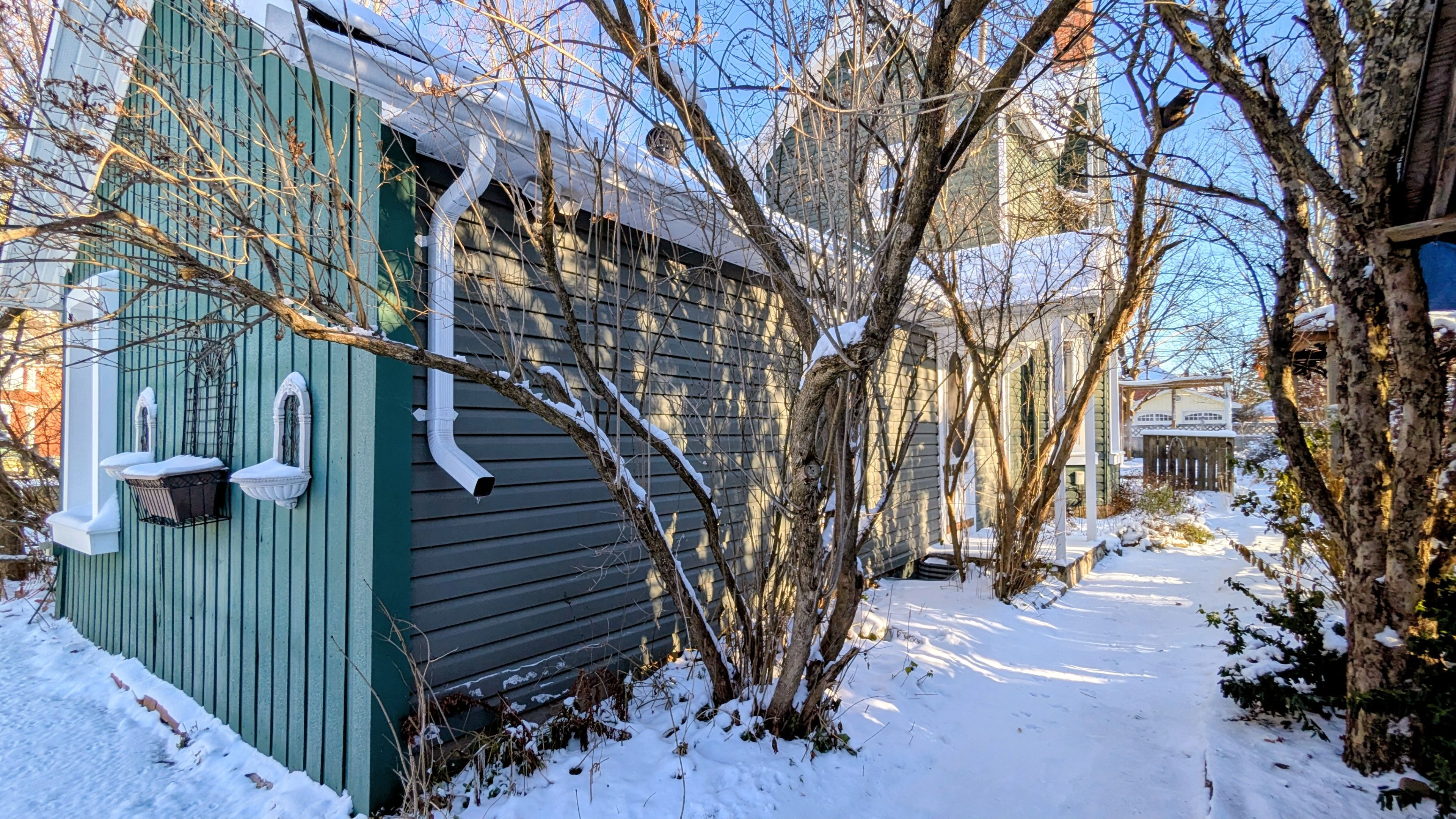 3-bdrm home + 1-bdrm dwelling + separate 269 sqft studio/office + 23'x11' workshop/garage. Step inside the main house through the covered sitting porch and convenient mudroom, then in to a large foyer with great storage. The main floor layout provides for a spacious kitchen/dining area (with direct access to the backyard deck for bbqing and relaxing), living room, family room with gas fireplace, and separate laundry room. Upstairs provides 3 bedrooms, a 4pc bathroom and cozy sunroom nestled among trees overlooking the front and side yards. Downstairs, an intact original stone basement completely spray foamed/sealed, offering 650+ sqft for storage or craft/workshop area. The attached 400 sqft dwelling offers 1-bedroom, a full kitchen combined with living area, a 4pc bathroom with clawfoot tub, and private entrance (with optional interior access to the main house). Outside, the detached garage houses many opportunities including 162 sqft of storage in the shed space, 23x11 workshop/garage with loft storage, and 269 sqft studio/office space with propane fireplace and 2pc bath perfect for the artist or home-based business such as therapist, accountant, and b&b. A century home with traditional high ceilings throughout, timeless charm and character, an oasis of a backyard with beautiful gardens, mature trees, ornamental ponds, greenhouse, and additional shed on the east side of the home all found on a remarkably private property for an in-town corner lot. Only a 6-9 minute walk to dining, entertainment, shopping, swimming and walking trails around the muskoka river. Zoned r2: detached dwelling, semi-detached dwelling, duplex dwelling, home occupation, bed & breakfast, second dwelling unit. On-demand boiler replaced 2023.