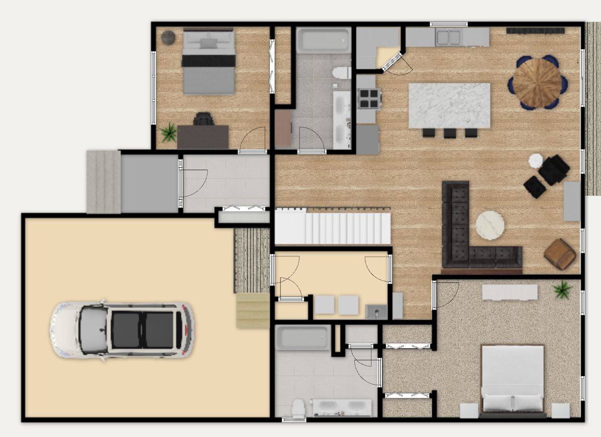 • Bright, open-concept layout with 2+2 bedrooms and three bathrooms.
