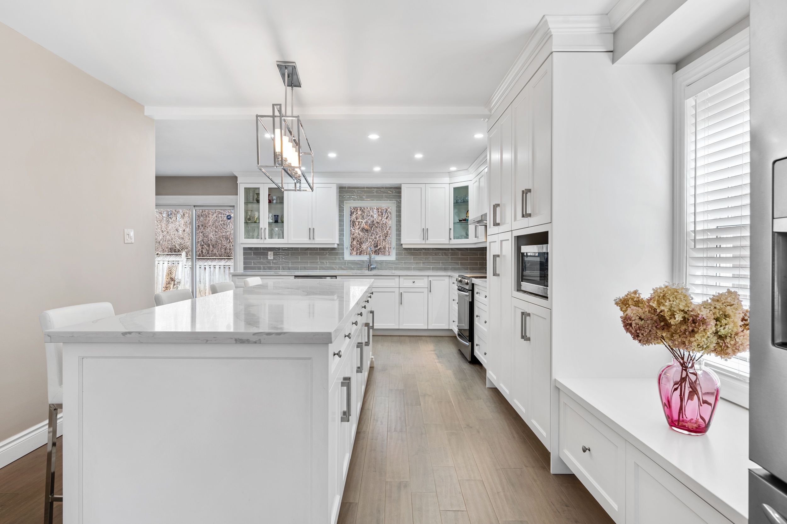 With almost 4ooo sqft of usable space, you will have plenty of room for the entire family. This home has had an amazing transformation that was completed in 2022 with every detail on point. As soon as you enter the front door you will quickly be impressed. On the main floor there is a powder room, laundry with entry to the garage, a door to the side yard and an office space which could also be used as a guest bedroom. Now the show stopper, the rest of the main floor is open concept! There are no walls between the family room, kitchen and dinning room. The kitchen was custom designed by barzotti. Beautifully crafted and includes a giant 10-foot island that easily sits 6 people, quartz counter tops, stainless-steel appliances. Upstairs: massive primary bedroom with ensuite (soaker tub, glass shower, double sinks), a large walk-in closet, 3 more large bedrooms and a full washroom. Downstairs: two bonus rooms, rec room, kitchenette and full washroom, large storage room and cold room. Backyard: gorgeous stone patio approximately 560 sqft (2023), and a shed. Private yard with no back neighbors, a gate at the back fence to take walks through the forest which leads to santa maria park. Great location. Close to schools, shopping, parks, river trails, and quick access to 401 or 403.