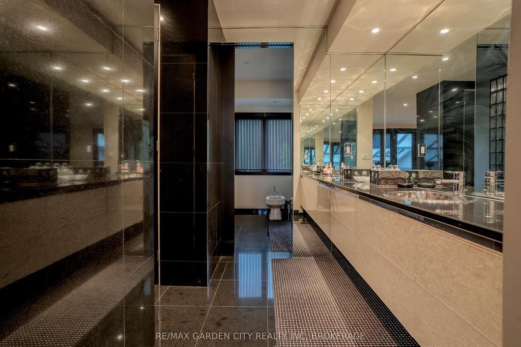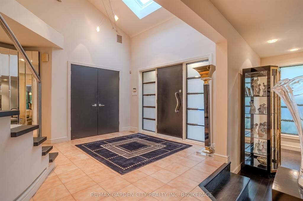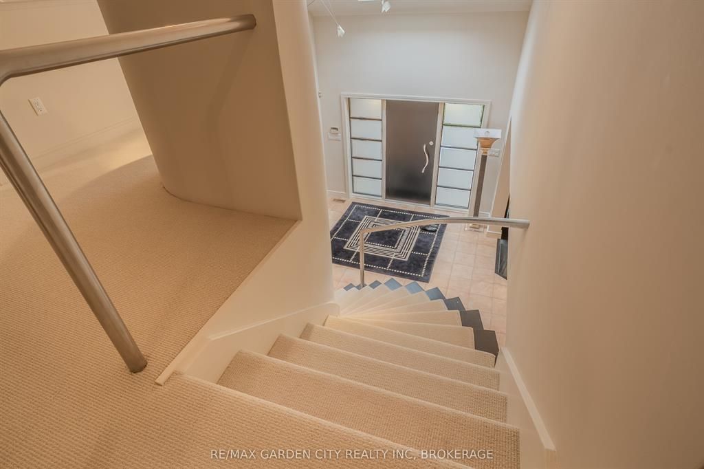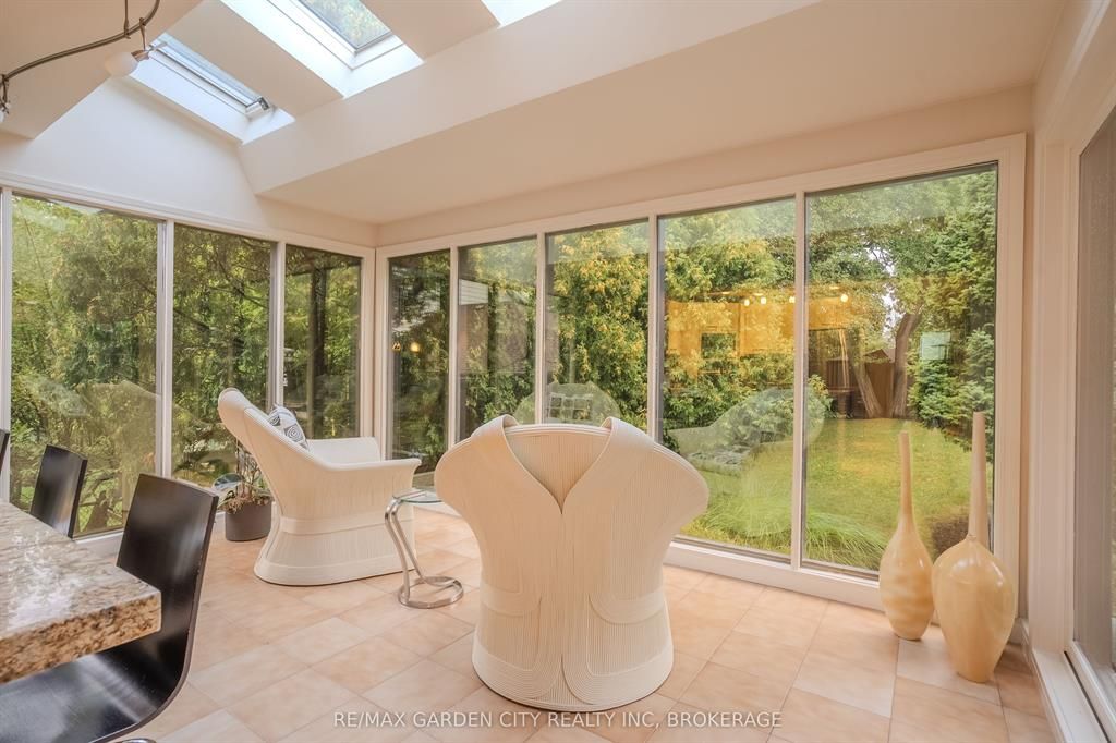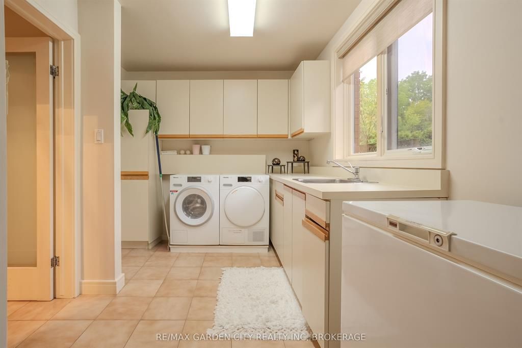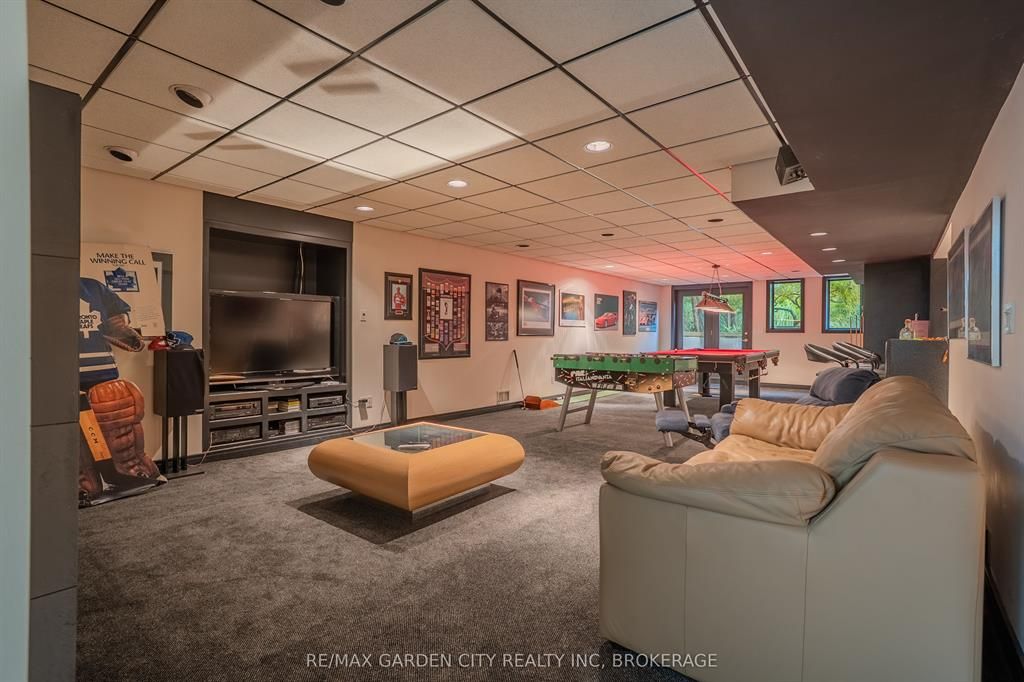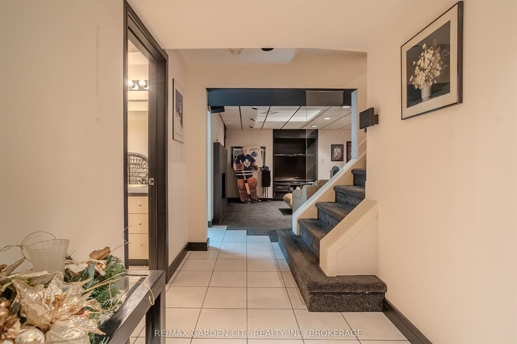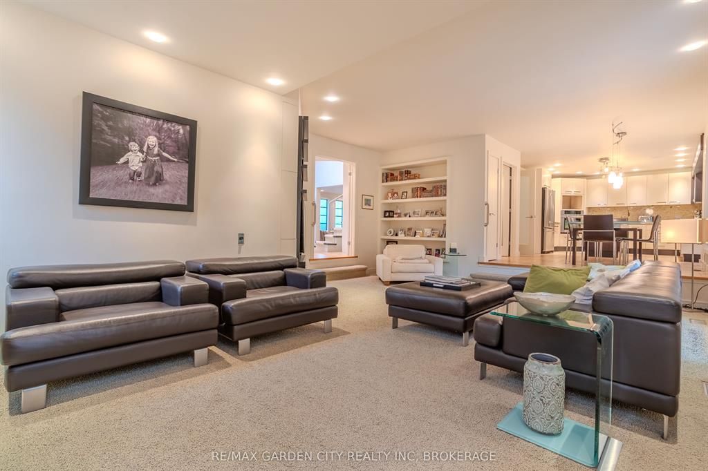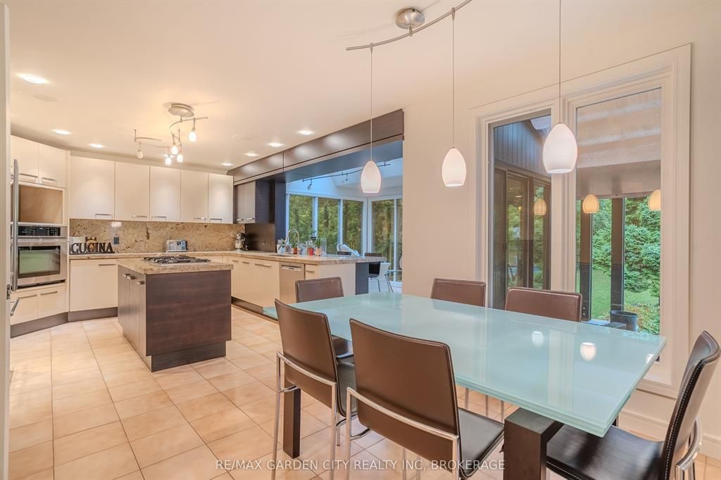 Welcome to 86 tremont drive, a one-of-a-kind residence on one of st. Catharines most desirable streets. Nestled near the top of the niagara escarpment in the sought-after south end, this prime cul-de-sac location backs onto protected greenspace with access to scenic walking trails. The private, mature lot features a backyard retreat with inground pool, patio with trellis, cedar sauna, and bocce court. This striking two-storey brick home offers over 3200 sq ft of living space, a finished 2-car garage with tile floor and drain, and a modern exterior with upgraded black windows and glass-paneled garage doors. A grand foyer welcomes you with an open-tread staircase and custom stainless-steel railing. The sunken living room with hardwood floors and two-sided gas fireplace opens to a formal dining room, while the refaced kitchen with flat-panel cabinetry and granite counters flows into a custom solarium with patio doors to the backyard. A sunken family room with gas fireplace, dramatic powder room, and laundry with garage access complete the main floor. Upstairs, three bedrooms include two secondary bedrooms with ample storage and a shared bath, plus a dramatic primary suite with custom built-ins, black granite tile, private sitting room with skylights, and spa-like ensuite with soaker tub, bidet, and walk-through dressing area. The fully finished lower level adds a rec room with gas fireplace, wet bar, walk-out to the backyard, bath, storage, and cold cellar. Designed by renowned john kazmir, this home blends mid-century influence with bold custom features, offering a rare combination of exceptional location, architectural presence, and private outdoor oasis.