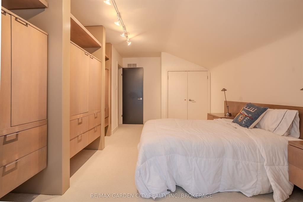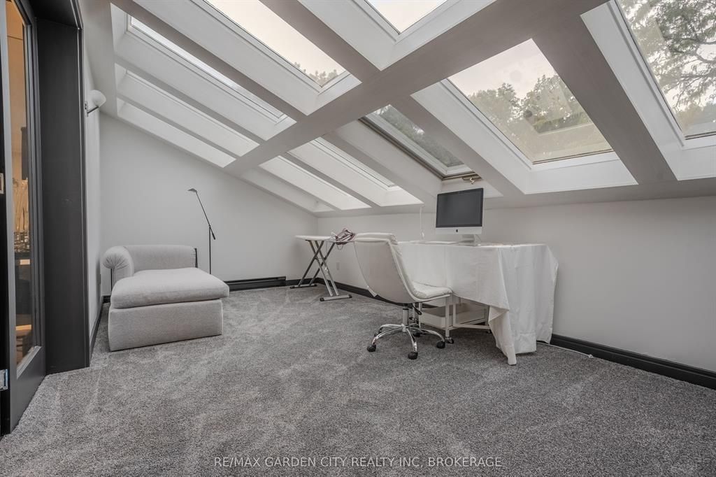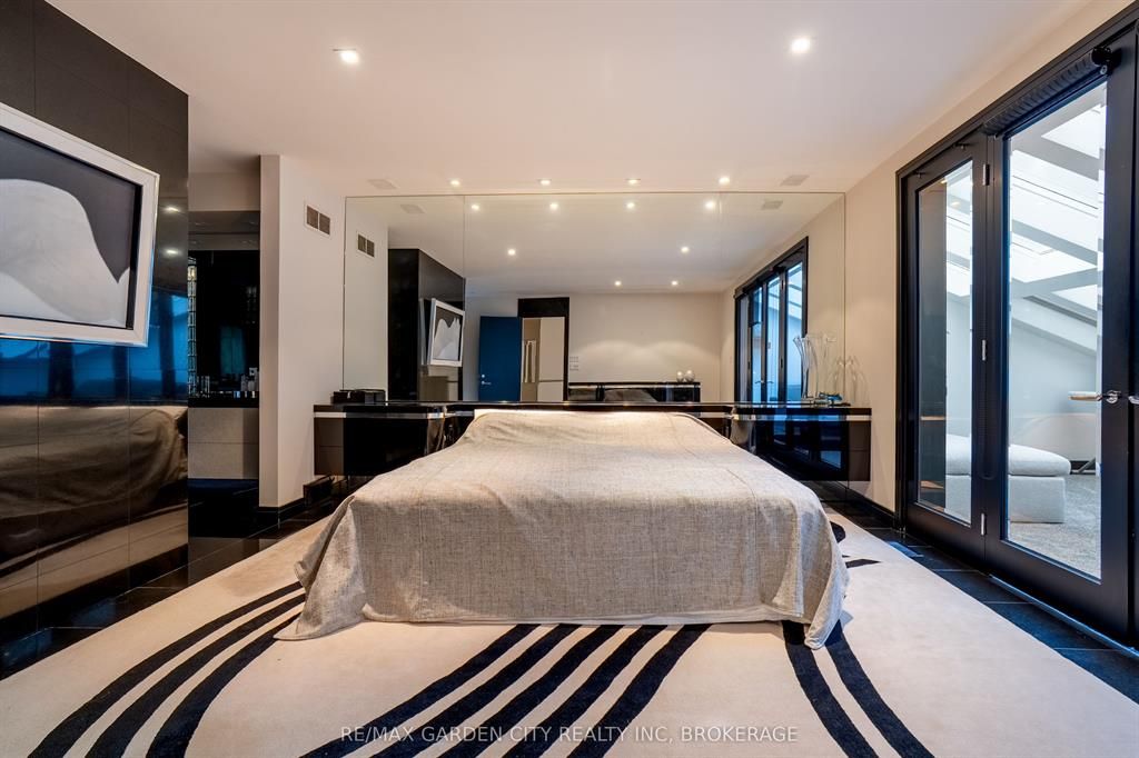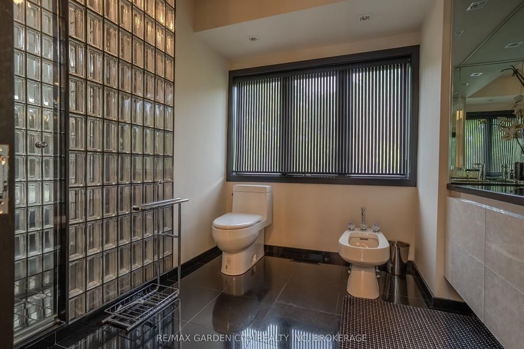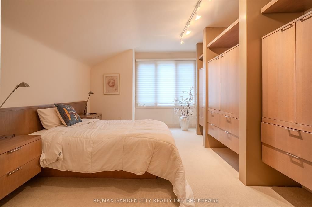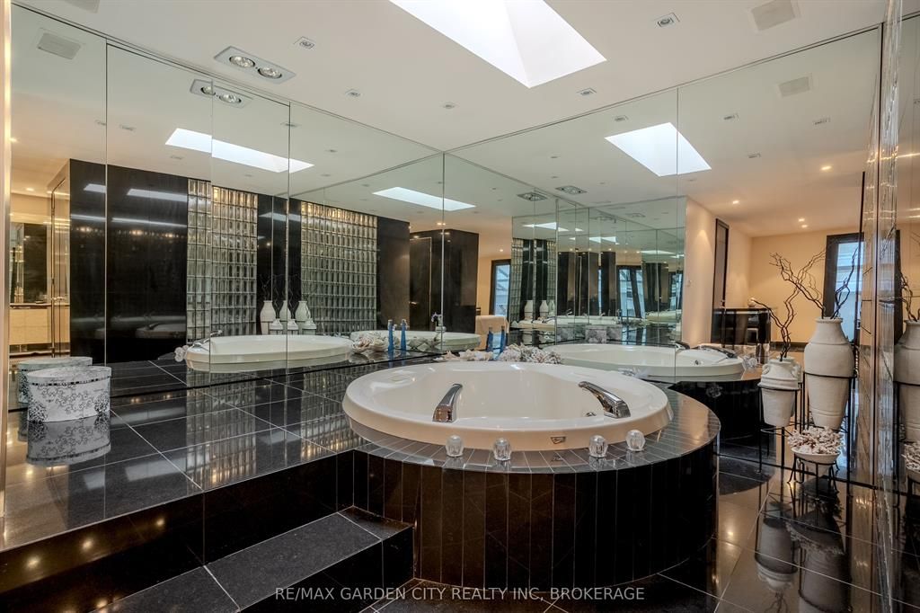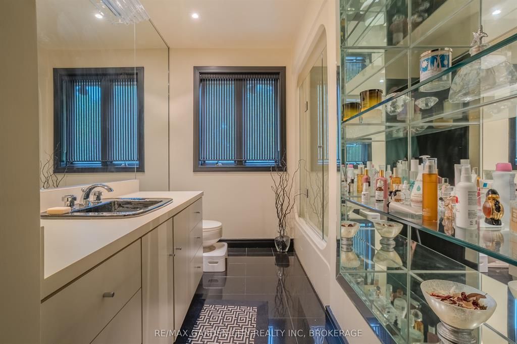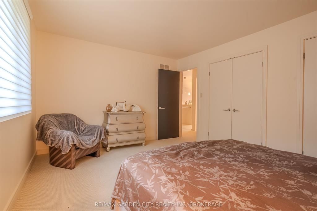 Welcome to 86 tremont drive, a one-of-a-kind residence on one of st. Catharines most desirable streets. Nestled near the top of the niagara escarpment in the sought-after south end, this prime cul-de-sac location backs onto protected greenspace with access to scenic walking trails. The private, mature lot features a backyard retreat with inground pool, patio with trellis, cedar sauna, and bocce court. This striking two-storey brick home offers over 3200 sq ft of living space, a finished 2-car garage with tile floor and drain, and a modern exterior with upgraded black windows and glass-paneled garage doors. A grand foyer welcomes you with an open-tread staircase and custom stainless-steel railing. The sunken living room with hardwood floors and two-sided gas fireplace opens to a formal dining room, while the refaced kitchen with flat-panel cabinetry and granite counters flows into a custom solarium with patio doors to the backyard. A sunken family room with gas fireplace, dramatic powder room, and laundry with garage access complete the main floor. Upstairs, three bedrooms include two secondary bedrooms with ample storage and a shared bath, plus a dramatic primary suite with custom built-ins, black granite tile, private sitting room with skylights, and spa-like ensuite with soaker tub, bidet, and walk-through dressing area. The fully finished lower level adds a rec room with gas fireplace, wet bar, walk-out to the backyard, bath, storage, and cold cellar. Designed by renowned john kazmir, this home blends mid-century influence with bold custom features, offering a rare combination of exceptional location, architectural presence, and private outdoor oasis.