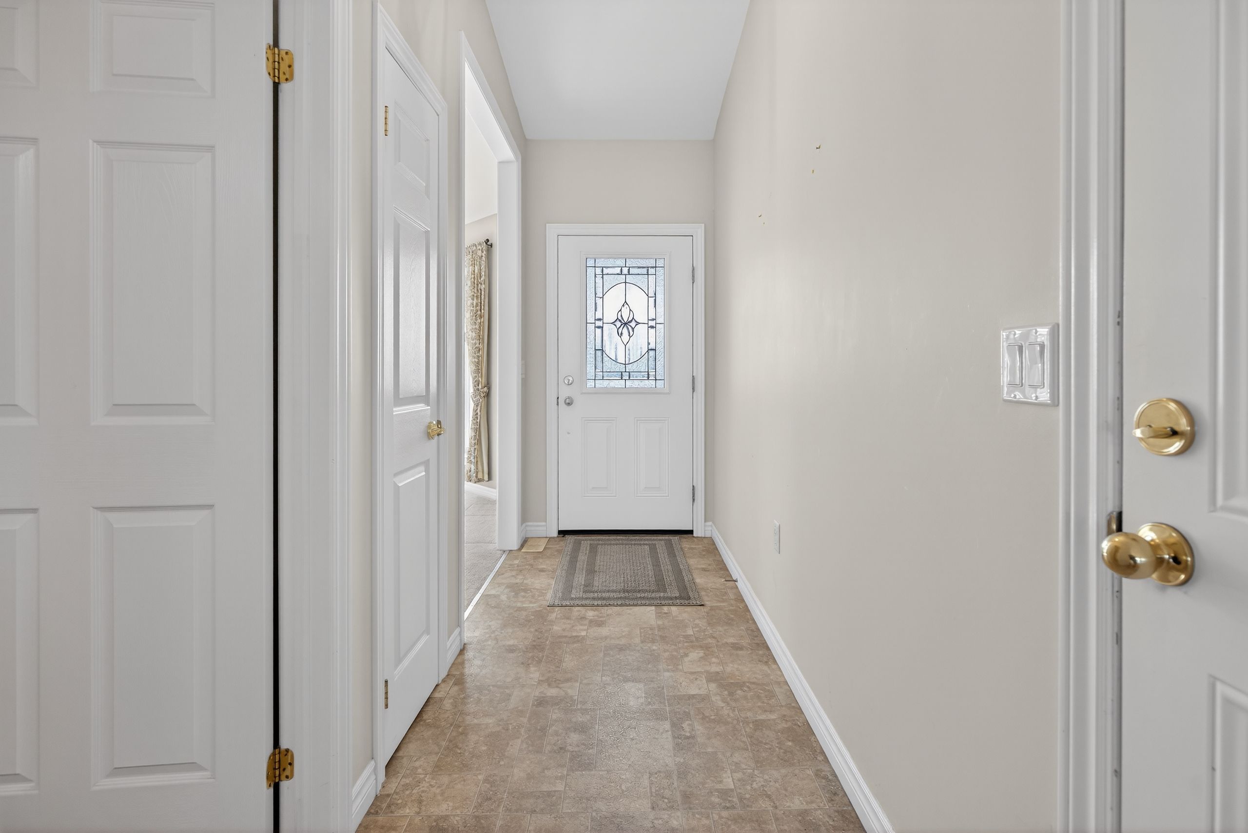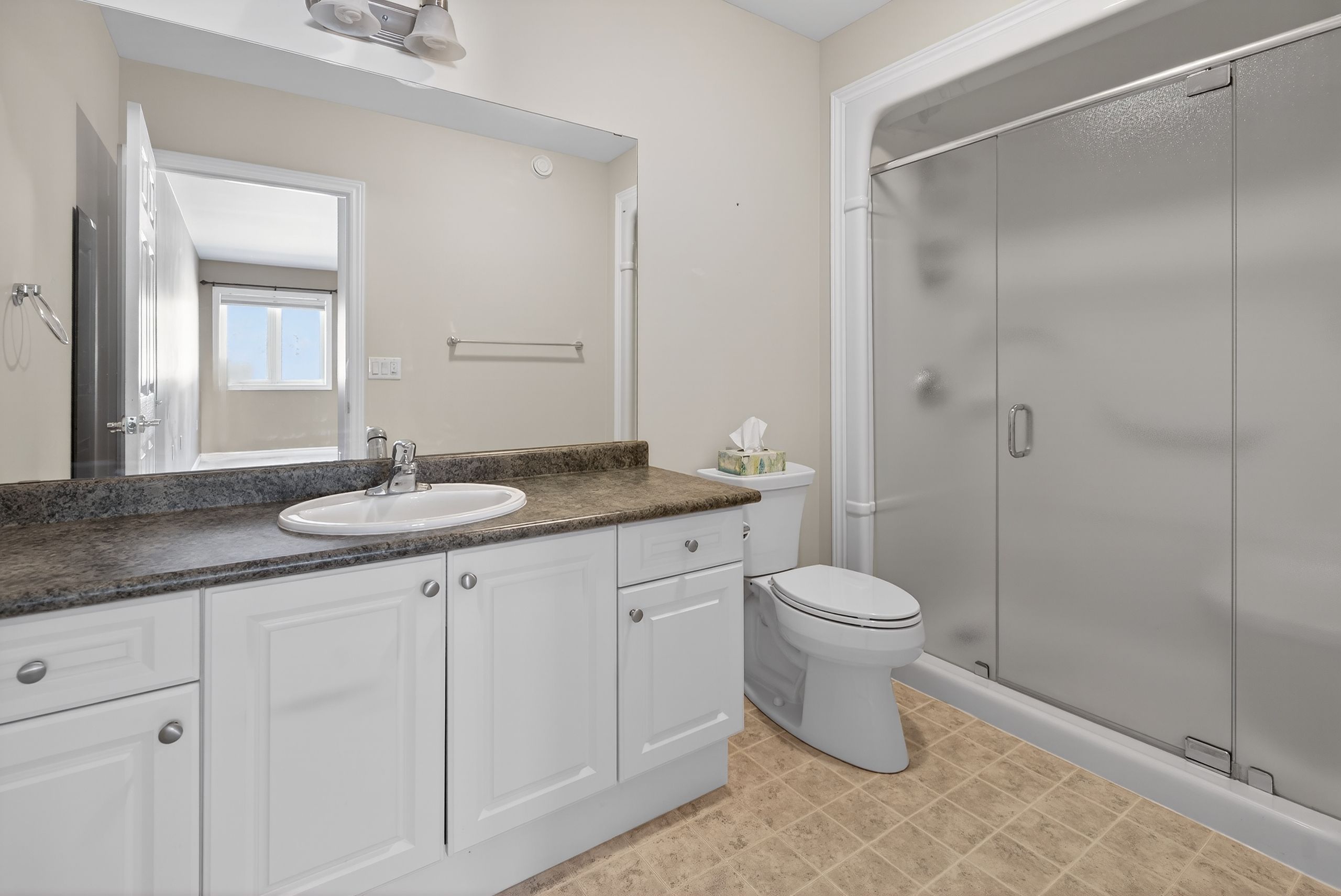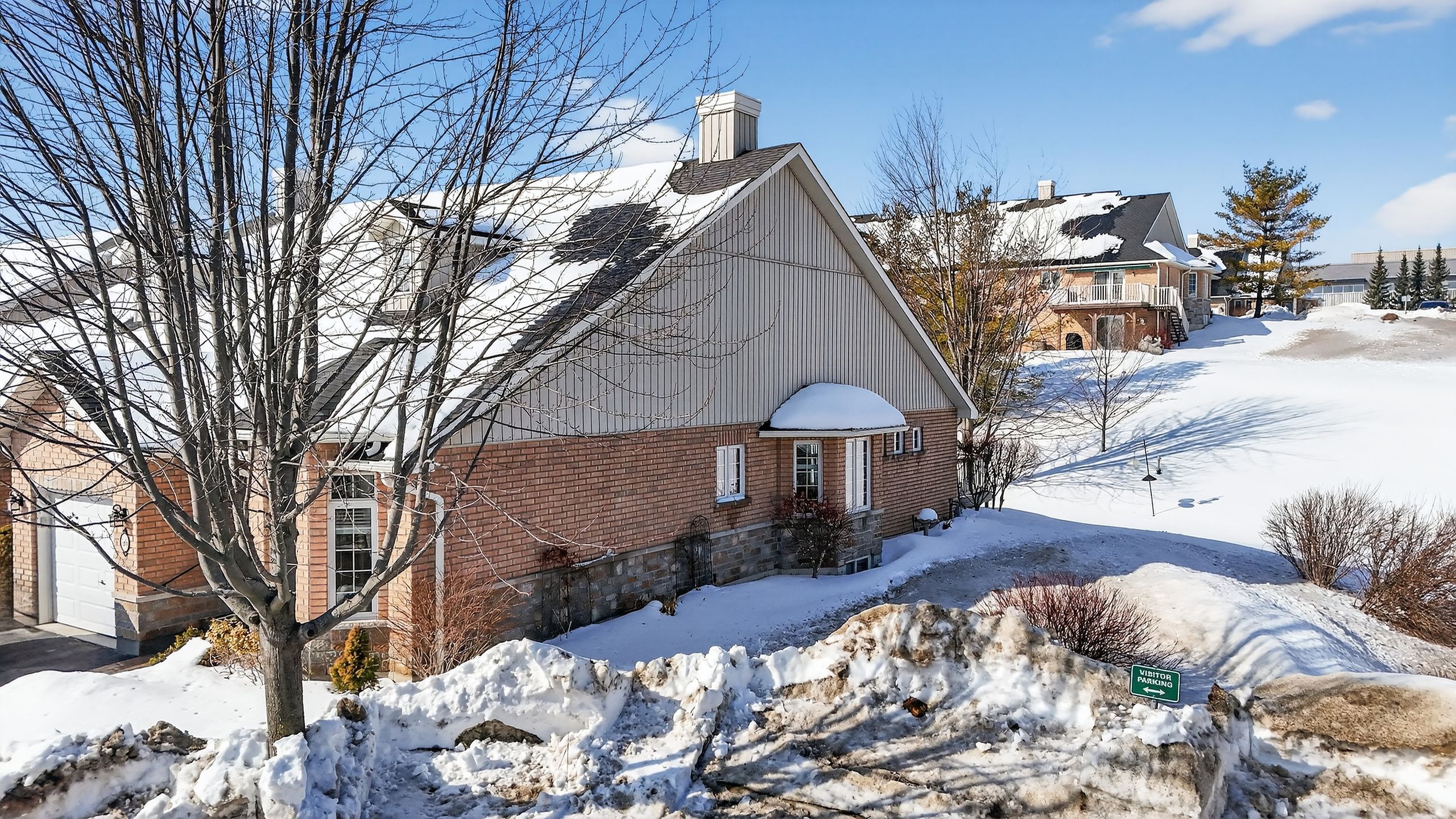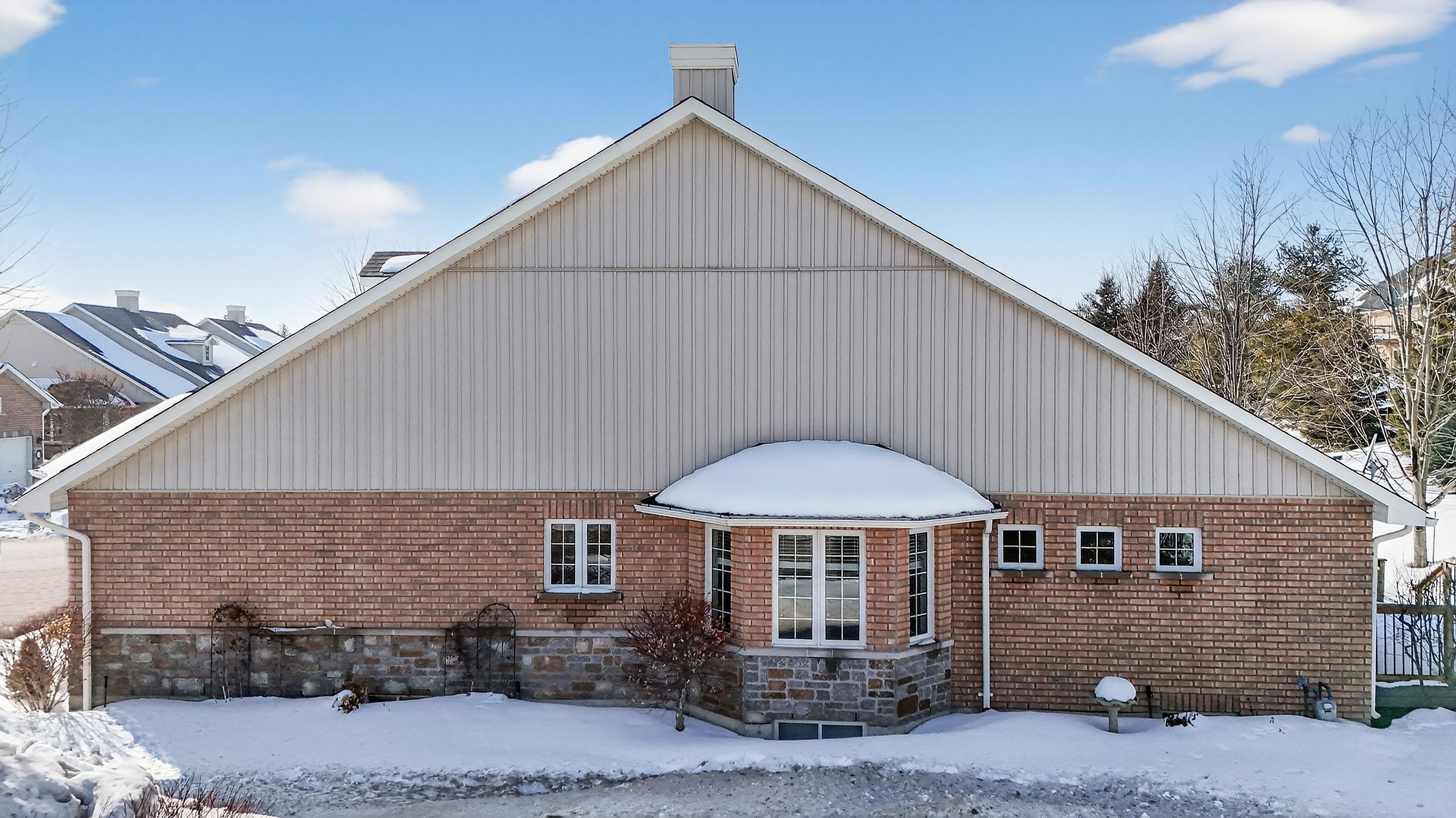 Beautiful bungalow-style home featuring soaring vaulted ceilings and an expansive open-concept living room and dining room with gleaming hardwood floors throughout the main living space. Oversized windows fill the home with natural light, creating a bright and airy atmosphere and a welcoming flow throughout. Spacious kitchen with ample cabinetry, tile backsplash, double sink, built-in microwave, dishwasher, refrigerator and stove overlooking the main living area, ideal for entertaining with ease or comfortable everyday living. Walk-out from the living room to a private elevated deck overlooking open green space with no direct rear neighbours, offering peaceful views and added privacy. Generous primary bedroom with large walk-in closet and plush broadloom designed for relaxed comfort. Well-appointed 3-piece bathroom with glass enclosed shower and extended vanity providing functional design. Convenient main floor laundry for everyday practicality. Full unfinished basement with excellent ceiling height, large windows and cold storage room presenting future development potential for additional living space, recreation room or bedrooms. Attached single-car garage with opener and interior access adds everyday convenience. A wonderful opportunity to enjoy open-concept living in a quiet setting close to amenities, parks and transit.