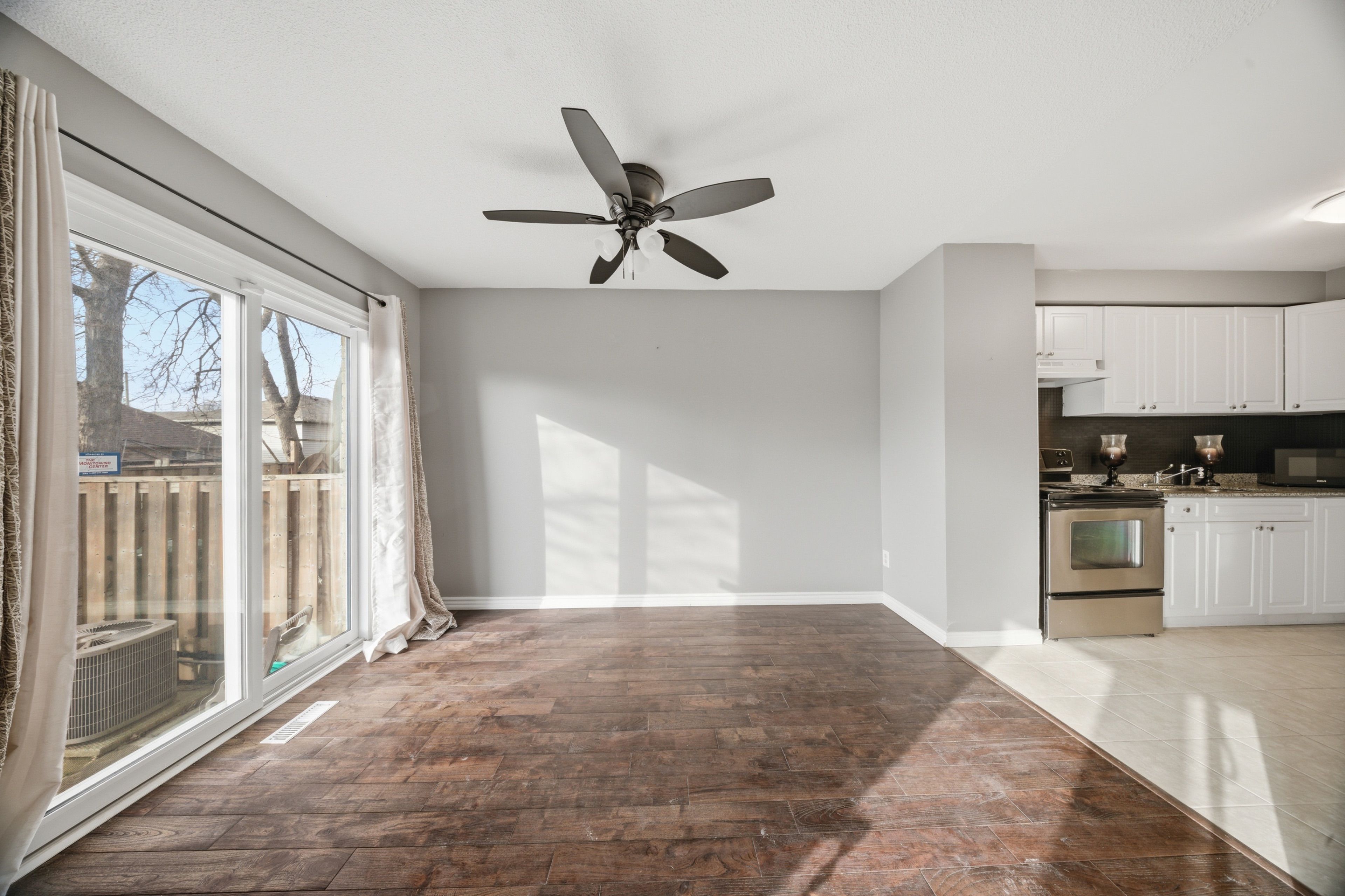 Don't miss this opportunity to own a beautifully renovated 2-storey condo townhouse offering 3 bedrooms plus a den/office and 3 bathrooms, including 2 full baths and a convenient main floor powder room, in a convenient and family-friendly hamilton location. Bright main floor features hardwood flooring throughout the living and dining areas, with a walk-out to a fully fenced backyard-perfect for enjoying western exposure and afternoon sun. The kitchen includes a pantry and is equipped with fridge, stove, and microwave. Upstairs offers three well-sized bedrooms, all with hardwood flooring. The primary bedroom enjoys southern exposure and semi-ensuite access to a 3-piece bathroom, also accessible from the hallway for added convenience. The finished basement provides additional living space with a recreation area, den/office, laundry, and storage, along with an additional 3-piece bathroom. Ideal for families or those needing extra workspace. Recent updates include a new furnace (august 2025) and new front and patio doors (2022). Property includes a single attached garage with one additional driveway parking space. Located close to parks, schools, shopping, highway access, and other amenities, with a large open green space within the complex-perfect for kids to run, play, enjoy picnics, or play soccer. Pet-friendly complex. Free driveway salt provided by condo corporation. A must-see property. Book your private showing today.