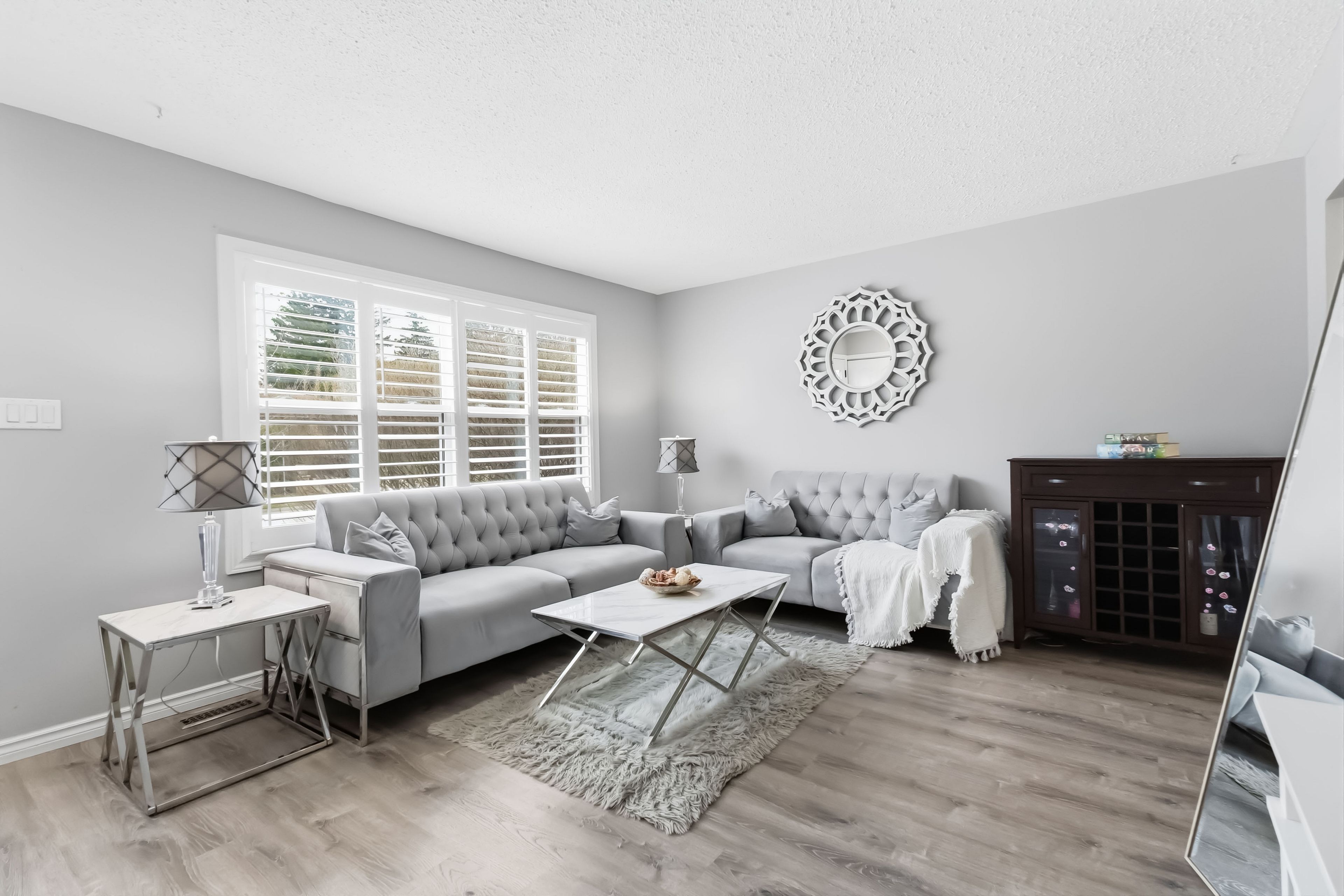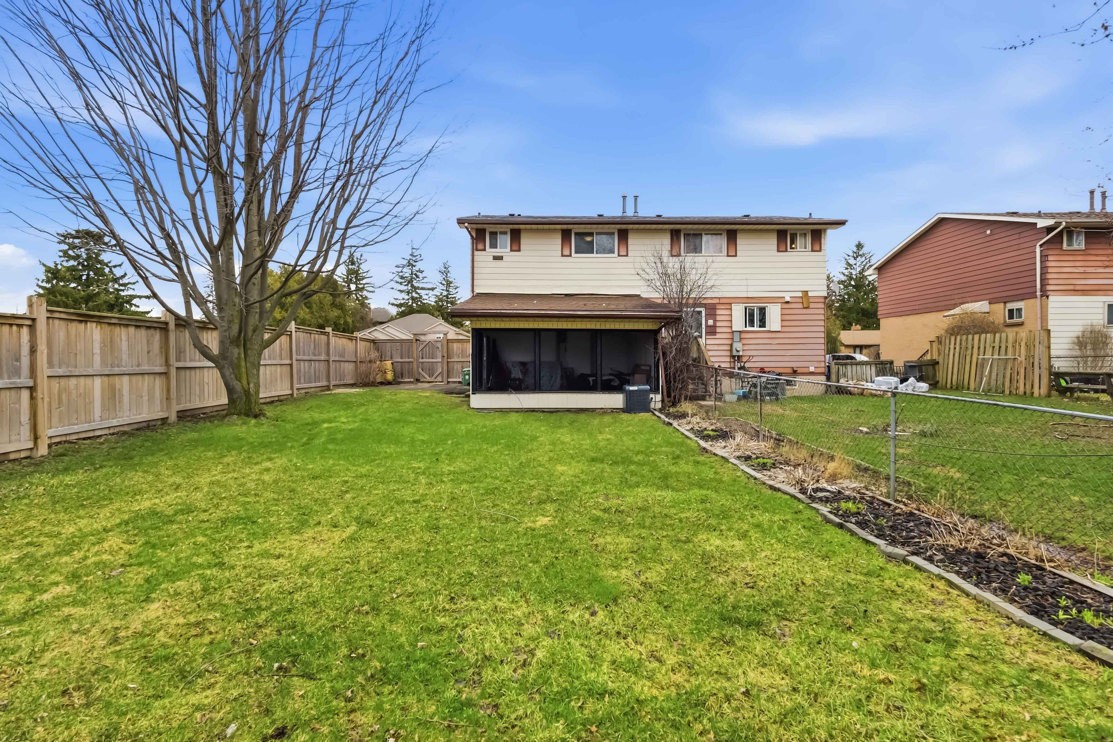 No condo fees! Fully updated & move-in ready! This 2-storey semi-detached home offers 3 bedrooms, 1. 5 bathrooms, a finished basement, and a large fenced backyard. Fully renovated from top to bottom, with recent updates including roof, flooring, windows, appliances, fence, and a/c. Bright living room with oversized windows and california shutters. Updated kitchen with quartz countertops, stainless steel appliances, and ample cupboard and counter space. Finished basement provides flexible space for a family room, gym, or play area. Upstairs features 3 bedrooms and a 4-piece bathroom with a granite vanity. Spacious backyard with newer fence and a finished outdoor room, perfect for entertaining. Prime location just steps to white oaks mall, close to shopping, restaurants, parks, schools, and quick highway access. A beautifully updated home in an ideal neighbourhood to raise your family!