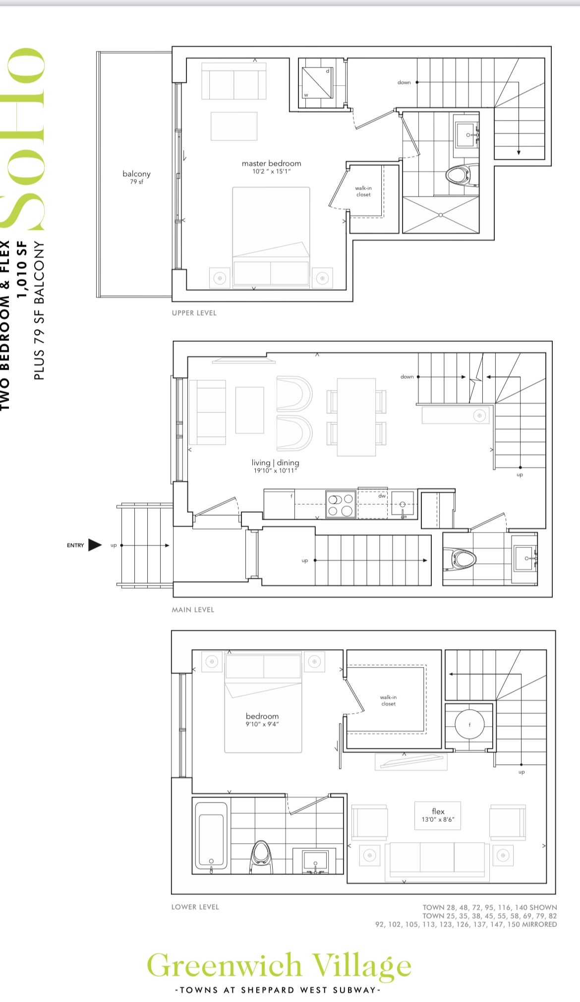 2 bed+den with 3 washrooms--walking distance to sheppard west subway--condo townhouse, "soho model. 1010 sqft of modern luxury. Across 2 floors, balcony, parking & locker. 9 ft ceilings, natural oak staircases, upgraded flooring, european style cabinetry in kitchen & breathtaking bathrooms. Building amenities include indoor amenity space, bike storage, visitor parking. Close to t. T. C, yorkdale, downsview park, allen rd & hwy 401!