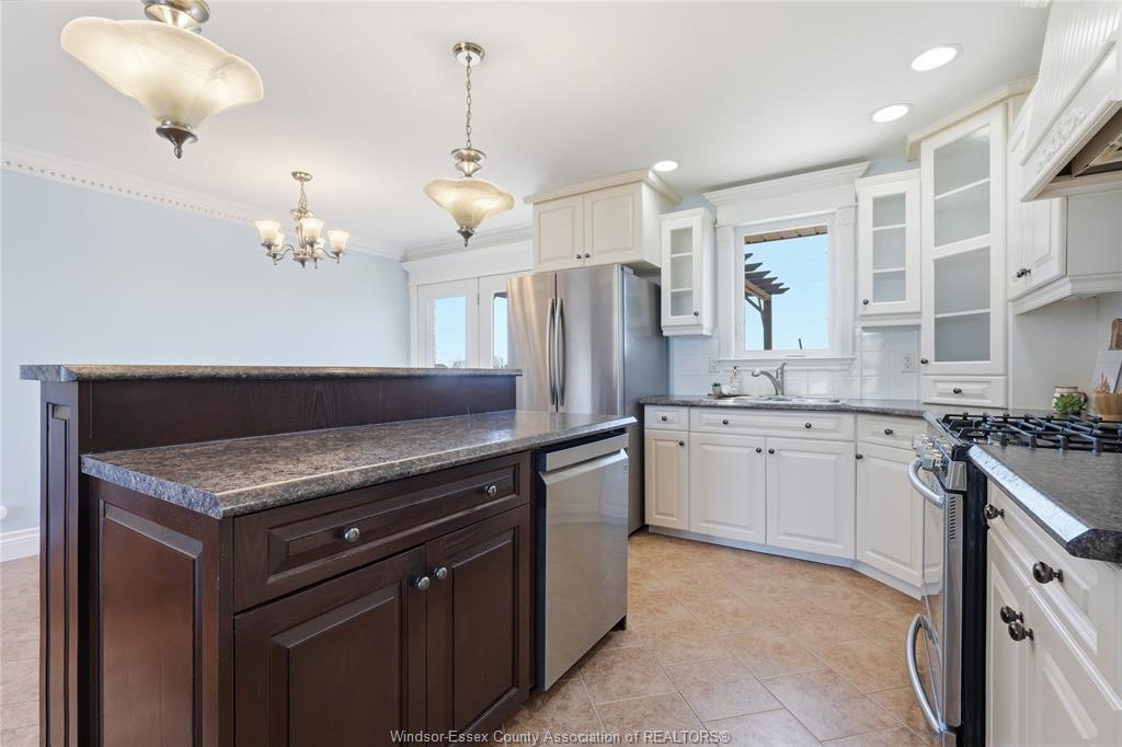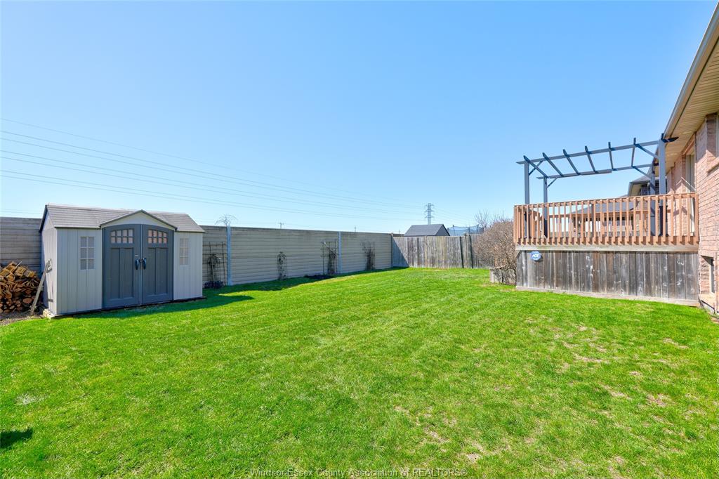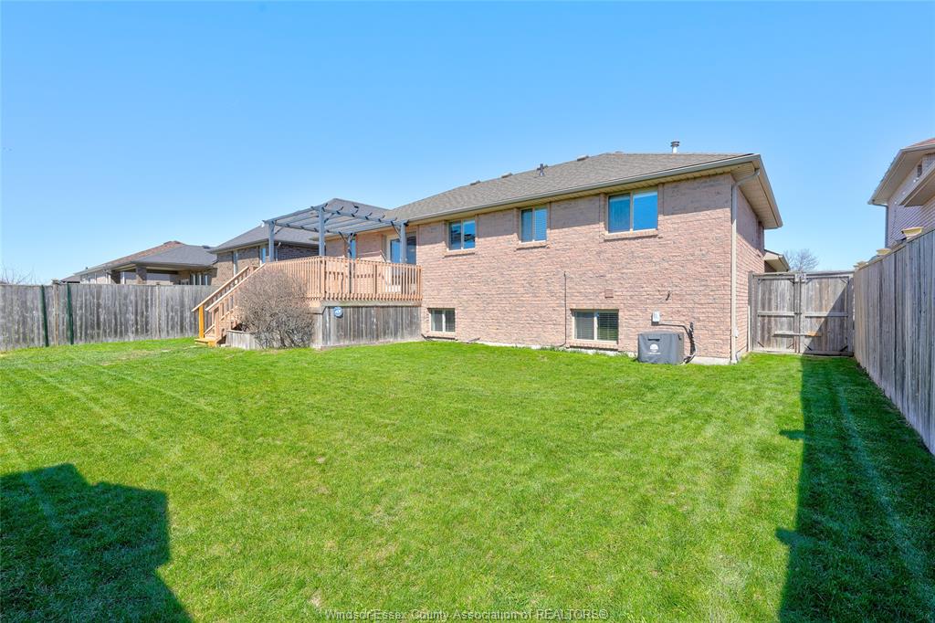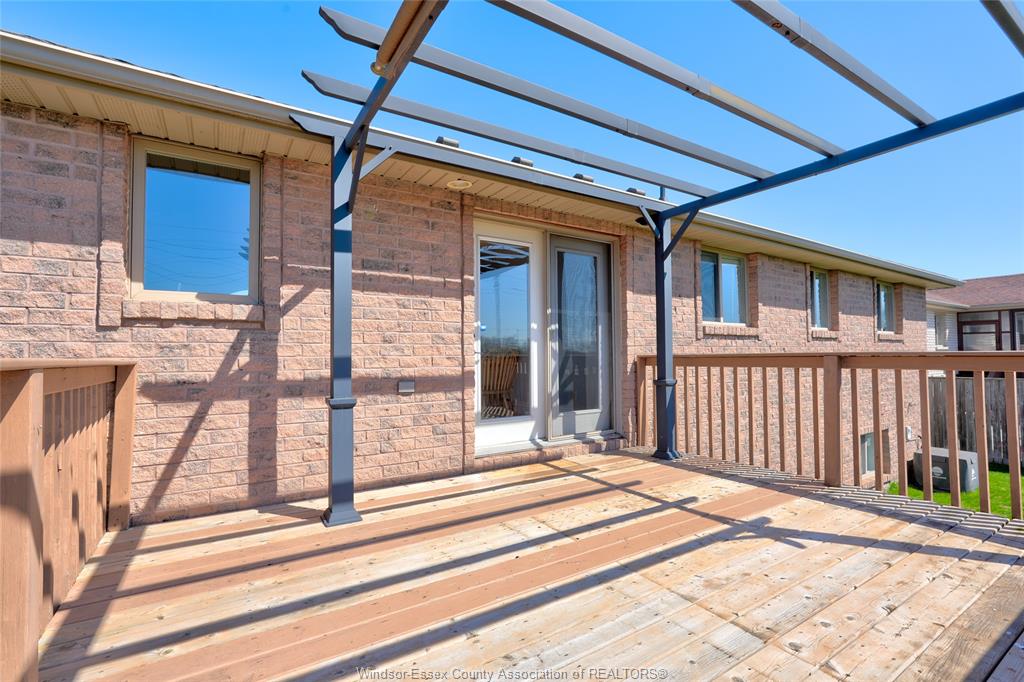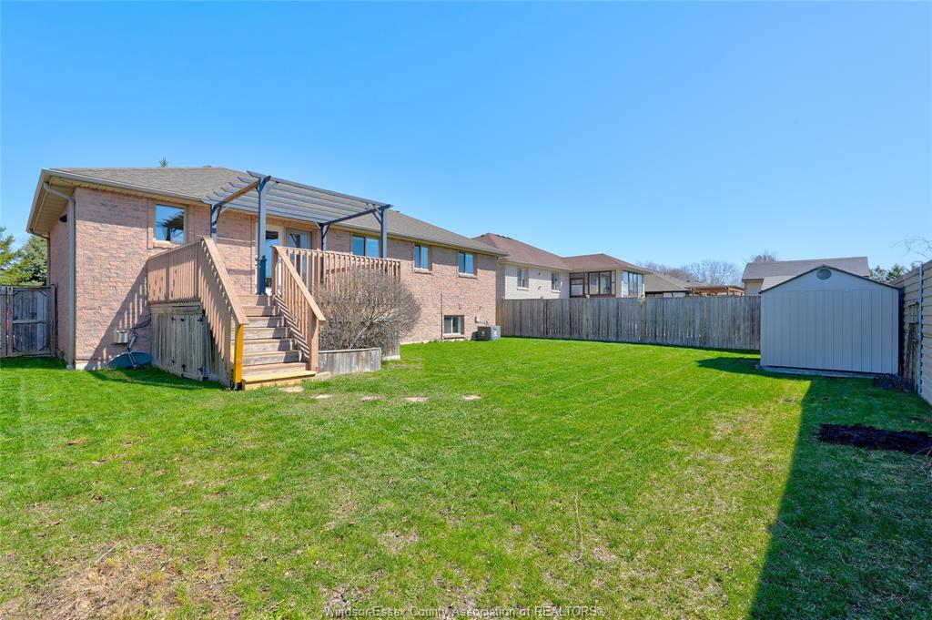 Welcome to this beautifully maintained full brick raised ranch, ideally located in one of belle river’s most desirable neighbourhoods—offering the rare privacy of no rear neighbours and close proximity to the marina, scenic walking trails, local shops, and restaurants. This well-kept home features a bright and inviting eat-in kitchen complete with a center island, stainless steel appliances, and garden doors leading to a spacious backyard—perfect for relaxing or entertaining. The main floor showcases rich hardwood flooring throughout, along with elegant wood trim details, crown moulding, and refined architraves that add timeless character. The primary bedroom includes a 3-piece ensuite highlighted by a luxurious soaker tub, while two additional bedrooms provide ample space for family or guests. The fully finished lower level expands your living space with a generous family room featuring a cozy gas fireplace, a free-standing bar ideal for entertaining, a large fourth bedroom, and a third bathroom. Step outside to enjoy the impressive outdoor setup, including a large deck with storage underneath, a charming pergola, and a convenient storage shed—all within a private, expansive yard. Additional updates include newer shingles, furnace, and air conditioning, offering peace of mind and added value. The home also features an attached two-car garage, providing convenience and ample storage. A perfect blend of comfort, style, and location—this home is ready to impress. Call today for your personal viewing!