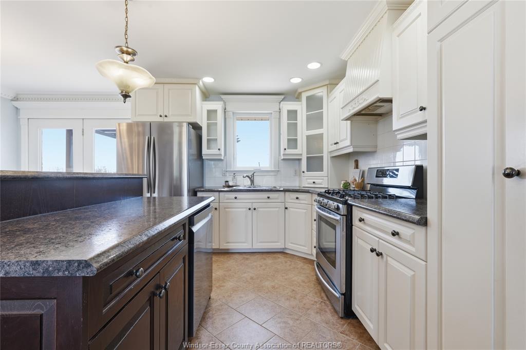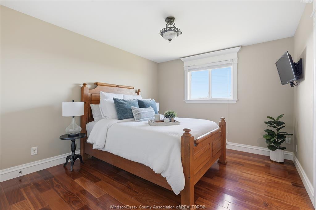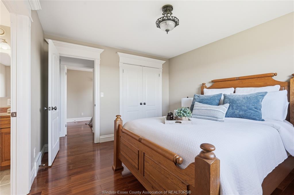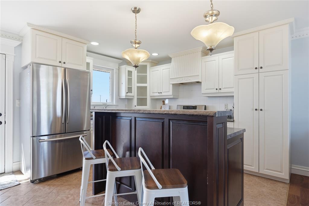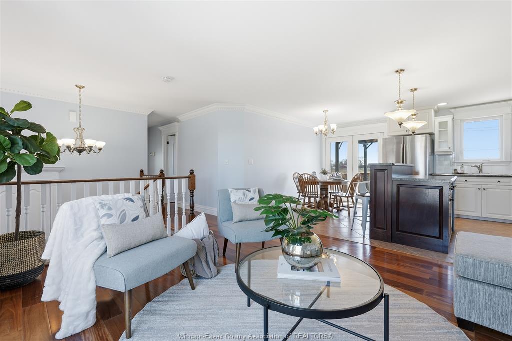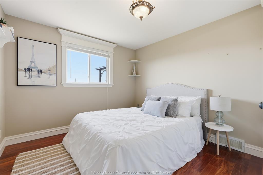 Welcome to this beautifully maintained full brick raised ranch, ideally located in one of belle river’s most desirable neighbourhoods—offering the rare privacy of no rear neighbours and close proximity to the marina, scenic walking trails, local shops, and restaurants. This well-kept home features a bright and inviting eat-in kitchen complete with a center island, stainless steel appliances, and garden doors leading to a spacious backyard—perfect for relaxing or entertaining. The main floor showcases rich hardwood flooring throughout, along with elegant wood trim details, crown moulding, and refined architraves that add timeless character. The primary bedroom includes a 3-piece ensuite highlighted by a luxurious soaker tub, while two additional bedrooms provide ample space for family or guests. The fully finished lower level expands your living space with a generous family room featuring a cozy gas fireplace, a free-standing bar ideal for entertaining, a large fourth bedroom, and a third bathroom. Step outside to enjoy the impressive outdoor setup, including a large deck with storage underneath, a charming pergola, and a convenient storage shed—all within a private, expansive yard. Additional updates include newer shingles, furnace, and air conditioning, offering peace of mind and added value. The home also features an attached two-car garage, providing convenience and ample storage. A perfect blend of comfort, style, and location—this home is ready to impress. Call today for your personal viewing!