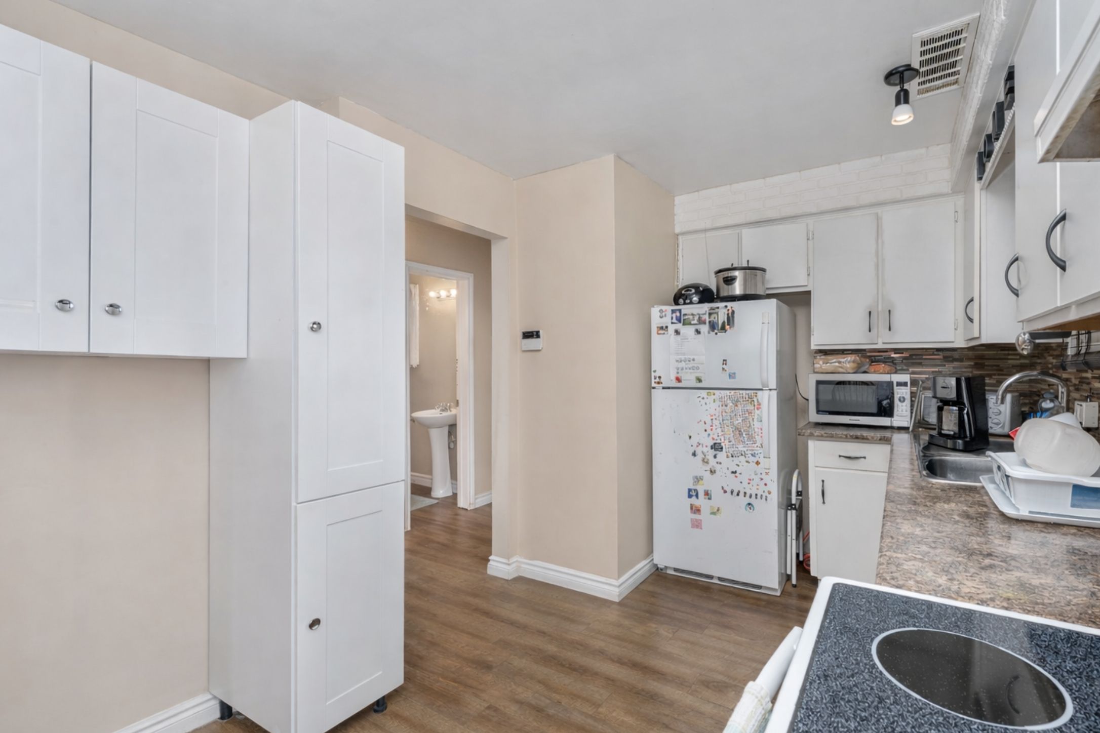 Impressive 22' x 18' insulated shop with added storage spaces, a true rare find! Built approx. 2010, this versatile shop includes 2 added storage spaces plus attic storage, offering endless flexibility for hobbies, vehicles, entertaining, or organized storage. The outdoor living here is truly an extension of the home. Picture warm summer evenings spent on the expansive 20' x 16' deck, relaxing under the gazebo while the landscaped campfire area glows in the background. Designed for versatility, the campfire space also accommodates a 12-ft pool with play sand beneath the landscape stone, giving you flexibility for both entertaining and family fun. Just set up your yard games or cornhole and enjoy! Imagine the shop door open, music playing, the fire crackling, and friends and family gathered, this backyard is made for making memories all season long. Step inside to a thoughtfully designed kitchen perfectly positioned to overlook the backyard, enjoy views from the sink and easy access through patio doors that open directly to your outdoor living space. The main floor features a cozy living room along with a convenient 2 pc bathroom. Upstairs, are 3 bedrooms and a thoughtfully designed full bathroom with cheater ensuite access. The smart layout separates the sink from the shower and toilet area, allowing for private, efficient use and busy mornings. The finished basement adds even more living space with a spacious rec room complete with built-in sound system (just connect your speakers!). Laundry and storage area plus a bonus room with sink connected offering versatility. Move-in ready with an insulated shop, a backyard designed for entertaining, and a great location close to parks, schools, and everyday amenities. Hwt is a rental.