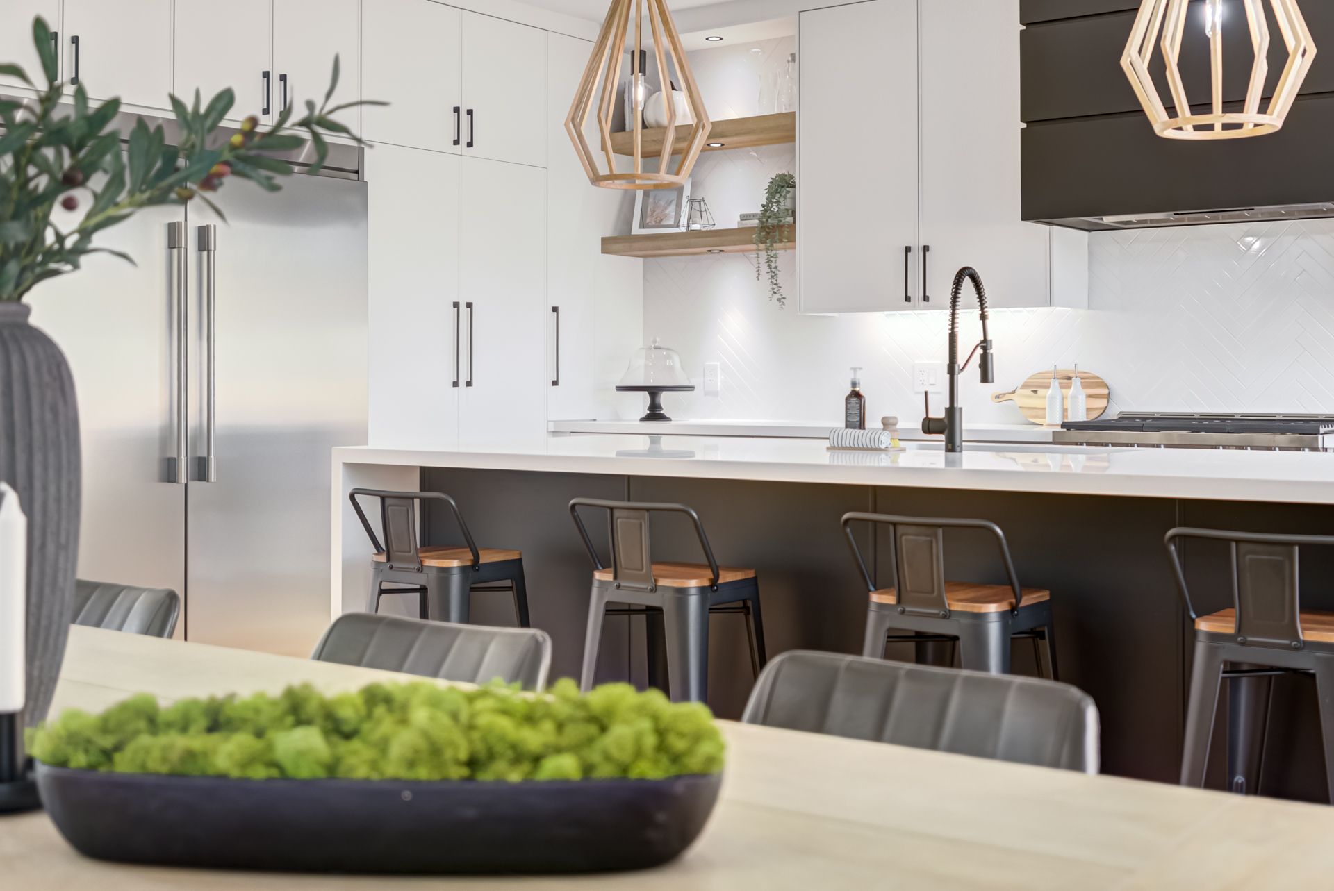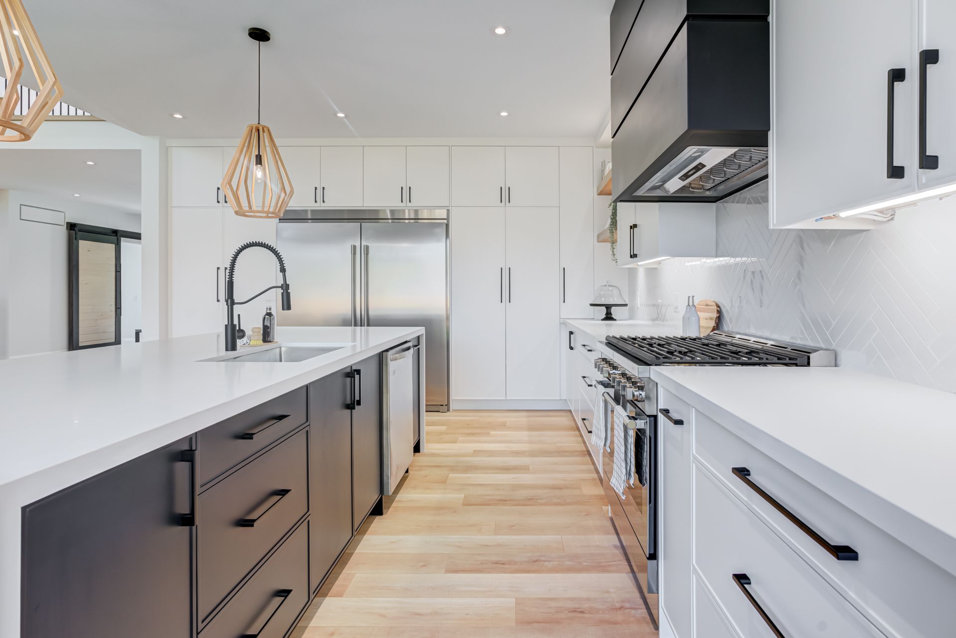 • Custom chef's kitchen with oversized waterfall island.