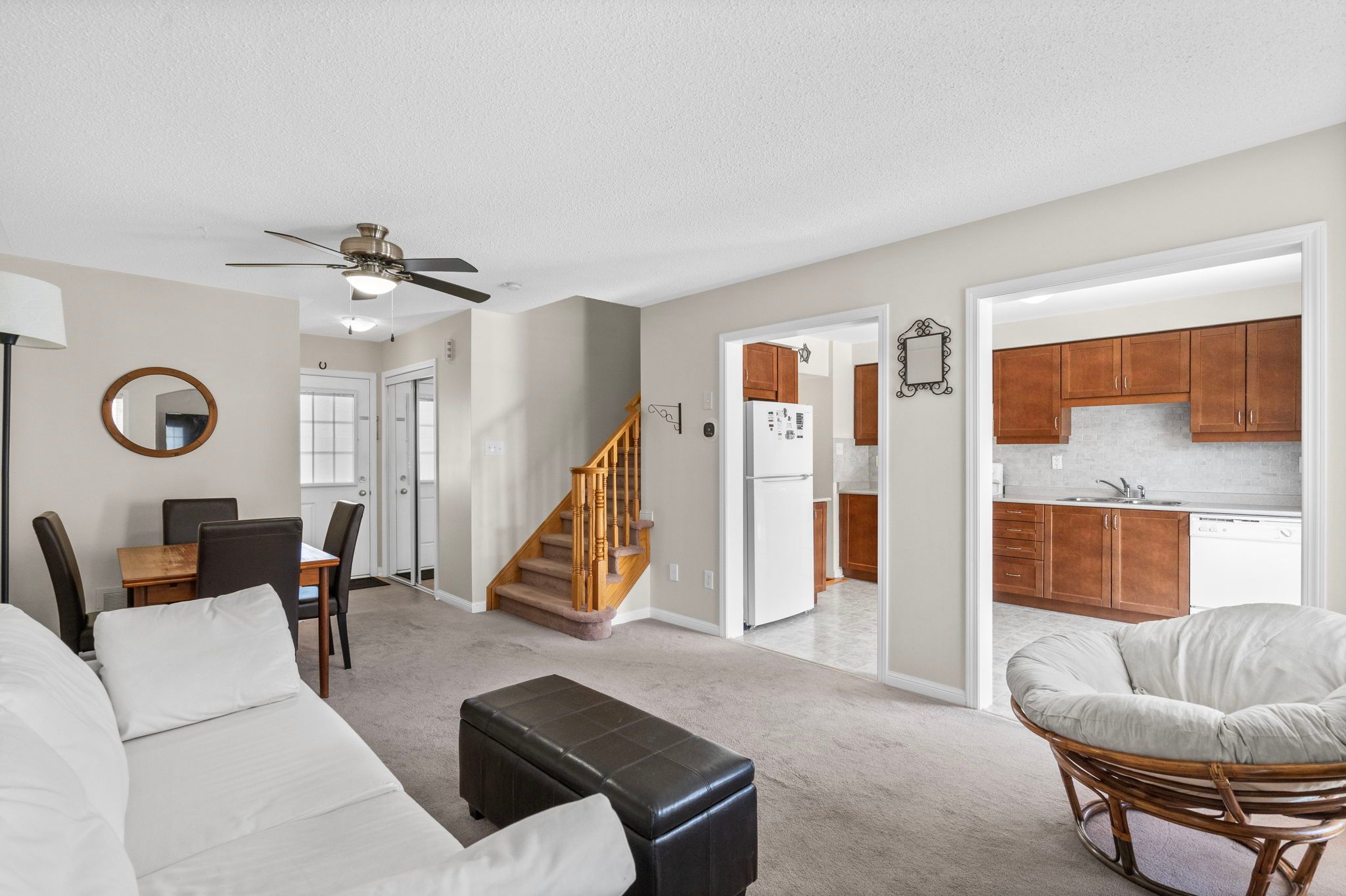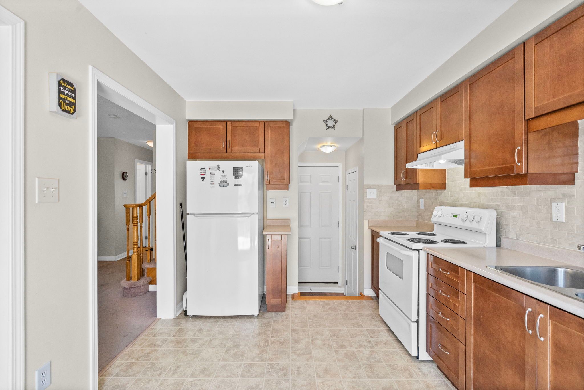 Mattamy brannan model offering nearly 1,400 sq ft of finished living space including a finished basement. Freehold home with no condo fees. Open concept main level with gas fireplace and kitchen backsplash. Three bedrooms and full bathroom on the upper level. Finished basement provides additional living space for family room, office, or gym. Private fenced backyard with wood deck and perennial gardens. Covered and recessed front porch. Well-loved home on a quiet, low-traffic street with walking trail at the end. Short walk to metro, freshco, starbucks, tim hortons, shoppers drug mart and dozens of restaurants. Elementary school approximately 8 minute walk away. Affordable entry into the milton market.