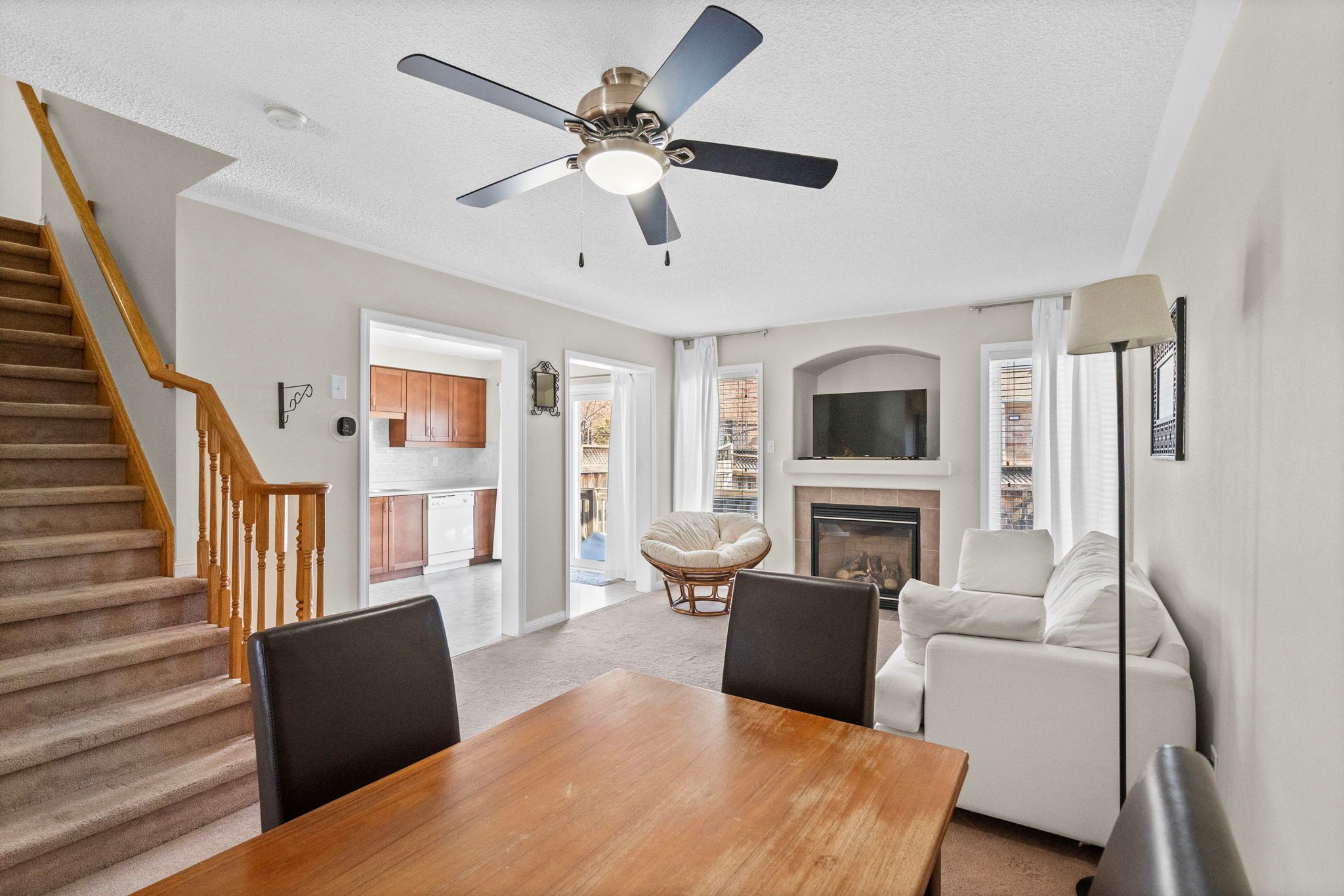 • Open concept main level with a cozy gas fireplace.