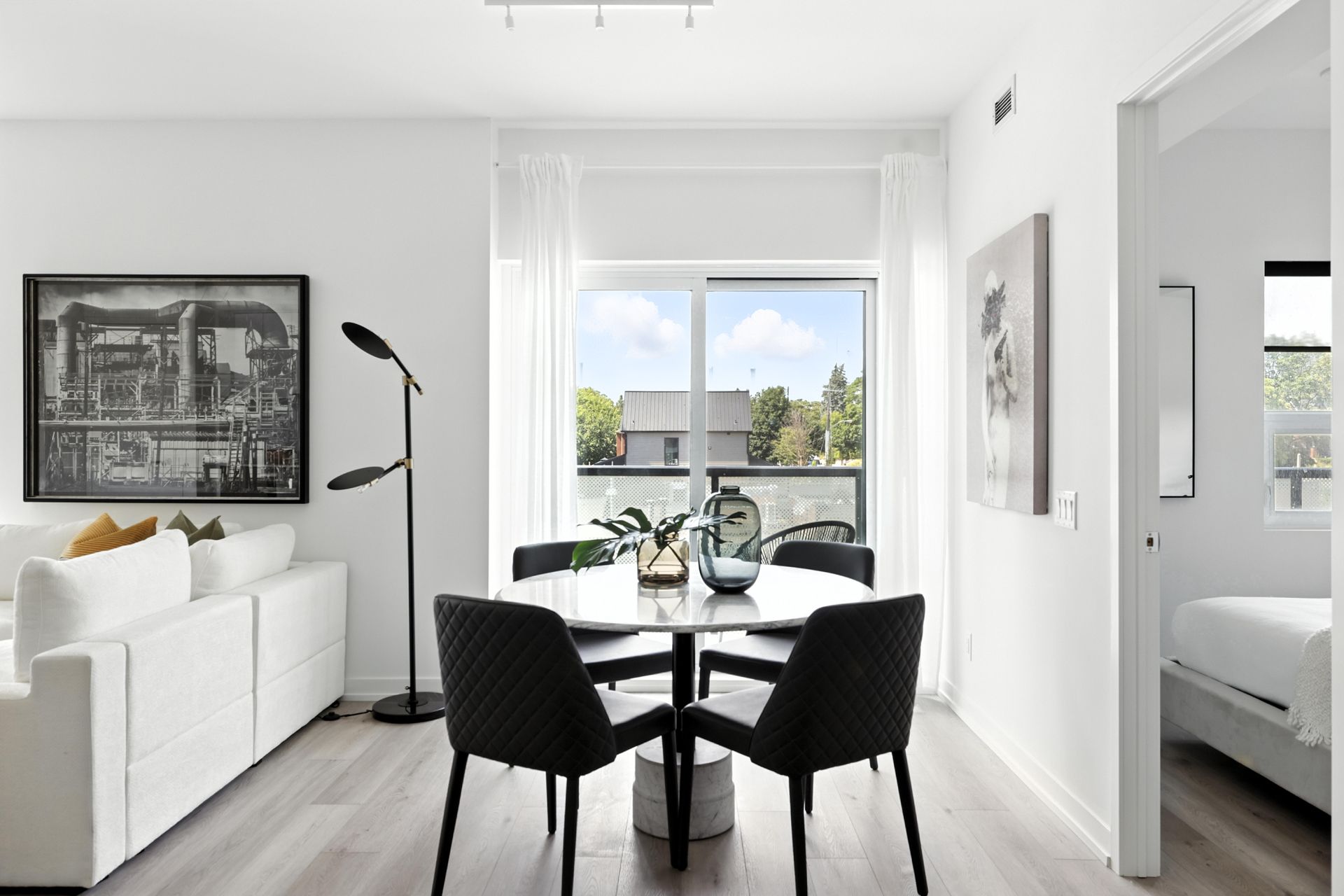 • Private balconies offer peaceful views of greenery and the neighborhood.