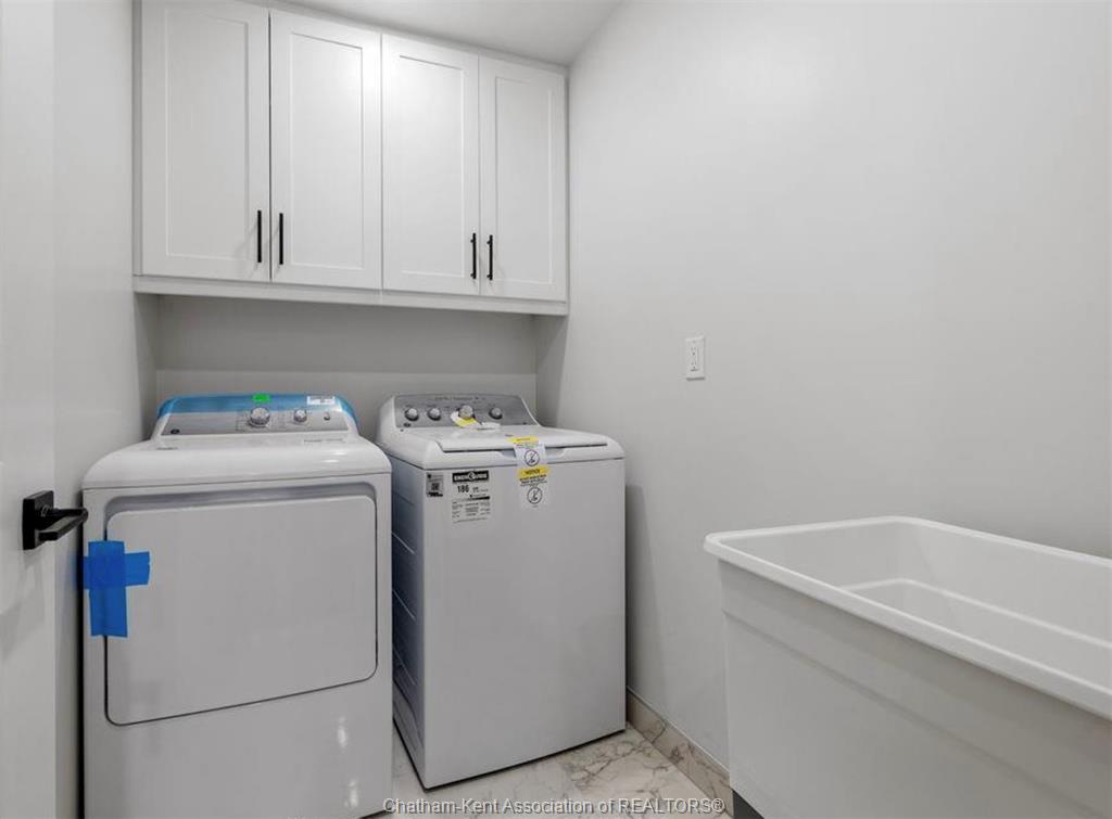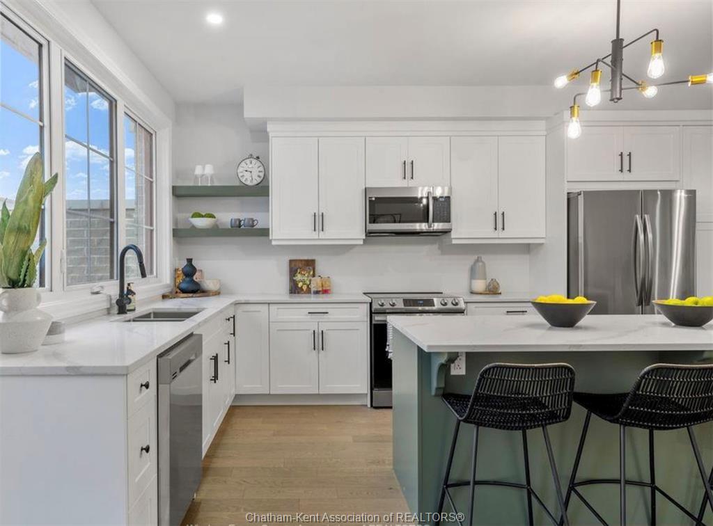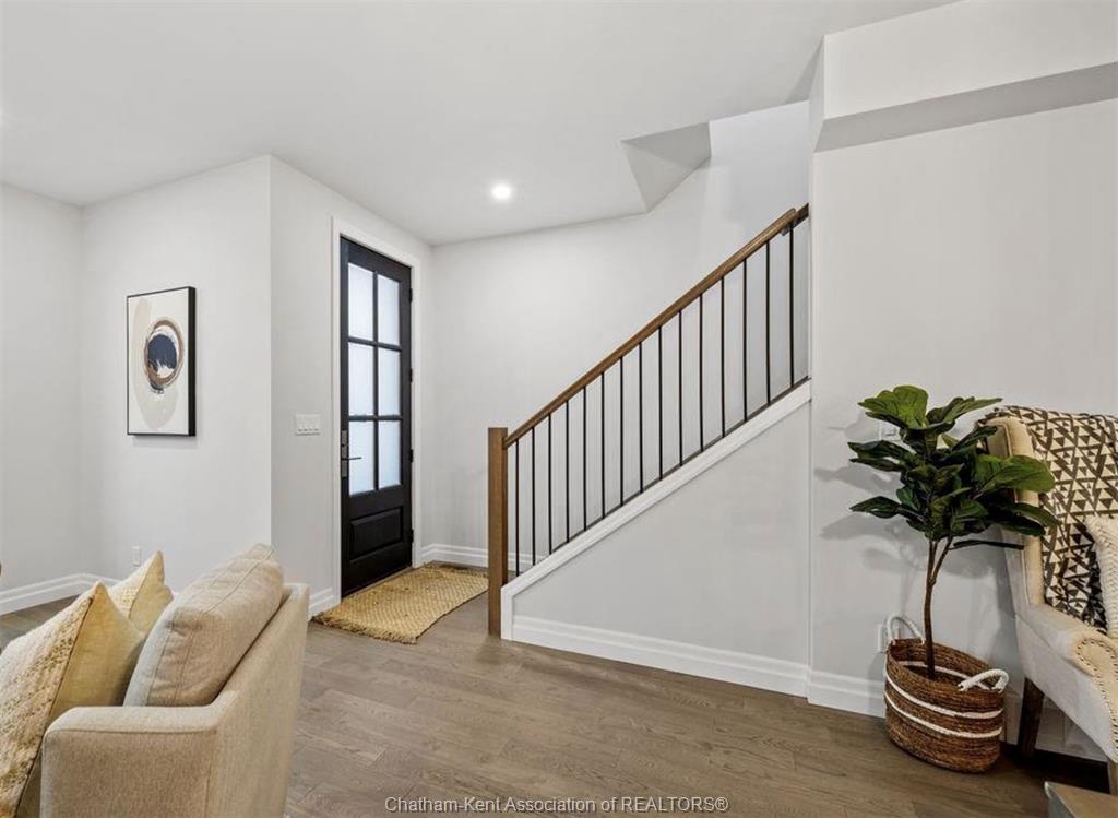 Built in 2023, this modern move-in-ready townhome offers approximately 1,800 sq ft of stylish, low-maintenance living. Featuring 3 bedrooms and 2. 5 baths, all bedrooms are conveniently located on the upper level, including a spacious primary suite with walk-in closet and private ensuite. The main floor showcases engineered hardwood flooring, quartz countertops, a beautiful kitchen, and stainless steel appliances. Enjoy a private enclosed 17’ x 22’ concrete courtyard, perfect for outdoor relaxation without the upkeep of a traditional yard. The unfinished basement provides excellent potential for additional living space, gym, or storage. Detached single-car garage plus a double-wide driveway with parking for up to 6 vehicles. Ideally located with quick access to highway 401 in a quiet suburban setting, this home is perfect for buyers seeking luxury, flexibility, and easy living. Images shown are from a similar model unit and are intended to illustrate layout only; finishes, fixtures, and staging may vary from the subject property