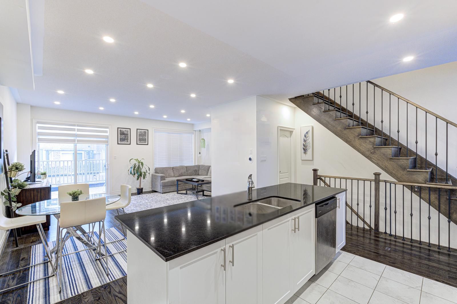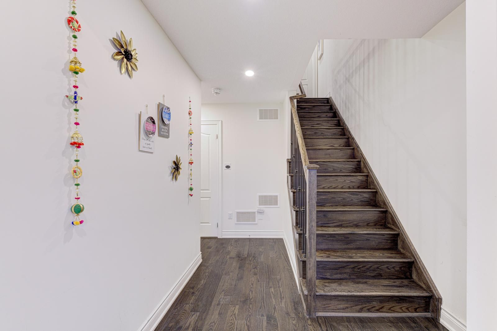 This executive freehold townhouse with a rare 2-car garage is located in the highly sought-after bram west neighbourhood and offers approximately 2,250 sq ft of beautifully designed living space. Featuring 5+1 spacious bedrooms and 4 washrooms, this home is perfect for growing families. The open-concept layout with 9-ft ceilings on the second level creates a bright and airy atmosphere, seamlessly blending comfort and functionality. The spacious living and dining areas feature elegant hardwood flooring and a walkout to a large balcony-perfect for entertaining. Upgraded oak stairs with iron pickets add a touch of sophistication, while pot lights throughout enhance the modern appeal. The second level also offers a cozy family room and a versatile den, ideal for a home office or study space. The modern kitchen is equipped with stainless steel appliances, granite countertops, and a centre island-perfect for both everyday living and hosting. A professionally finished walk-out main level with a separate entrance provides exceptional flexibility, offering excellent potential for an in-law suite or rental income opportunity. The primary bedroom features a 4-piece ensuite and a walk-in closet, complemented by three additional generously sized bedrooms. Ideally located close to top-rated schools, parks, golf courses, shopping, and major amenities, with convenient access to highways 401 & 407 and meadowvale go station. This is a rare opportunity to own in one of brampton's most desirable communities.