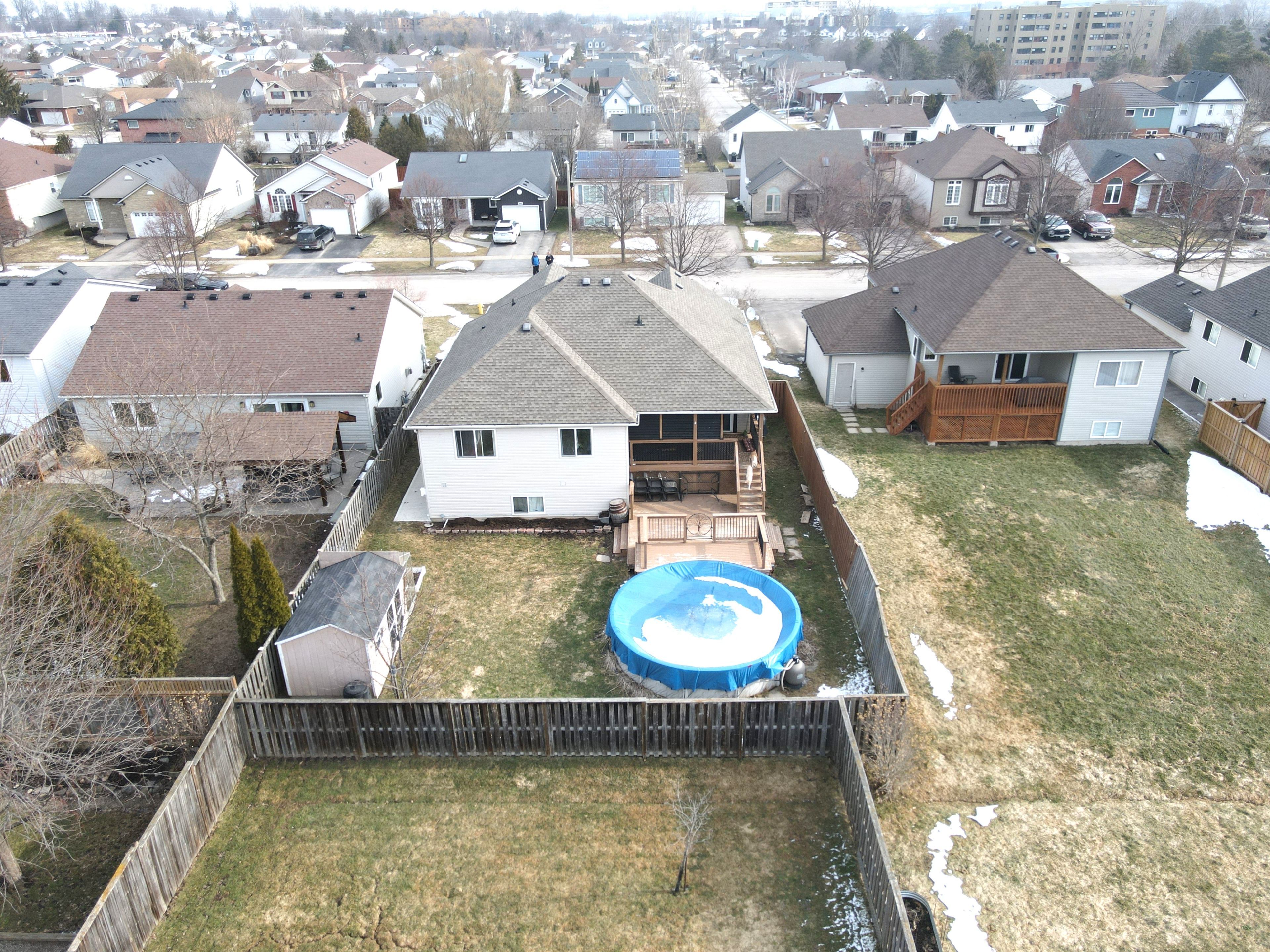 • Well-equipped backyard with an above-ground pool and fenced area.