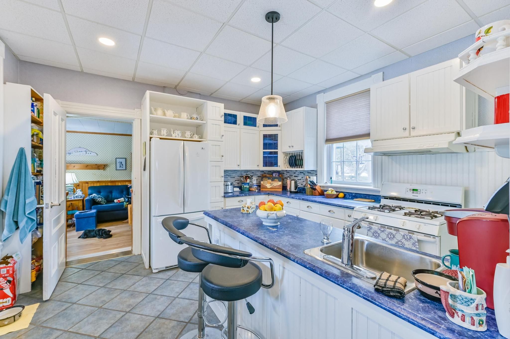 • Main floor family room with a cozy gas stove.