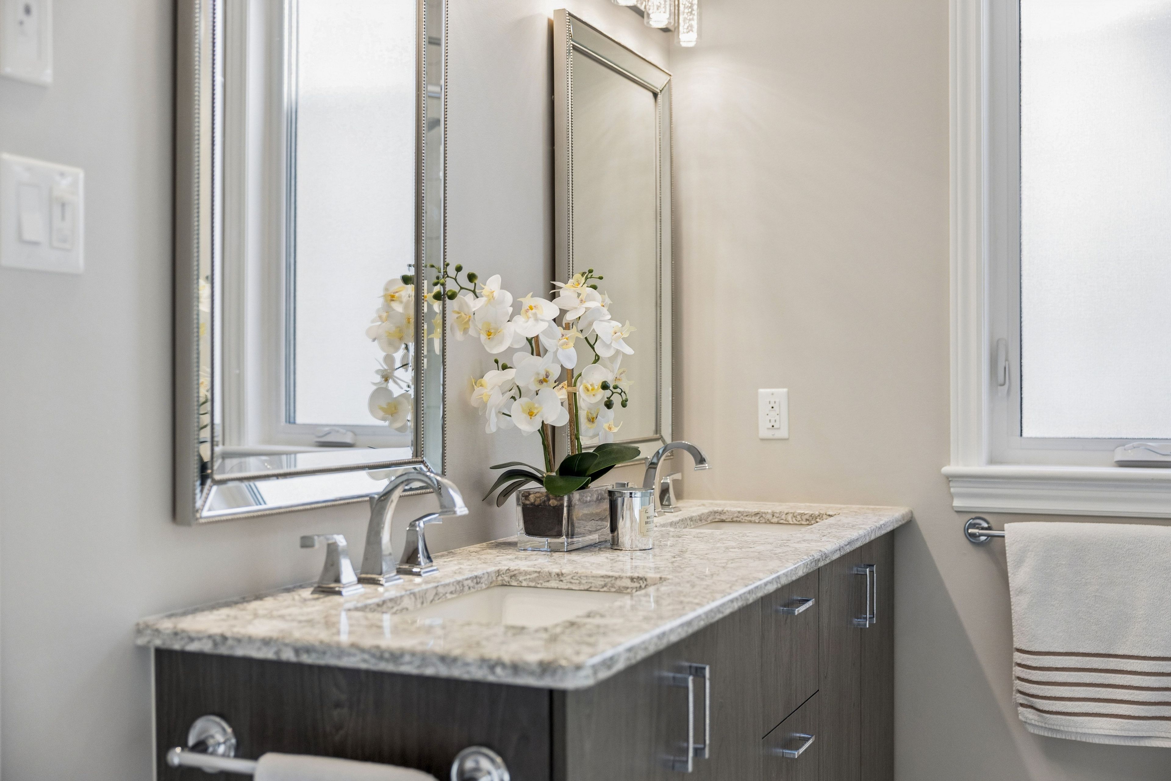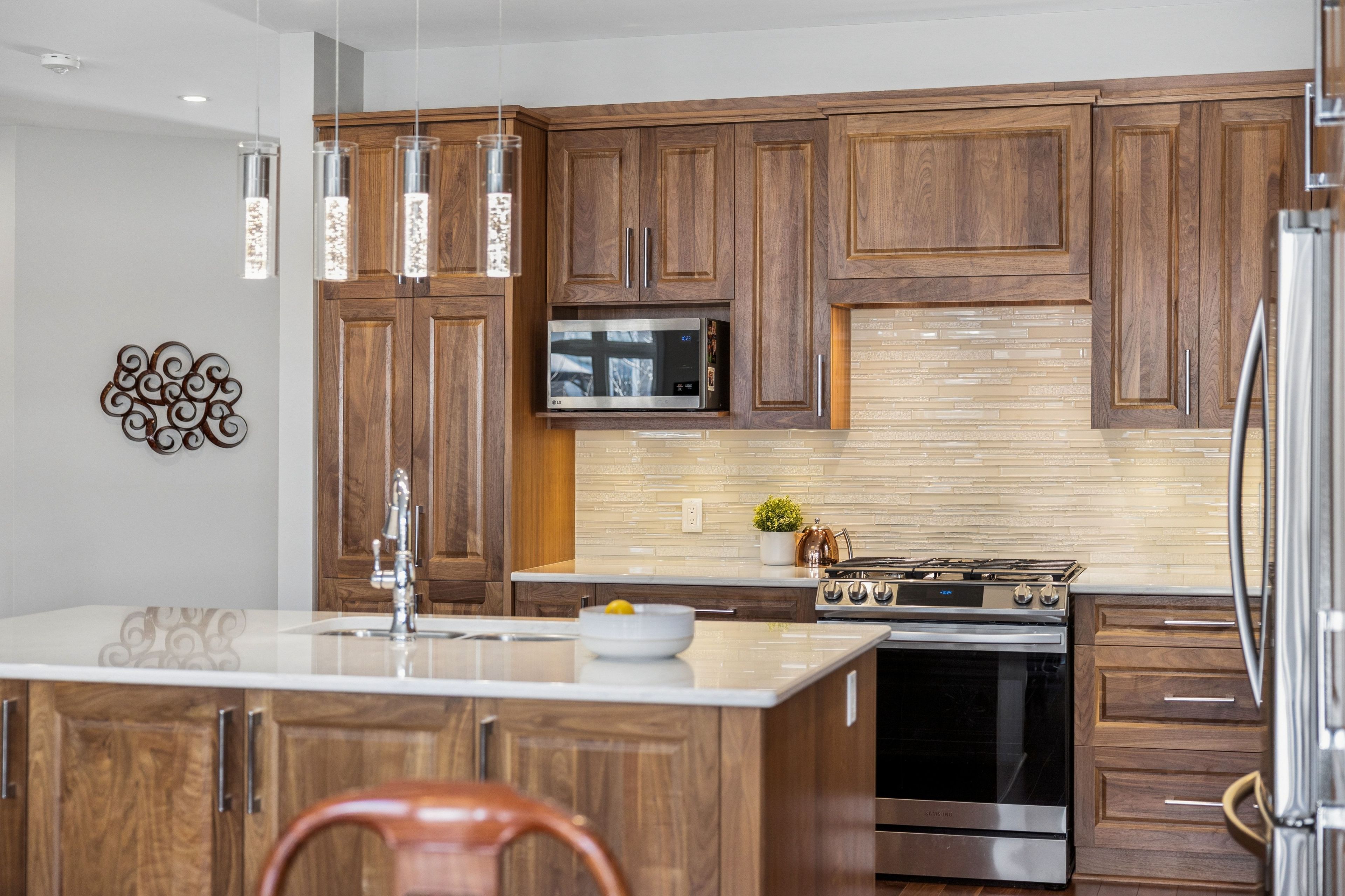 • Modern kitchen with upgraded cabinetry, quartz countertops, and spacious island.