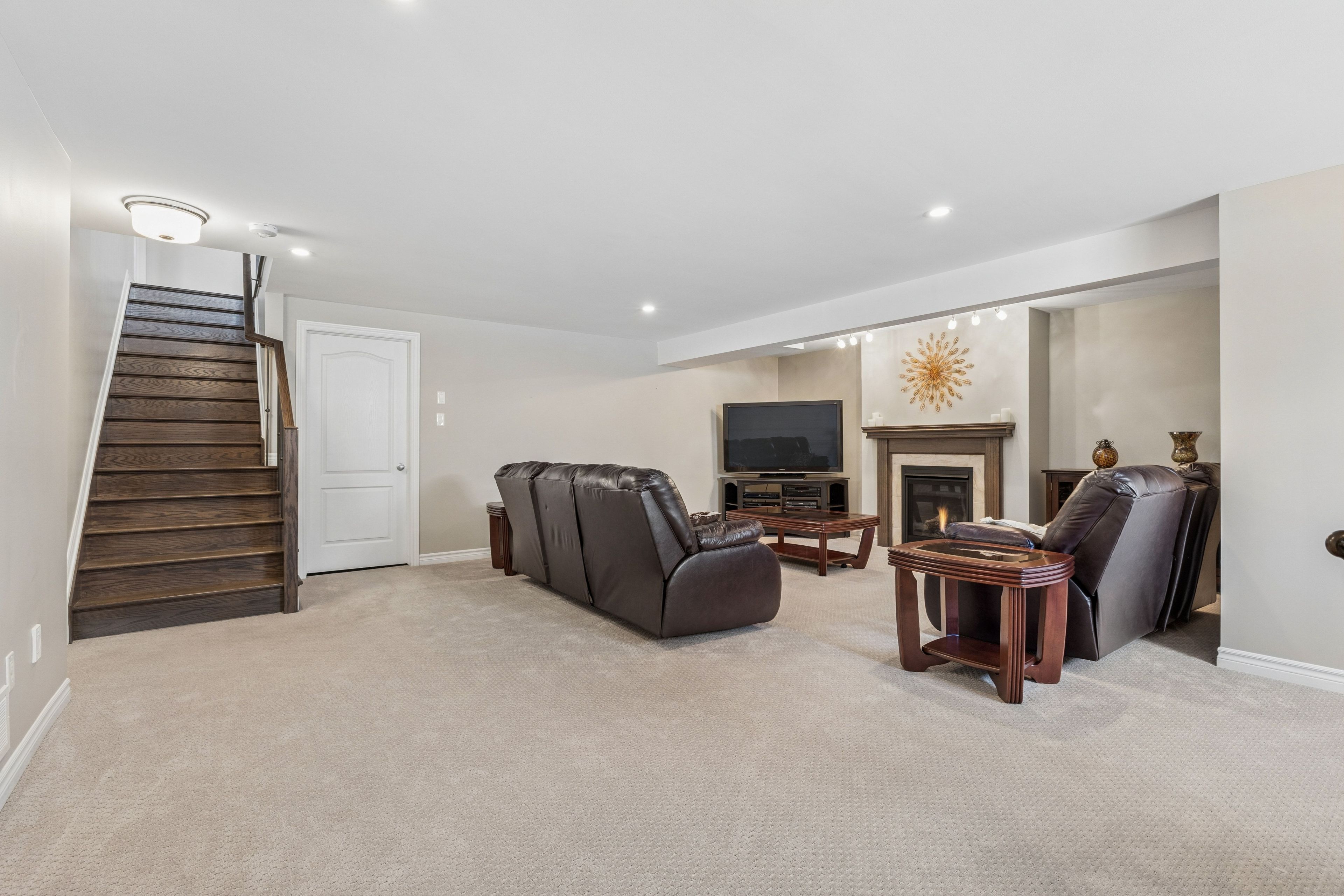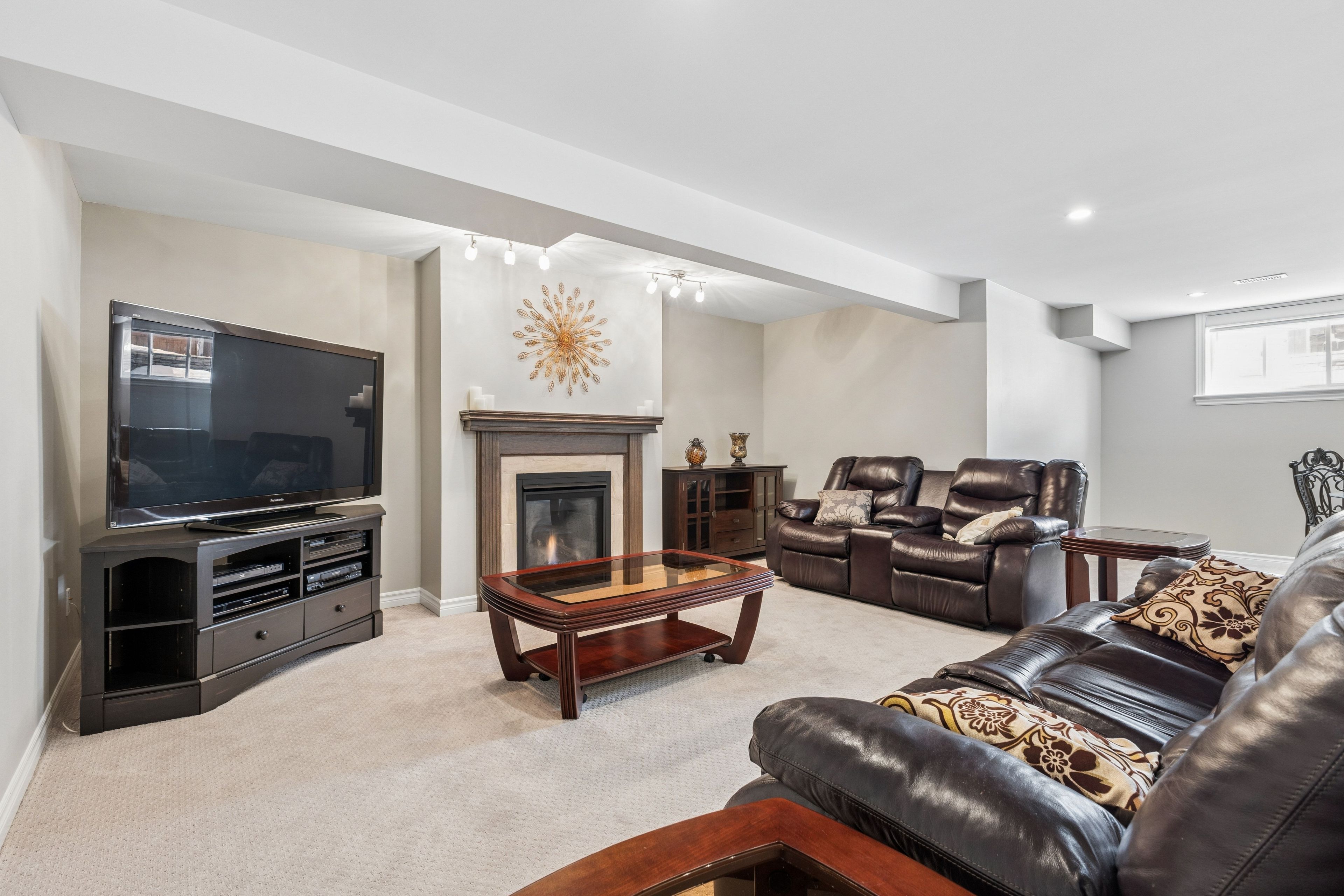 • Finished basement with cozy gas fireplace, extra bedroom, and full bath.