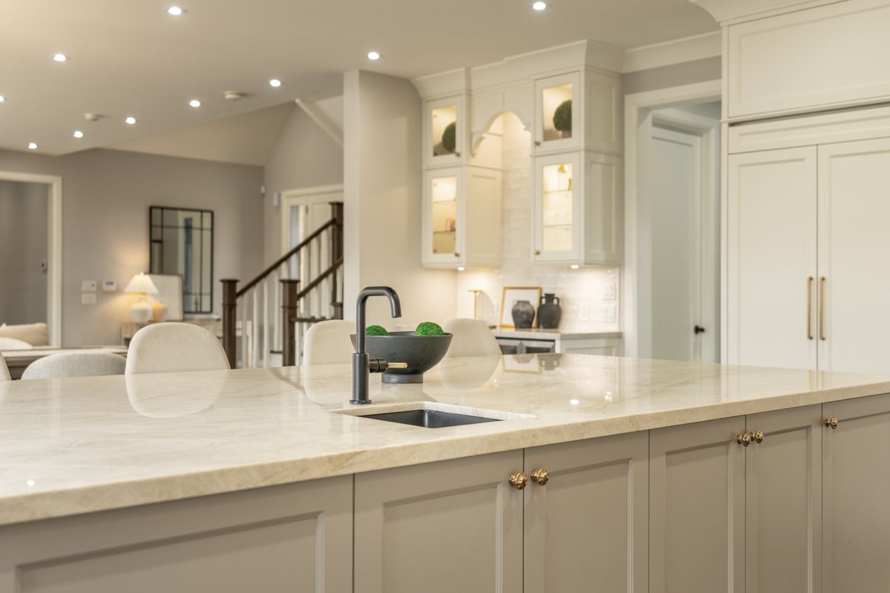 • Impressive kitchen with quartzite countertops and premium integrated appliances.