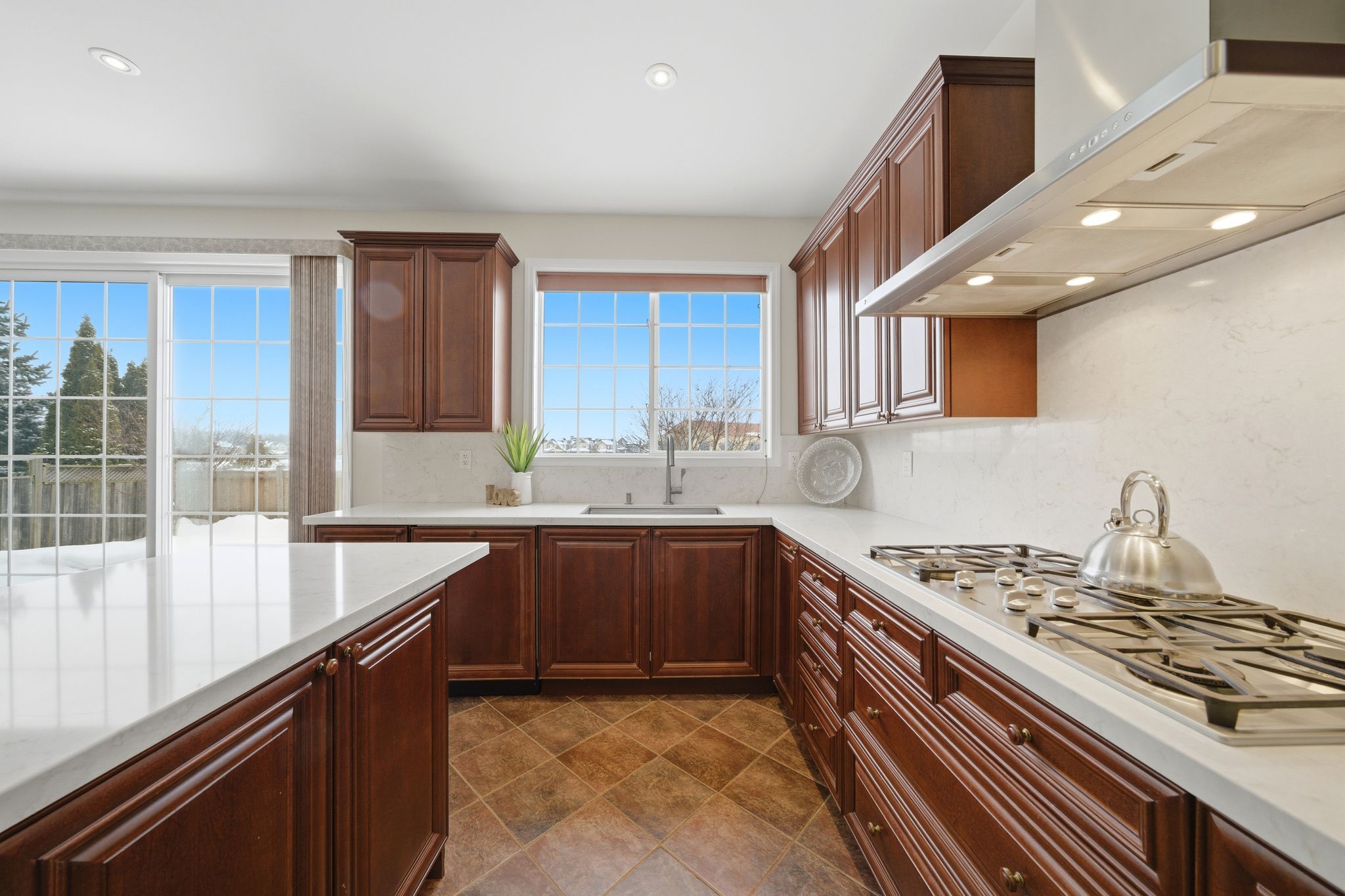 First time offered! Meticulously maintained by the original owner, this 4+1 bedroom home sits on a quiet street with no rear neighbours in one of milton's most desirable neighbourhoods. Highlighted by a fully renovated chef's inspired kitchen with custom solid wood cabinetry and high-end stainless appliances, while offering exceptional functionality paired with generous living space. The upper floor provides 4 spacious bedrooms complimented by an additional office or cozy nook, ideal for remote work, study space, or quiet reading corner. Owned furnace, ac, tankless hot water heater, water softener, hrv, and built-in lawn irrigation, makes this home a top choice on any buyer's list. The newer steel roof with topped up insulation includes a transferable lifetime manufacturer warranty for added peace of mind. The private fully fenced-in backyard is accented with stamped concrete, creating an ideal setting for outdoor dining and entertainment. Situated close to parks, splash pads, bike trails, schools, shopping, and transit; this home blends all of the comforts, quality, and convenience that a buyer is searching for, all in one wonderful family friendly community.