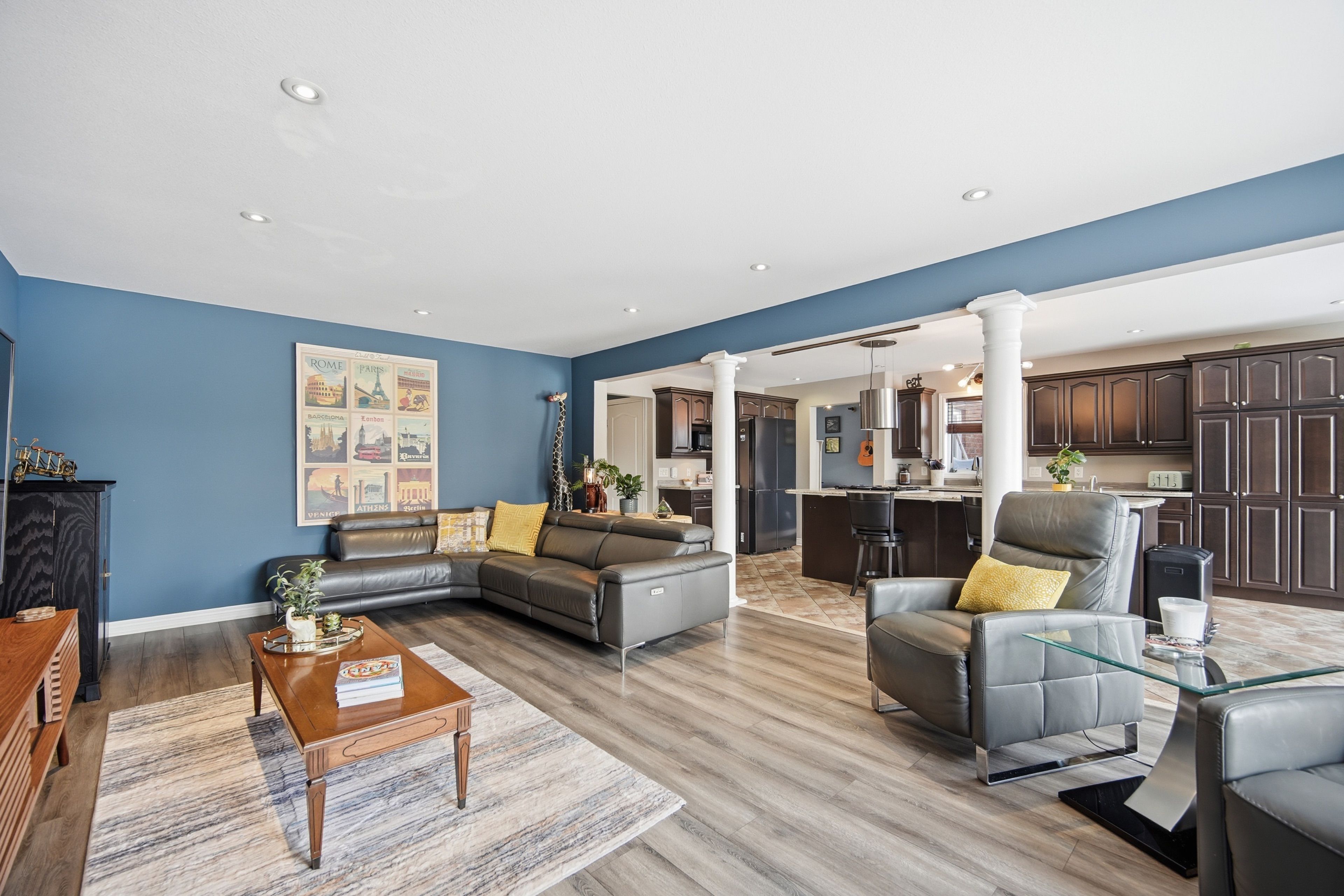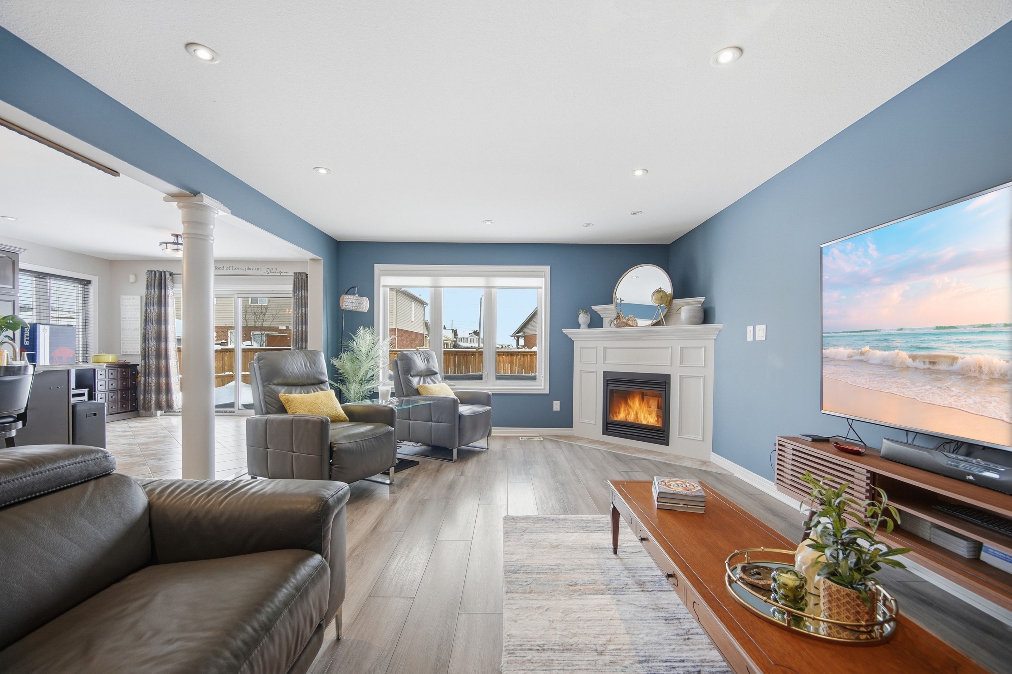 Located in the desirable forestview community, this impressive two-storey residence blends refined finishes with functional family living. A striking foyer sets the tone, opening to a main level designed for both lively gatherings & everyday comfort! The custom chef's kitchen anchors the home, complete w/ granite countertops, an oversized island w/ seating, a sun-filled dining area, and seamless access to the backyard retreat! Adjacent living spaces offer flexibility - from cozy evenings by the fireplace, to hosting formal dinners & special celebrations. The upper-level features three generously sized bedrooms; highlighted by a tranquil primary suite - spa-inspired 5-piece ensuite & an expansive walk-in closet. Two additional bedrooms & a full bath complete this family-friendly floor plan. Downstairs, the fully finished basement delivers exceptional versatility w/ potential for an in-law suite or the ultimate entertainment zone! Enjoy a spacious recreation area, a dedicated man-cave w/ wet bar, fridge, and oven, a 2-piece bathroom, & a hidden bonus room ideal for a gym, office, or guest space. Step outside to a low-maintenance backyard built for summer enjoyment, showcasing a heated in-ground pool, ample lounging space - the perfect setup for outdoor entertaining! Parking is a breeze w/ a double attached garage & a rare triple-wide driveway accommodating up to five vehicles. Notable updates include pool liner (2022), pool heater (2023), shingles with transferable warranty (2024), heat pump (2023), and furnace (2023). Conveniently located near major shopping, golf courses, community amenities, the new hospital, and quick qew access, this move-in-ready home delivers space, comfort, and lifestyle in one exceptional package!