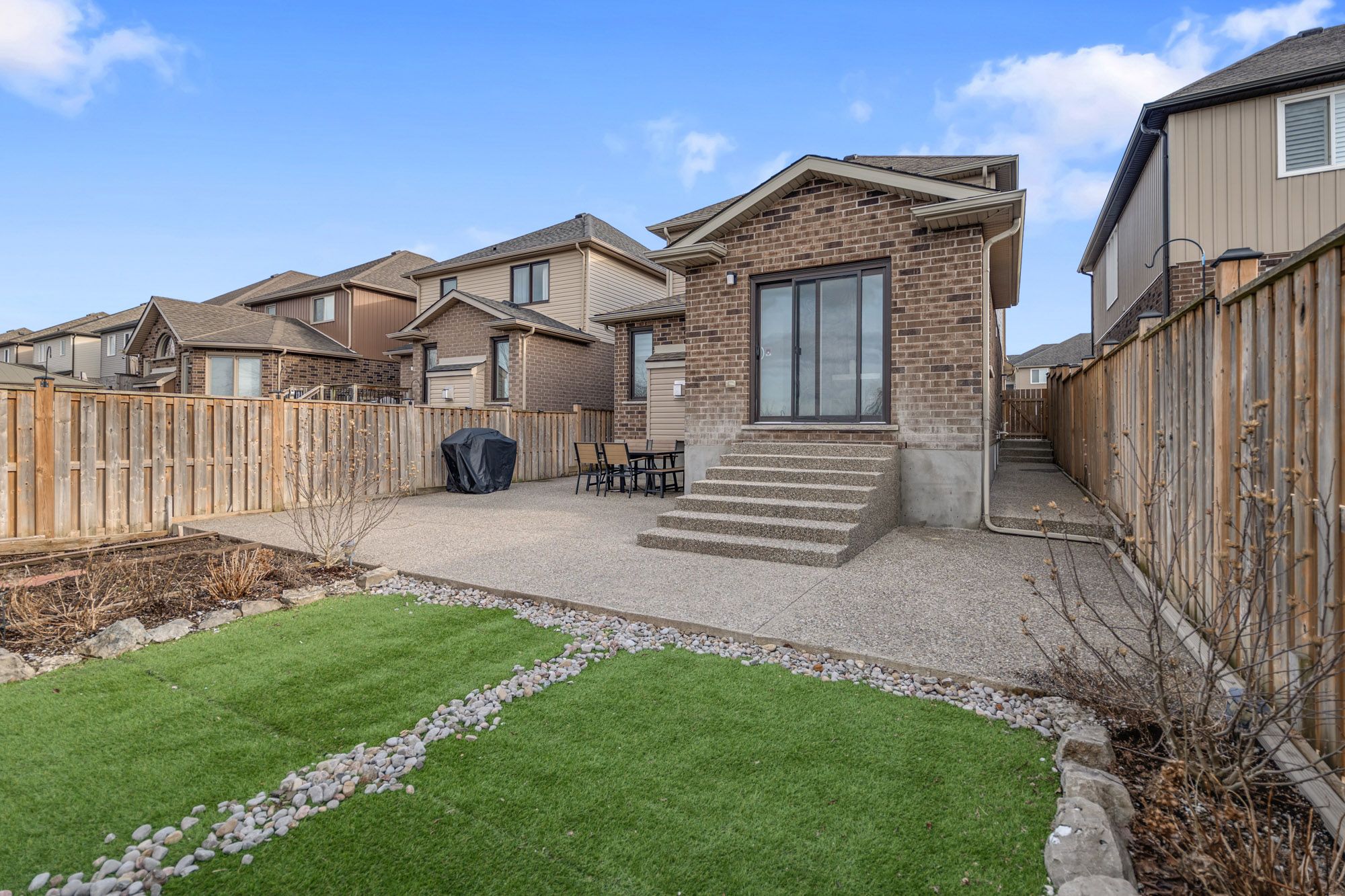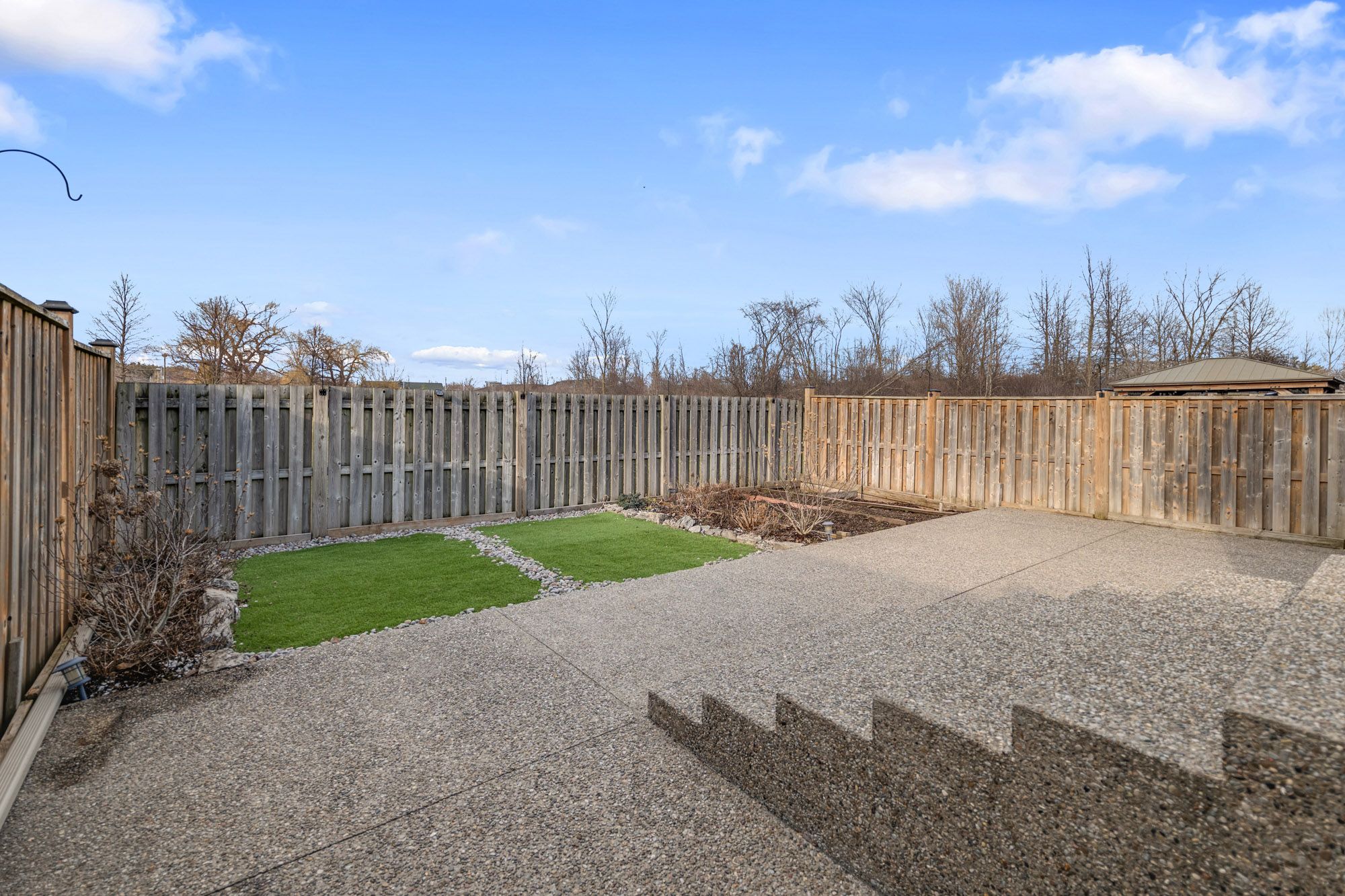 • Fully fenced low-maintenance backyard with turf and large concrete patio.