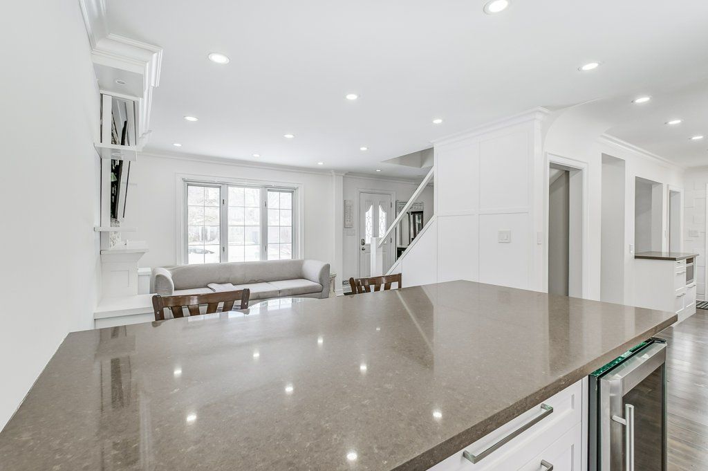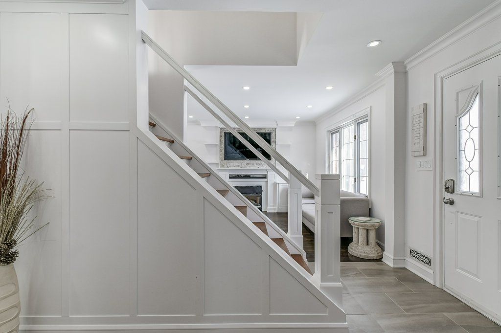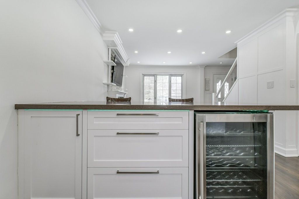 Discover your dream home in applewood acres and all the luxurious amenities! Sleek stainless steel fridge, stove, and dishwasher; elegant kitchen under-mount sink and ceramic backsplash; modern kitchen cabinets with a built-in microwave in the island; convenient kitchen coffee bar/wine bar with additional peninsula open to living room with built in wine fridge; cozy kitchen window sitting ledge and spacious pantry; warm living room with a gas fireplace and custom built mantel; wall-mounted tv with built-in led mood lights above the fireplace; sophisticated crown moulding in both the living and dining rooms; main floor foyer with a stylish ceramic entrance; dining room featuring hardwood floors and led mood lights built into the recessed crown moulding. Primary bedroom with a generous walk-in closet. Enjoy the added convenience of a separate side entrance leading to the backyard, perfect for entertaining or relaxation. Experience the perfect blend of style and functionality in this stunning home!