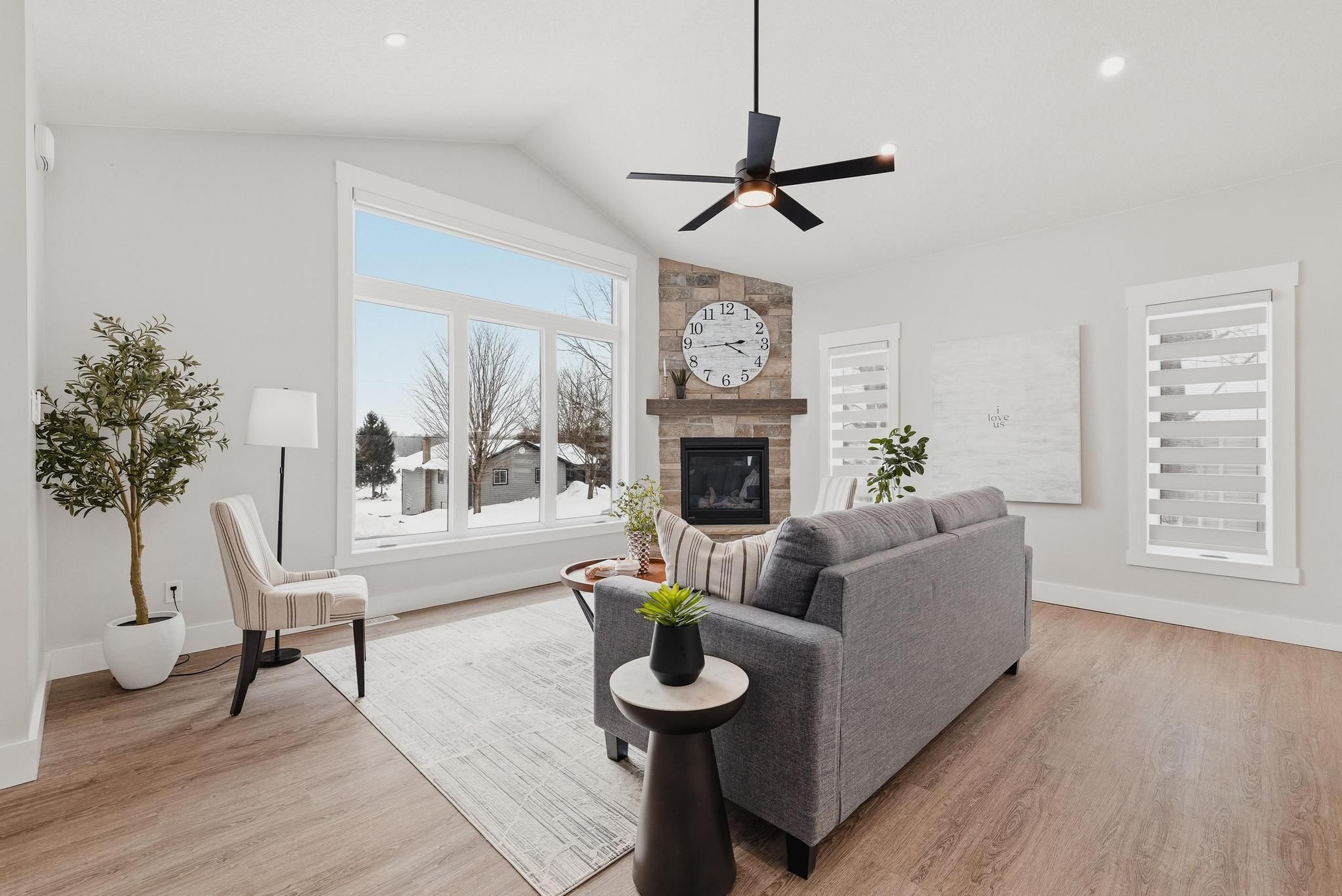 Space to grow, room to breathe, and a shop that dreams are made of. Built in 2022 and located just a short drive to listowel, this purpose built bungalow offers the perfect blend of modern design, practical features, and flexibility for today's busy families or hobby enthusiasts. Step inside to soaring 9' ceilings and a vaulted living room anchored by a cozy fireplace, creating a bright and welcoming heart of the home. The open concept layout spans approximately over 2700 square feet, thoughtfully designed for both everyday living and effortless entertaining. A beautiful kitchen showcases quartz countertops, a large island perfect for gathering, a corner pantry, and abundant cabinetry to keep everything organized. With two bedrooms on the main floor and two additional bedrooms in the fully finished basement, there is space here for growing families, guests, or even a dedicated home office. The basement is elevated by extra wide hardwood stairs and a generous rec room ready for movie nights, play space, or hosting friends. Function meets convenience with a mudroom and laundry combination just off the attached two car garage, plus built-in cabinets and closet organizers throughout the home to simplify daily life. And then there is the showstopper... A detached 30' x 50' shop that opens the door to endless possibilities. Fully insulated with pvc walls, water service, a separate electrical panel, small mezzanine for added storage, and an impressive 14' high by 12' wide overhead door, it is ideal for hobbyists, entrepreneurs, vehicle storage, or anyone craving serious workspace. Modern construction, exceptional storage, and the kind of square footage that adapts to your lifestyle make this property a rare find. If you have been waiting for a newer home with a standout shop and room for everyone, this one delivers. Private remarks:
