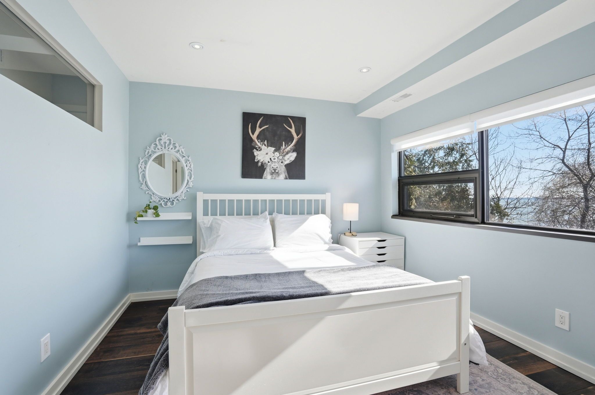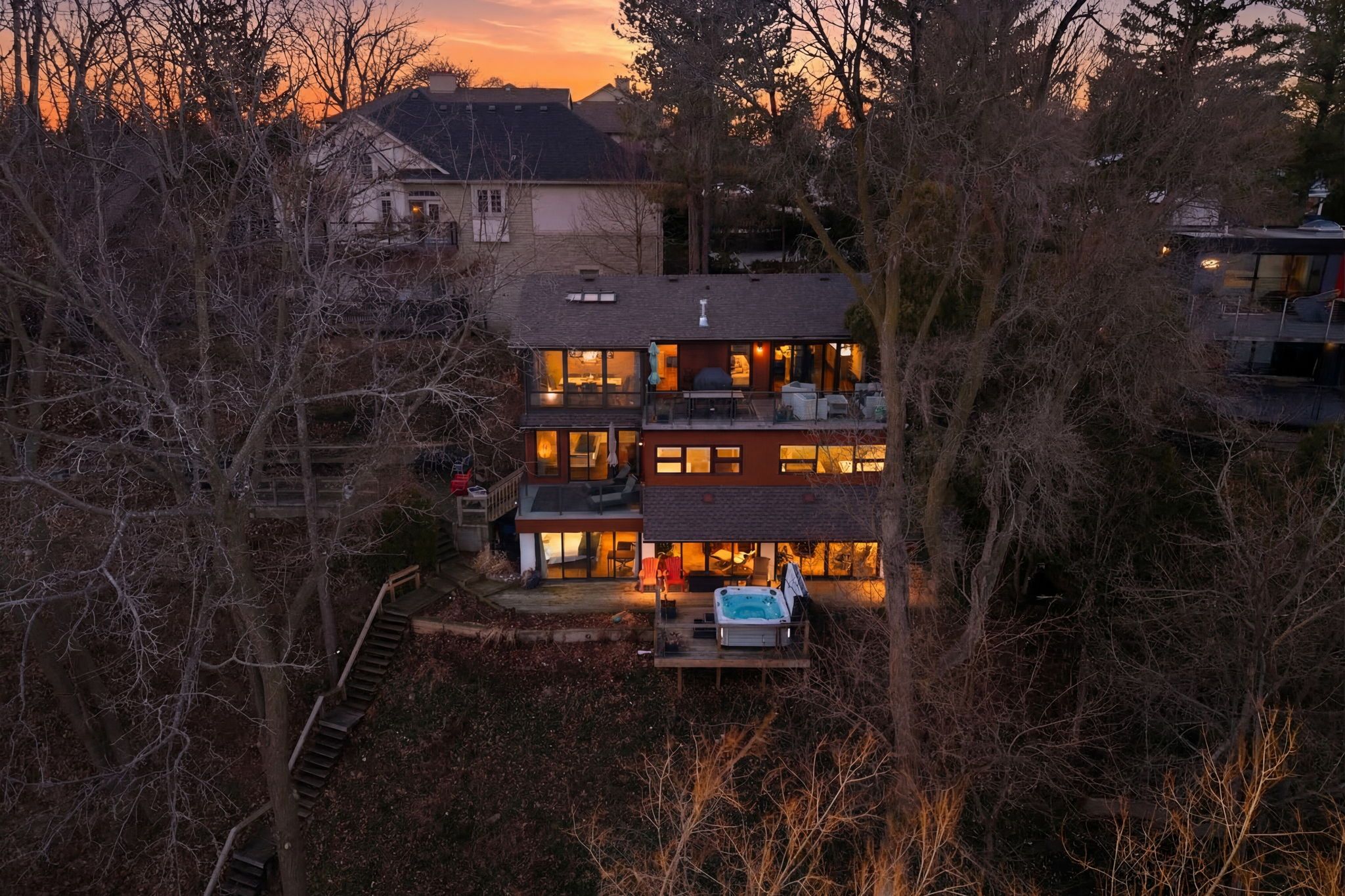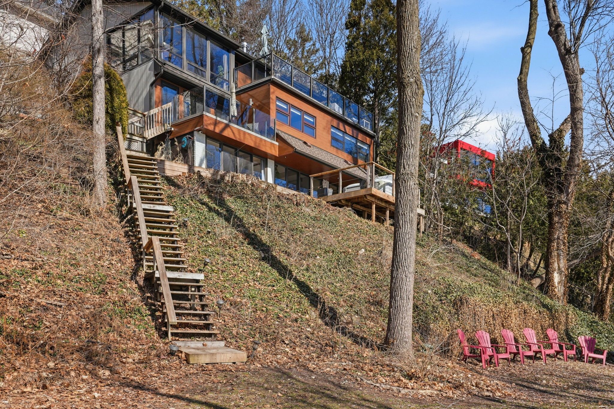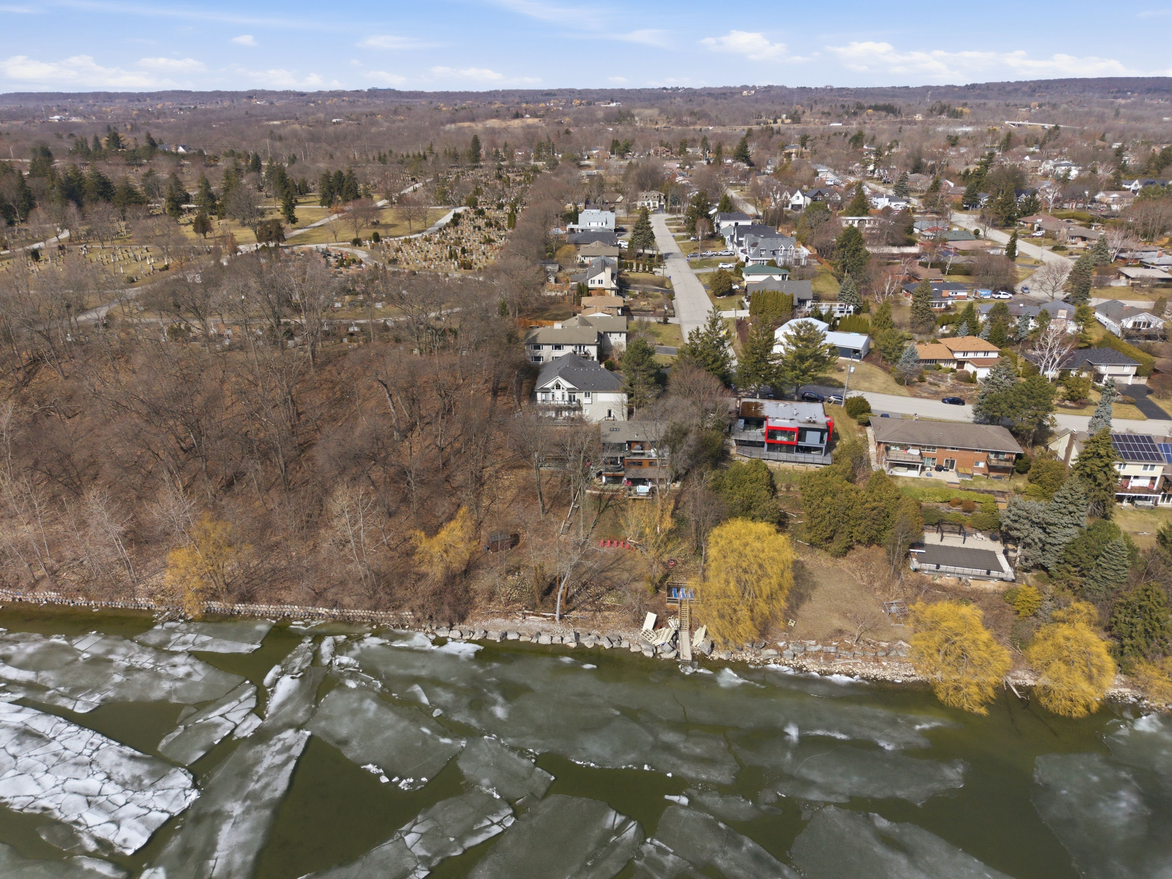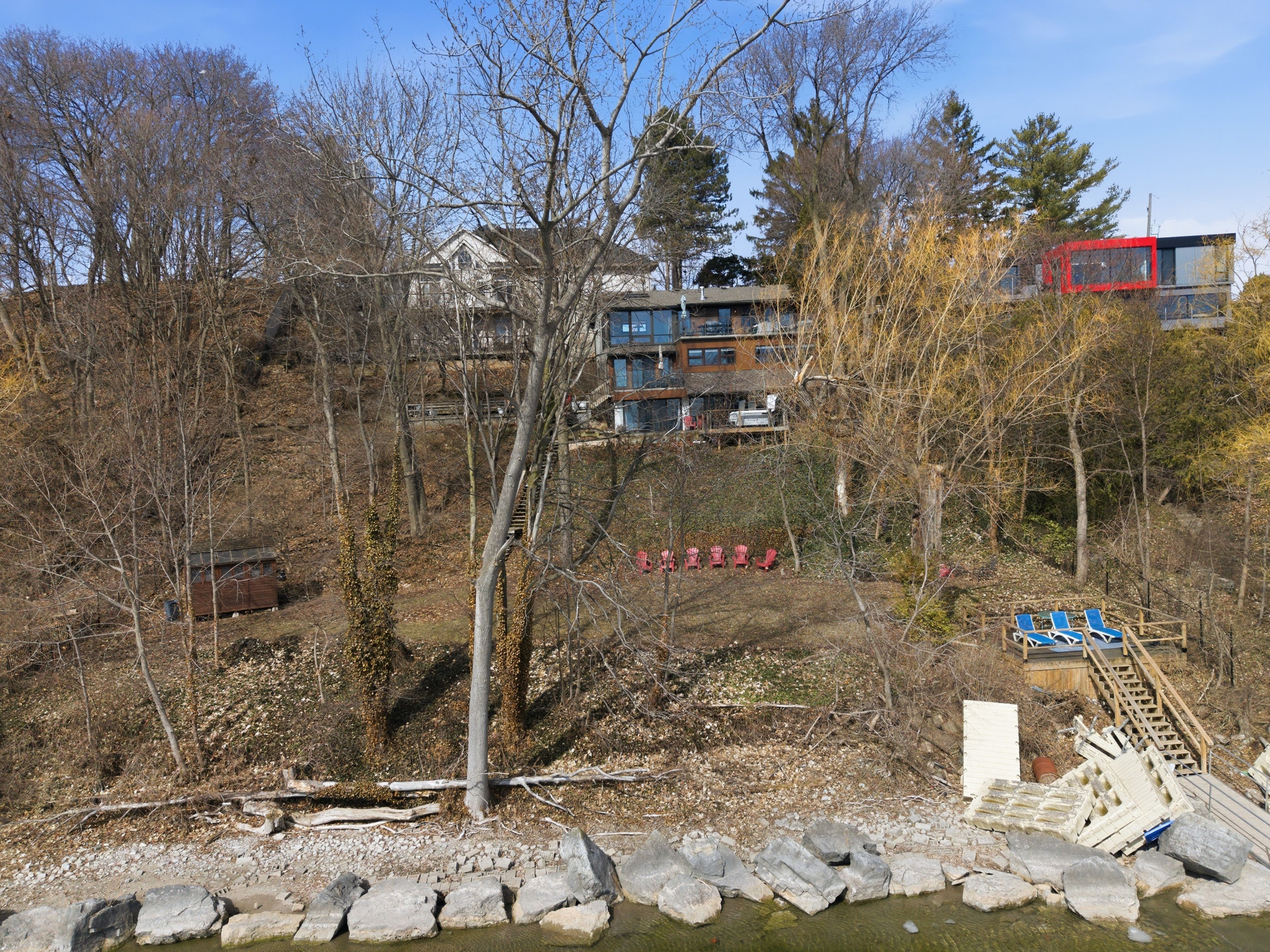 A rare waterfront setting in burlington where land, water, and everyday living come together in a way that feels both natural and hard to find. Set on nearly half an acre with over 130 feet of shoreline and riparian rights, this home sits elevated above the bay with wide open views and a sense of space that immediately sets it apart. It feels quiet here, yet you're still just minutes from everything you need. From the street, the home stays tucked away. As you make your way toward the water, it opens up around you. The view stretches out, the air changes, and the setting takes over. A standout feature is the hidden waterfront trail extending nearly half a kilometer along the shoreline, accessed directly from the property. It becomes part of your daily routine. Morning walks, runs along the water, or simply stepping out to reset. Life here naturally moves outdoors. Layered decks overlook the bay, creating space to gather, unwind, and take in the view. Mornings start quietly by the water. Afternoons bring time outside on the water or around the shores. Evenings slow down with sunsets and the occasional glow of fireworks across the harbour. Inside, the home spans three levels, each offering its own view of the water. The layout provides flexibility for living, working, and hosting, with a natural separation between spaces. Every season brings something different. Summer is active on the water. Fall brings quiet shoreline walks. Winter offers stillness and skating on colder days. Spring brings everything back to life. The hidden shore invites you outside, connects you to the water, and creates a lifestyle that's hard to replicate. It's a property you don't just live in. It's one you experience every day.