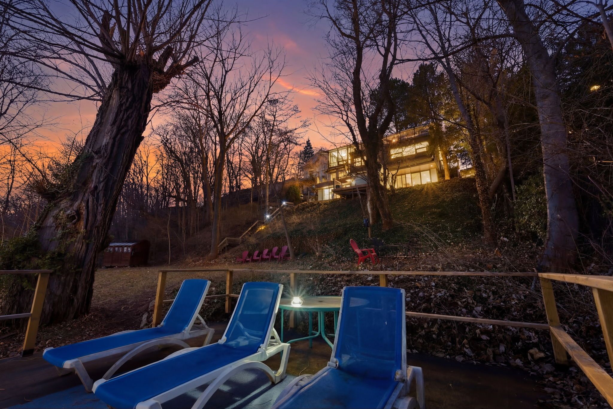 • Layered decks provide great spaces for gathering and enjoying sunsets.